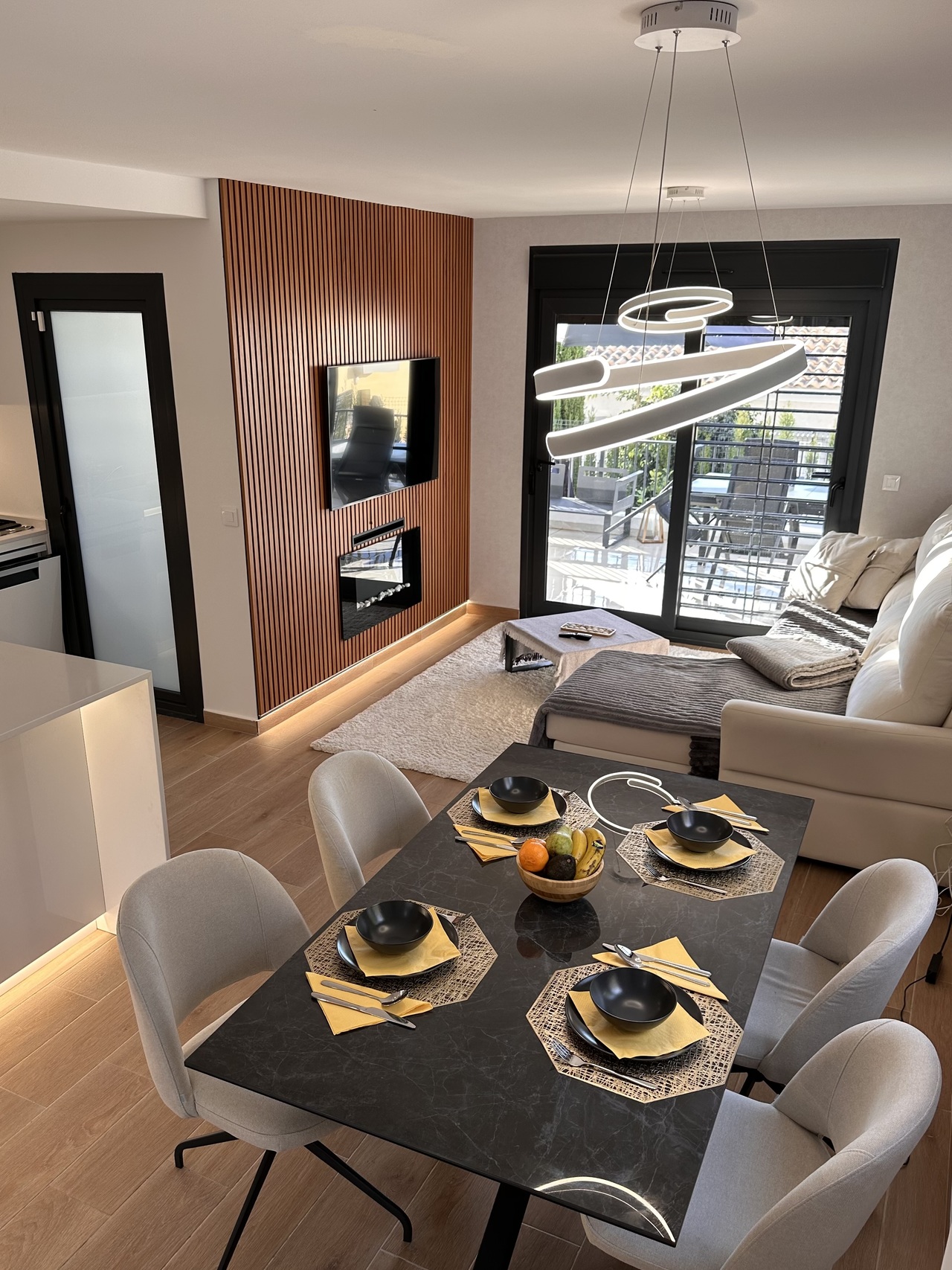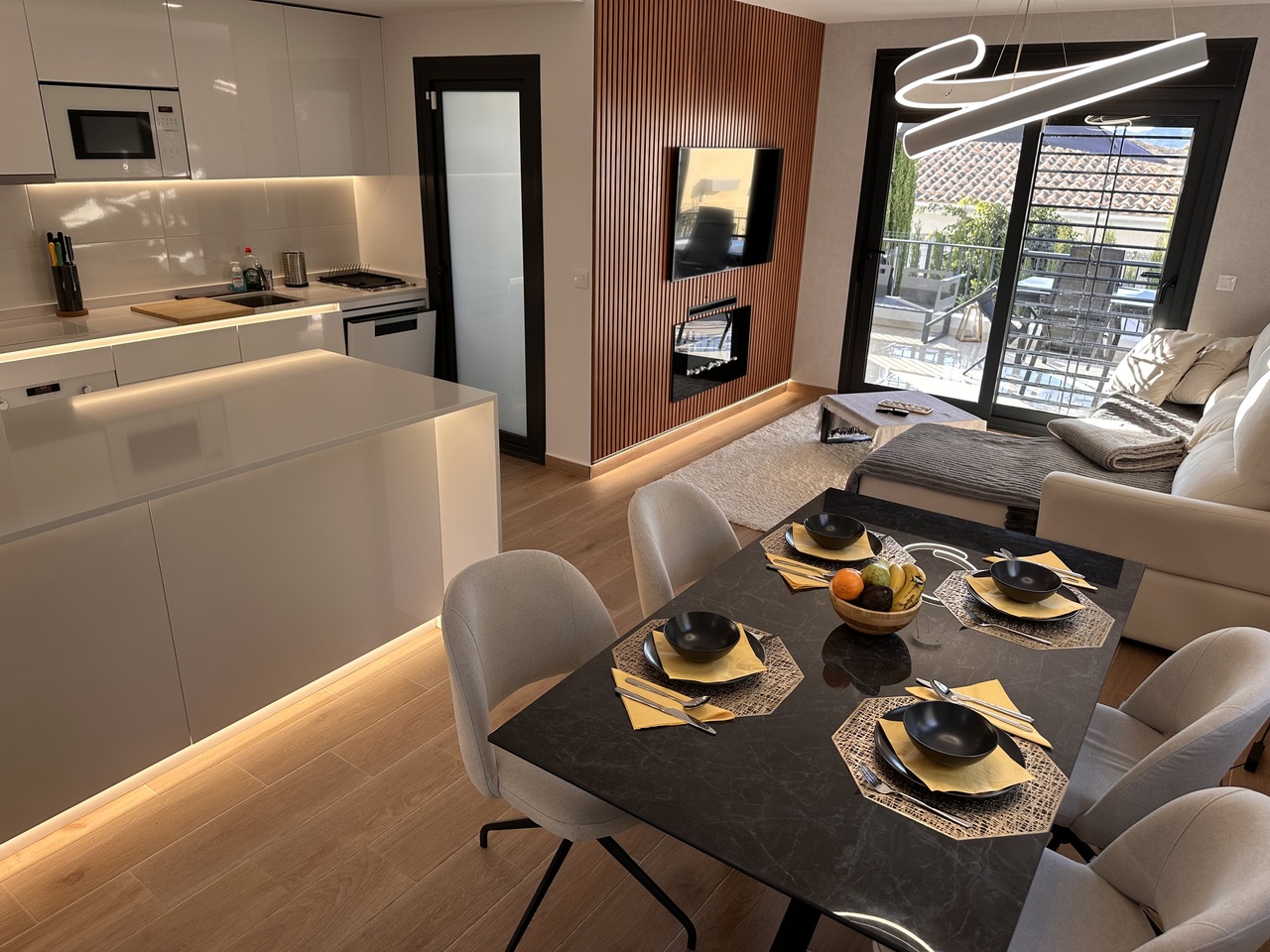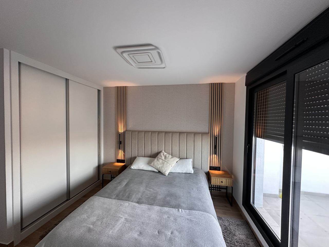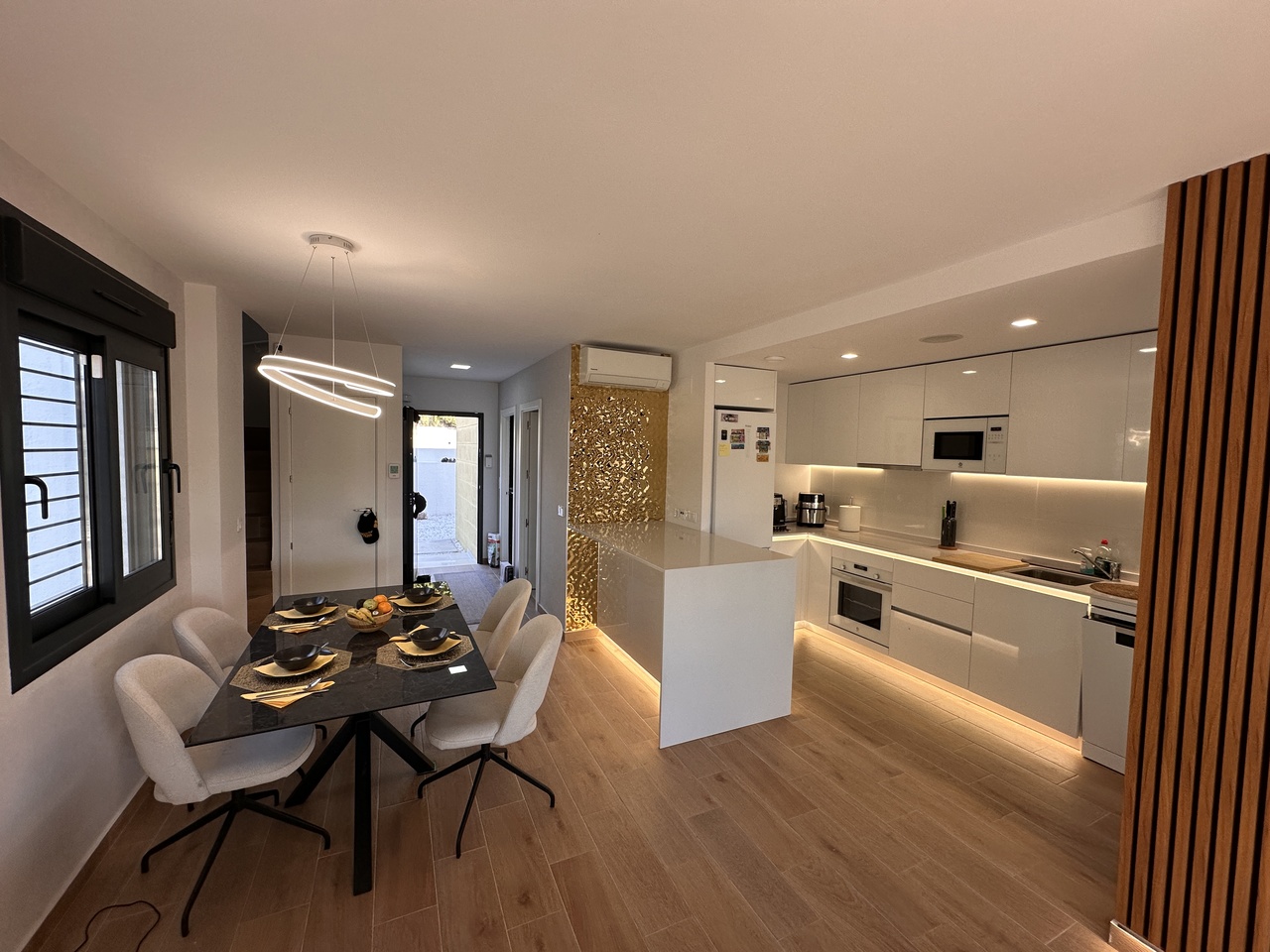 3 bedroom house with garden and private parking on the same plot. Communal pool and green areas. FOR SALE elegant semi-detached house with garden and private parking on the same plot. Communal pool and green areas. In a very quiet area, in a picturesque town of Busot. • 3 bedrooms • 2 bathrooms • Garden • Two terraces • Wonderful views of the mountains This fantastic property consists of: Ground floor (garden level): First guest bedroom with en-suite bathroom or HomeOffice. A pleasant living room - dining room with an open-plan kitchen, fully furnished and equipped with high-end appliances such as TEKA, BALAY, HAIER designed by a professional designer and an artificial LED lighting network. All appliances are new with a two-year warranty. In the middle, there is an island with drawers which expand the kitchen storage area on the inside, among the appliances, oven, dishwasher, all in the same style and color line, in white. Behind the kitchen there is a small gallery with a laundry room and a large living room with a front wall made of artificial wood panels, a 50-inch Q-LED television, a beige leather sofa and its own exit to the terrace area where you can relax, enjoy any meal in the fresh air, pick your own fruit such as lemons for example and all this with beautiful views of the mountains. The garden area has a table, chairs and hammocks to relax. On the First Floor: There are 2 bedrooms and 1 bathroom. The master bedroom has a double bed of 160 x 200 and has its en-suite bathroom. From this bedroom there is access to the solar-type terrace, where you can sunbathe throughout the season, with fantastic views of the mountains. At night you can see an impressive panorama of the town of Muchamiel and the entire area of the province of Alicante Second bedroom with two single beds and an outdoor bathroom. Throughout the house there are radios installed with speakers on the ceilings operating via WI FI and regional stations. Don't miss this opportunity! Visit this spectacular house with a view of the mountains. Schedule an appointment today and experience your new home in Busot!