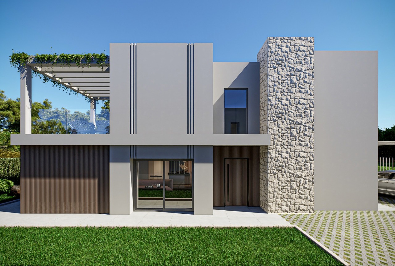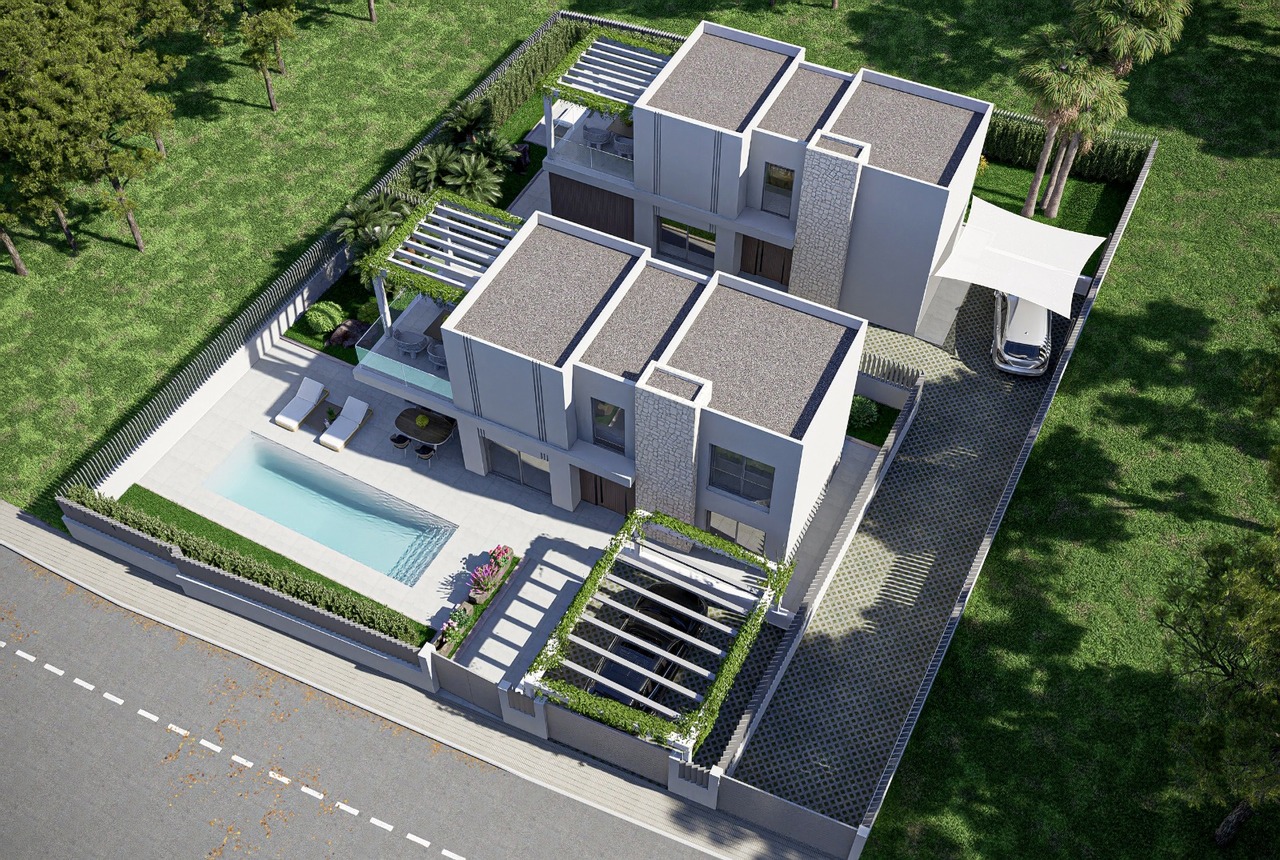 VILLA LUMMA is an exclusive development of only 2 fully independent single-family homes with a swimming pool, located in the most noble area of the famous Sierra Cortina: Calle Praga. The homes have been designed with great attention to every detail to ensure a comfortable and functional layout, with spaces full of light and excellent solar orientation. It is distributed over 2 floors, where we find: GROUND FLOOR: Living room-dining room-kitchen in a unique atmosphere, with access to a covered terrace from the living room and to the garden from the kitchen. On this floor we also find a double bedroom and a complete bathroom with a shower. FIRST FLOOR: On the first floor we find 2 double bedrooms, each with an en-suite bathroom (therefore, they are 2 master bedrooms). Each of these bedrooms has built-in wardrobes and large windows. From the master bedroom we have access to a 17m2 terrace from which we can contemplate magnificent views of the surroundings, as well as the garden and the private pool. The plot has private access to a parking area, and the garden and pool mentioned above. This is a unique opportunity, thanks to the magnificent combination of location, design, quality and price. Don't miss it!