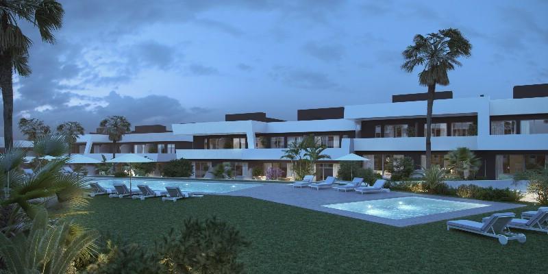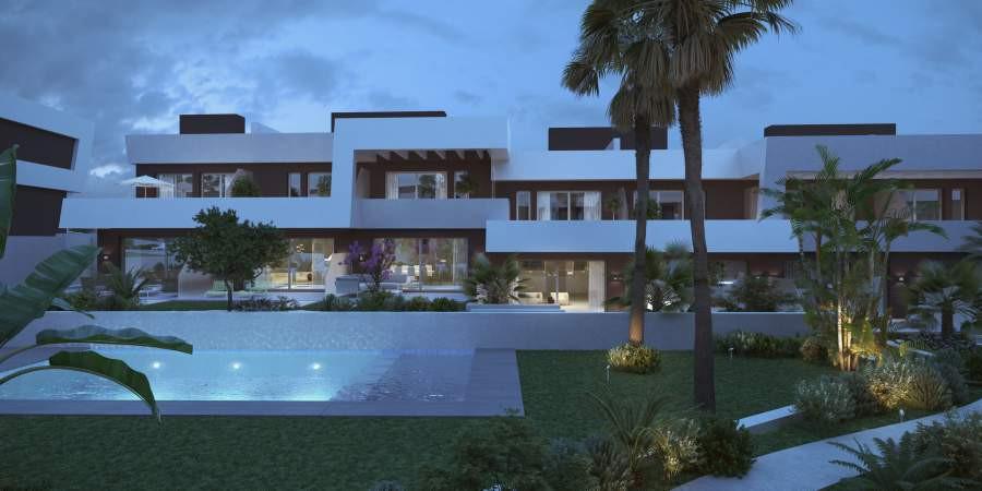 500 m to the beach, shops, restaurants, supermarkets and beach promenade. New modern development of 48 exclusive houses. 180 m2 built including 40 m2 basement. Roof terrace with private plunge pool and panoramic sea views. Block 1 and 6 now on the market at pre release price. 8 houses per block. New off plan development from reputable builder on the Costa del Sol. La Vega de La Cala is a new, contemporarystyle off-plan development of 48 luxury townhousessituated on an elevated plot in La Cala de Mijas, the popular beachside village situated mid-way along the Costa del Sol between Málaga and Marbella.Thetownhouses are arranged around the centralised tropical gardens, with ample decked sunbathing area and 3 communal pools, all designed in the same contemporary style as the houses. The plot is in an elevated position and many of the townhouses offer sea views or views of the surrounding countryside and mountains. Ideally located just a short stroll to the local beach and a variety of shops, bars and restaurants.