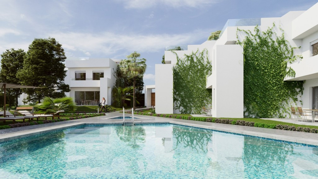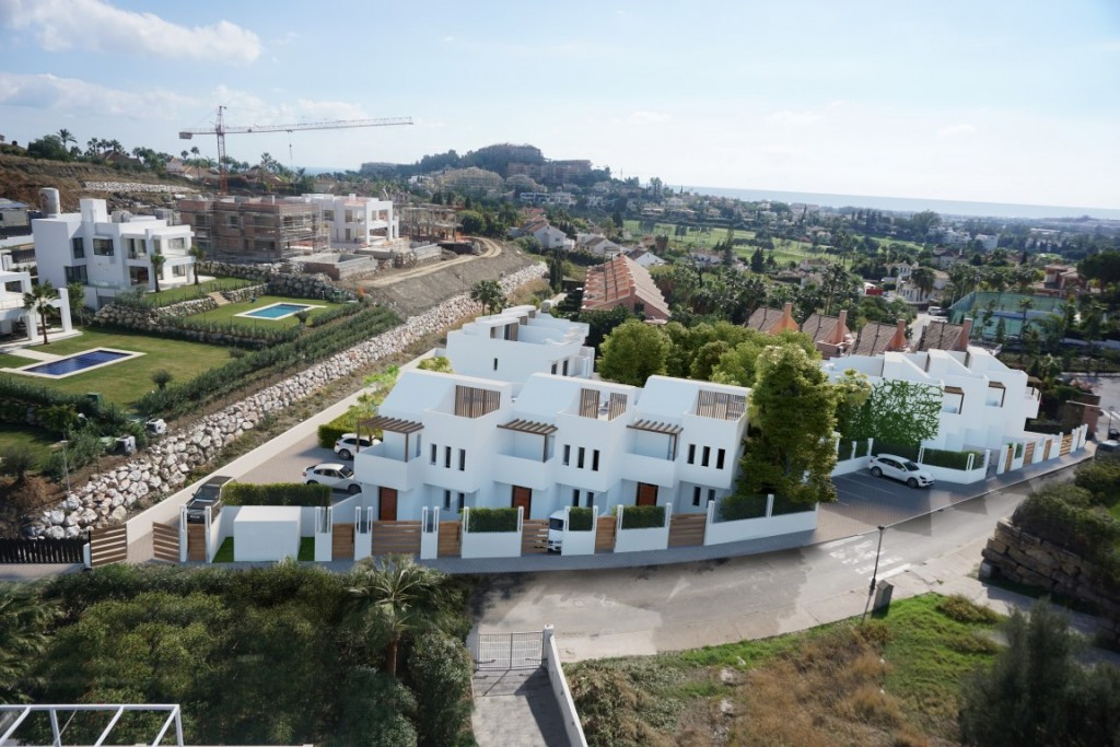 3 bedroom / 3 bathroom modern town houses from 800,000 euros Ready for occupation December 2020! Boutique complex of 9 highly modern, private and energy efficient semi-detached and townhouses in the golf valley, near Los Naranjos Golf Course In the middle of the Golf Valley and overlooking the Mediterranean lays this petite jewel of contemporary luxury houses, split in 3 blocks of 3 with a total of 9 units only! 2 units already have been reserved! The development offers great privacy, green areas, pool and water features. All units enjoy terraces, a spectacular cover deck with a hot tub and with Sea views for the ultimate outside entertainment and wining & dining experience! Every home comprises 3 bedrooms, 3 bathrooms, entrance hall, living and dining room, kitchen and laundry, covered porch, 2 parking spaces, double hight staircase and much more!