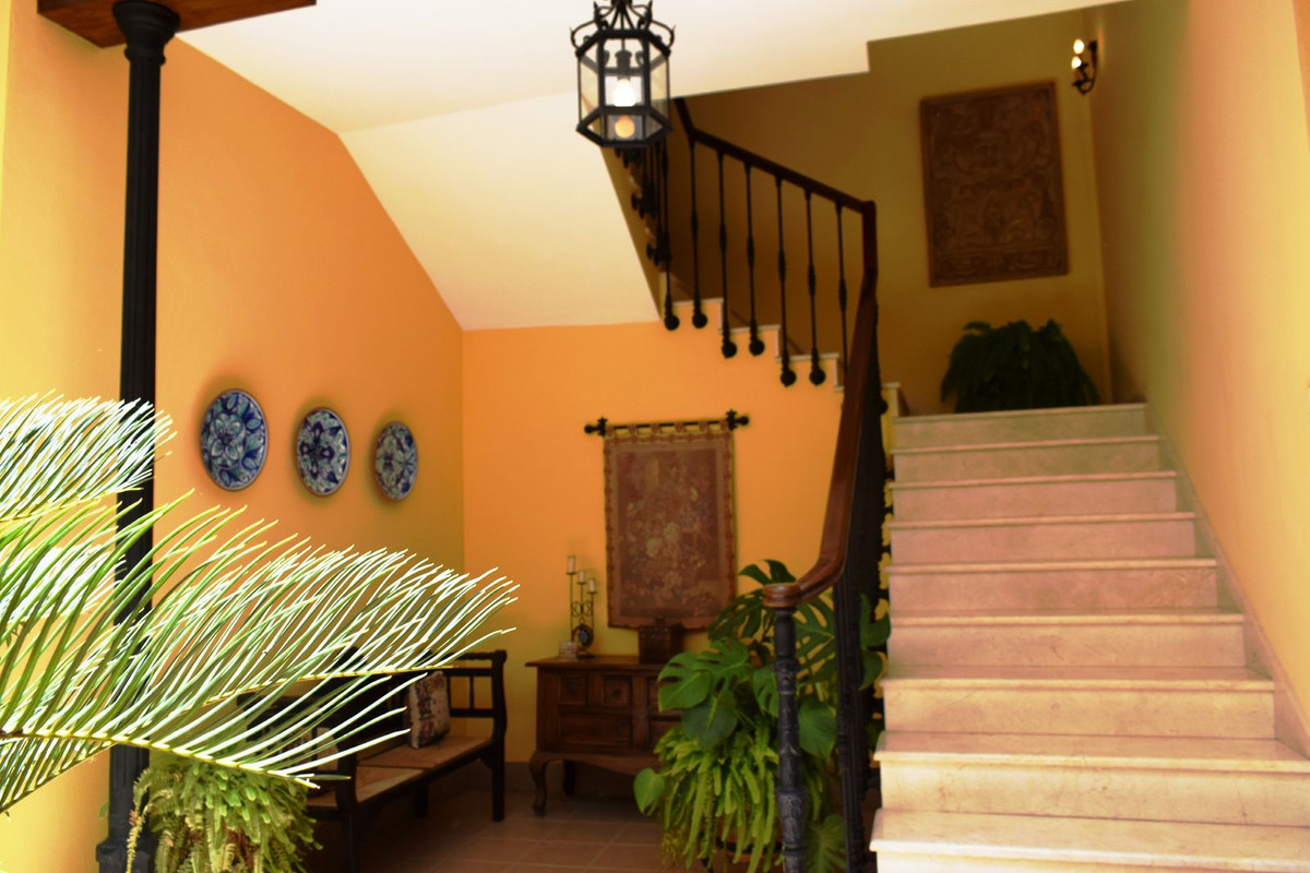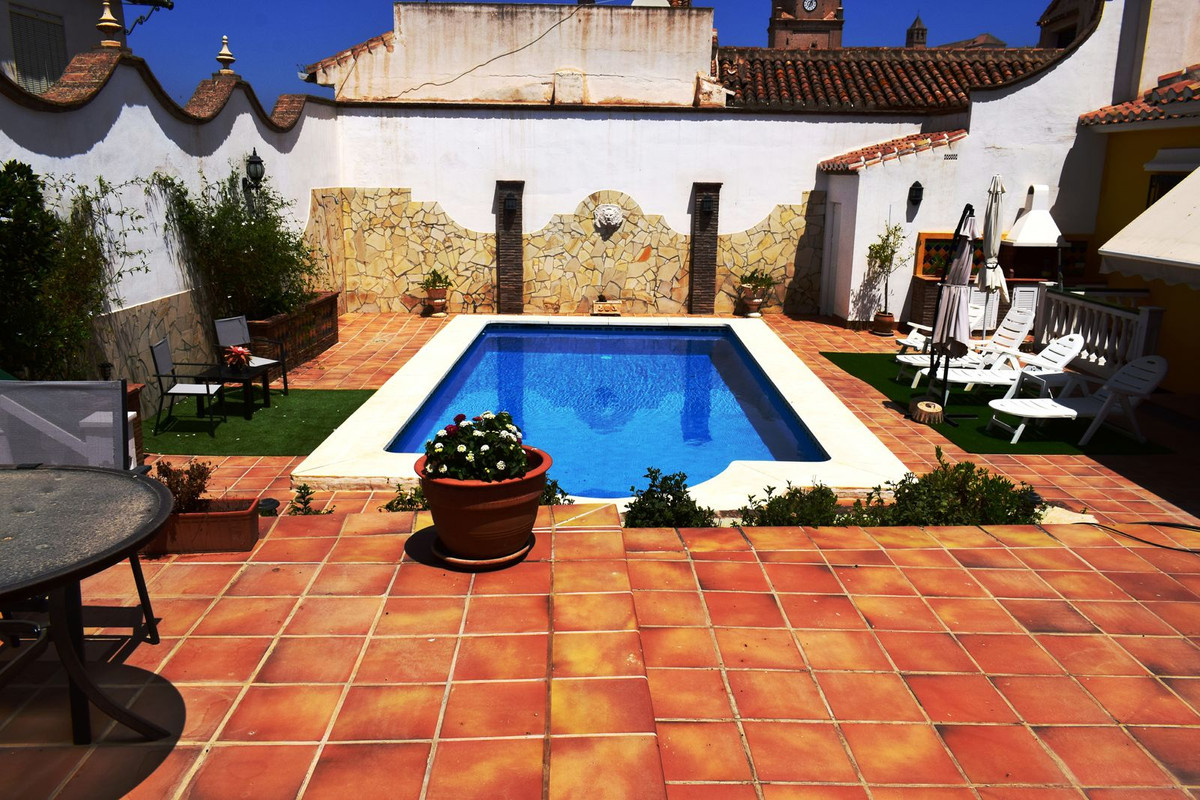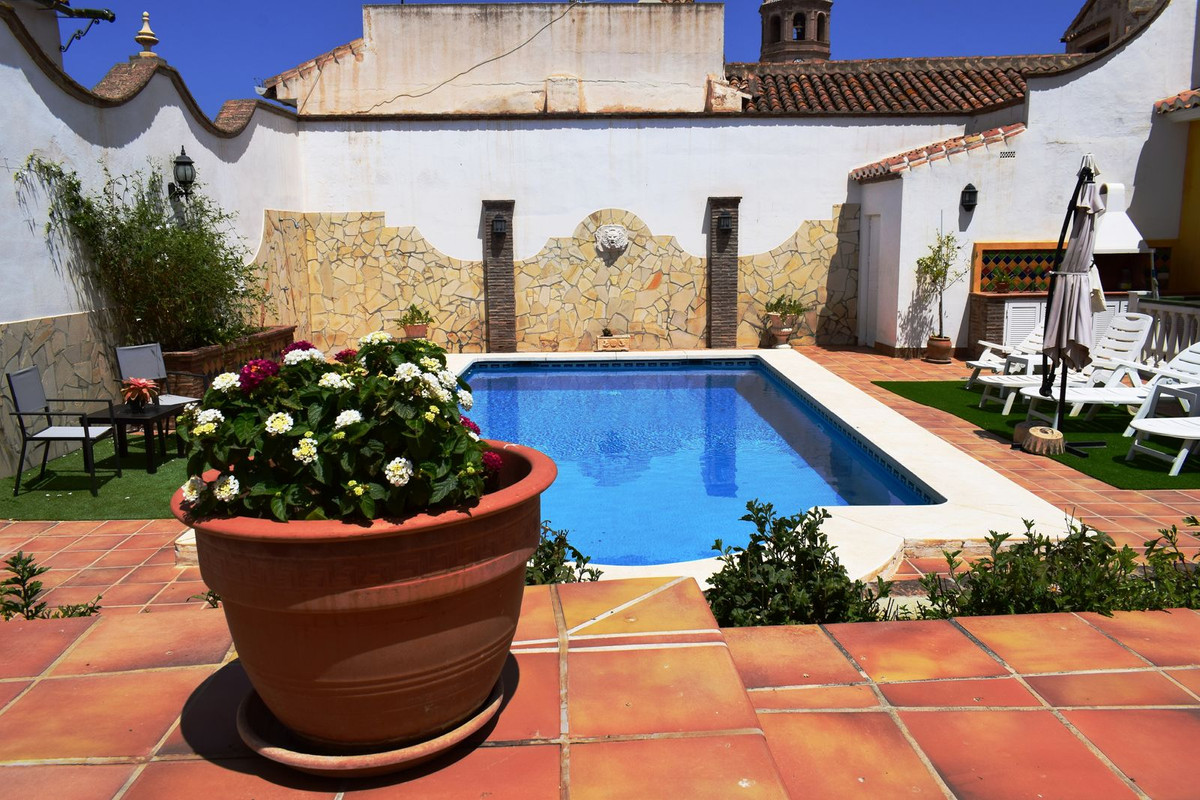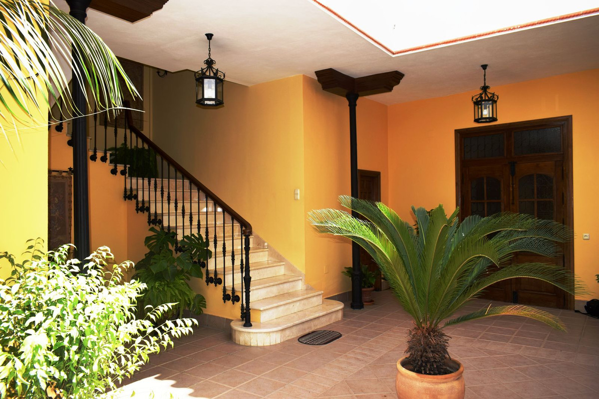 This amazing, renovated palace residence is dated from the XIX and is located in the heart of the historical centre of Velez-Malaga close to other historical buildings, museums, markets and all other amenities. The property was renovated to a very high standard back in 2000. It could be used as a home, but it has a huge potential to turn it into a boutique hotel. It also has 2 commercial premisses right on the ground floor of around 35 m2 each with very high ceilings that could be turned into another 2 business or could be added as extra accommodation turning them into extra rooms or independent apartment/lofts or they could just add additional services to the hotel such as a restaurant. As soon as you enter the property, the feeling of quietness that detaches you from noiser town centre is only broken by the noise of running water from the fountain. On this ground floor, apart from the large rooms mentioned before, there is a wc, a treatment room, a bodega/bar and the large garage with room for up to 7 cars accessed via a different street. From the courtyard you can go up the magnificent stairs to the first floor, but there is also another access directly into the kitchen from here. The first floor comprises a large, fitted kitchen with dining area, large utility room with small courtyard, living room with fireplace, high ceilings and a mezzanine floor where the library is. There is also a separate smaller living room and the hall that leads you to the 3 double bedrooms, one of them with en-suite facilities and a walking wardrobe plus a separate family bathroom. The added value of this house is the beautiful walled courtyard where you can find the 4 x 7 metre pool and different terraces overlooking the rooftops of the historical town. It is truly a magical place to be. On the final floor, there are separate living quarters, that have been converted into a 1-bedroom loft with Juliet balconies, open plan kitchen, living room, walking wardrove plus a bathroom. From this top floor you can also access the roof terrace. Building has been left prepared to install a lift. A/C and central heating installed plus musical threat throughout the house. A unique opportunity to acquire a special property with plenty of opportunities.