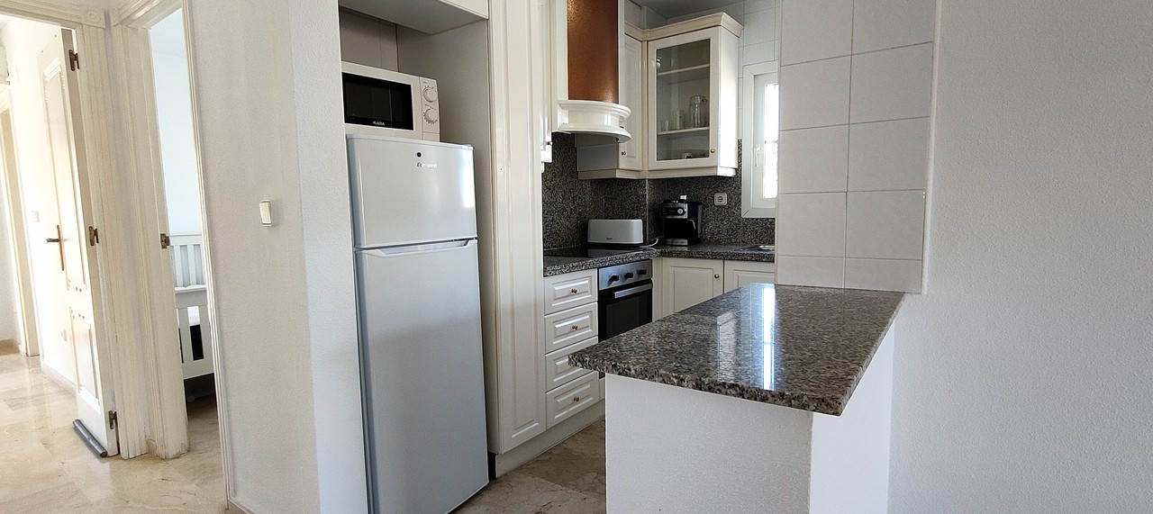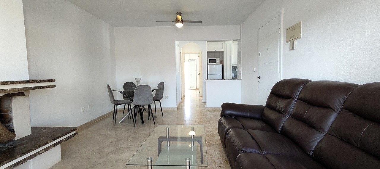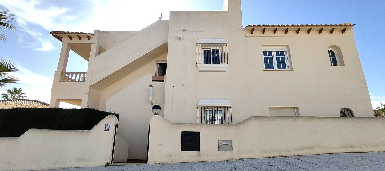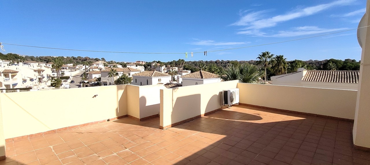 Discover this immaculate top-floor apartment, perfectly situated in the prestigious Las Ramblas Golf community. Designed for those who value comfort, style, and convenience, this home offers everything you need for a relaxed and vibrant lifestyle. Step into a bright and spacious lounge/diner with a cozy fireplace, seamlessly connected to a modern, fully equipped open kitchen. The two sunlit double bedrooms feature fitted wardrobes, including a luxurious master suite with an en-suite shower room, French balcony, and a newly renovated stylish bathroom. Patio doors lead to a sunny terrace with breathtaking views of the serene countryside and lush golf course—a perfect spot for your morning coffee. Need more space to unwind or entertain? The private, expansive roof solarium offers panoramic views and endless possibilities for relaxation or hosting guests. On the ground floor, a secluded, sun-drenched garden surrounded by exotic greenery invites you to relax in complete privacy. The property also features elegant marble floors, air conditioning. *Luxury Amenities & Prime Location* Enjoy access to one of the finest pool areas in South Costa Blanca, just 100 meters from your door and you can park your car just at the side of your new home. Within walking distance, you'll find the Las Ramblas Golf Club House, while the bustling La Fuente Commercial Center in Villamartin is only 1.5 km away, offering supermarkets, bars, restaurants, a pharmacy, and more. Golf enthusiasts will love the proximity to four world-class courses—Las Ramblas, Campoamor, Villamartin, and the exclusive Las Colinas Golf & Country Club. The stunning sandy beaches of Orihuela Costa are just a 10-minute drive away, while Alicante and Murcia International Airports are within a convenient 50-minute drive.