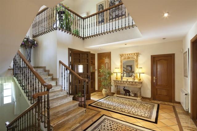 Spectaculaire cortijo te koop aan de oostkant van Marbella. De cortijo biedt veel privacy en een panoramisch uitzicht op de zee en de bergen en bevindt zich op een zeer groot stuk grond. Dit weelderige pand omarmt een trouwe privacy, profiteert van het enorme potentieel ervan en benadrukt panoramische vergezichten en is een bewijs van voortreffelijk leven. Genesteld in de felbegeerde gebieden van het oostelijke deel van Marbella, beslaat deze luxe residentie, nu beschikbaar voor aankoop, een uitgestrekt gebied van 76.855 m² en biedt een ongeëvenaard uitzicht op de zee en de bergen. De grandeur van deze schitterende woning is ongeëvenaard. De uitgestrekte woning van 852 m², die de aandacht trok met een oriëntatie op het zuiden, werd zorgvuldig gebouwd met behulp van de beste natuurlijke elementen: hout, marmer, terracottategels en graniet. De entreehal lonkt met een sierlijke trap en imposante houten deuren. Binnen ontvouwt zich een scala aan zorgvuldig versierde ruimtes, waaronder een schitterende woonkamer, een monochrome salon versierd met een tijdloze open haard en meubels versierd met boeiende etnische motieven. Een harmonieuze eetkamer completeert het geheel en leidt tot een droomkeuken die als culinair toevluchtsoord fungeert. Met 8 knusse slaapkamers en 8 modern uitgeruste badkamers, elk verfraaid met jacuzzi's, straalt de residentie comfort en verfijning uit. Het interieur strekt zich sierlijk uit tot met glas omhulde terrassen, gedrenkt in zonlicht, versierd met smaakvolle versieringen en zorgvuldig ontworpen voor ontspanning en dineren in de buitenlucht. Het kristalheldere zwembad, omgeven door een solarium, is verweven met waterpartijen en een barbecue-enclave, waardoor een idyllische omgeving ontstaat waar u kunt genieten van het Europese klimaat en het ontzagwekkende landschap. Weelderige mediterrane tuinen en groene gazons zijn een lust voor het oog en belichamen de pracht van de natuur. In dit statige huis dat te koop staat in Los Altos de los Monteros, is elegantie verweven met veeleisende smaak. Het zorgvuldig samengestelde meubilair en de zorgvuldig gecombineerde accessoires stralen een sfeer van klassieke luxe uit en bevorderen een sfeer die zowel weelde als comfort omarmt. Een aangrenzend gastenverblijf en een overdekte parkeerplaats versterken het gemak en de allure van dit toevluchtsoord nog verder. Gelegen te midden van groene uitgestrektheid en vergelijkbaar met aangrenzende luxe woningen, geniet deze uitzonderlijke villa van de betoverende Andalusische achtergrond en beschikt over een bevoorrechte locatie aan de Costa del Sol. Gelegen in de serene omhelzing van Oost-Marbella, staat Los Monteros als een bastion van gemak, op slechts een steenworp afstand van eersteklas golfbanen, ongerepte stranden, het historische hart van Marbella en het beroemde Puerto Banús. Er wordt aan elk facet van de mediterrane levensstijl gedacht, van Blauwe Vlag-stranden en beschermde duinen tot het grootste winkelcentrum van de regio, vooraanstaande gezondheidszorgfaciliteiten, internationale scholen en een scala aan luxe voorzieningen, waaronder strandclubs en gastronomische eetgelegenheden. Binnen een uur rijden zijn de internationale luchthavens van Malaga en Gibraltar bereikbaar, waardoor deze oase naadloos met de wereld wordt verbonden. Het pand beschikt over prachtige verzorgde tuinen met een zwembad, tuinhuisje en barbecueplek, kinderspeelplaats, minivoetbalveld, manege voor paarden met stallen, veel fruitbomen, 2 waterputten, eigen elektriciteitsgenerator, beveiligingscamera's en een binnenpad dat het pand omringt. Andere kenmerken zijn onder meer airconditioning warm/koud, open haard, volledig ingerichte keuken met Gaggenau- en Miele-apparatuur, gastenappartement, grote garage voor 5 auto's plus carport voor nog 2 auto's.