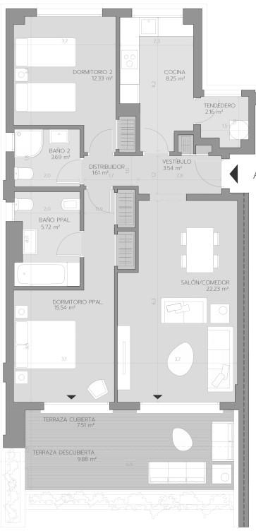 Appartement, Geleverd: Ongemeubileerd, Volledig uitgeruste keuken, Parkeerplaats: Ondergrondse parkeergarage, Pool: Gemeenschappelijk zwembad, Tuin: Privé en gemeenschappelijk, Richting: zuidwest