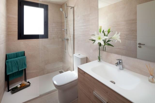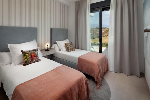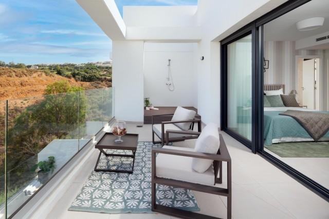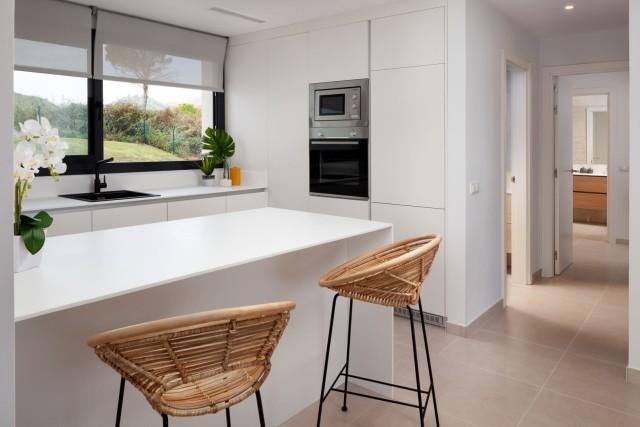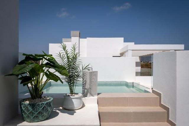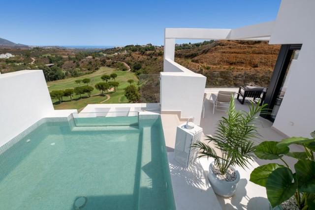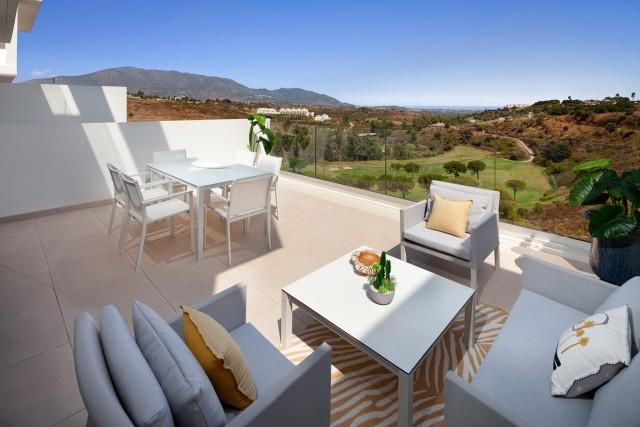 Laatste Frontline Golf Penthouses Beschikbaar met 3 slaapkamers Golf & Zeezicht. Nieuwe ontwikkeling van eerstelijns golfappartementen in Mijas Costa, Costa del Sol. De luxe penthouses hebben privézwembaden, een gemeenschappelijk wellnesscentrum met een fitnessruimte, een sauna en een jacuzzi, allemaal in verzorgde tuinen. In deze omheinde, beveiligde gemeenschap hebben alle appartementen uitzicht over de golfbanen van dit resort. De ontwikkeling is omgeven door golf in drie richtingen. Naast golf hebben de appartementen uitzicht over de zee en de bergen met op de berghelling het dorp Mijas. Door de hoge ligging weet je zeker dat zon en zee gegarandeerd zijn. Deze ontwikkeling omvat 54 lichte, ruime en moderne appartementen met 2 en 3 slaapkamers en penthouses. De penthouses met 3 slaapkamers hebben standaard een eigen dompelbad op het dak en 2 parkeerplaatsen. Deze ontwikkeling biedt een hoge mate van privacy met ruime binnenaccommodaties en even ruime buitenruimtes. Alle appartementen en penthouses zijn ontworpen met lichte, royale woonkamers, open keukens met ontbijtbar en grote slaapkamers. De badkamers hebben moderne designkwaliteiten. De ontwikkeling biedt een groot buitenzwembad met zout water met toegang tot het strand, en sommige penthouses hebben een privézwembad op het terras. Elke woning heeft een individuele berging en een ondergrondse parkeergarage.
