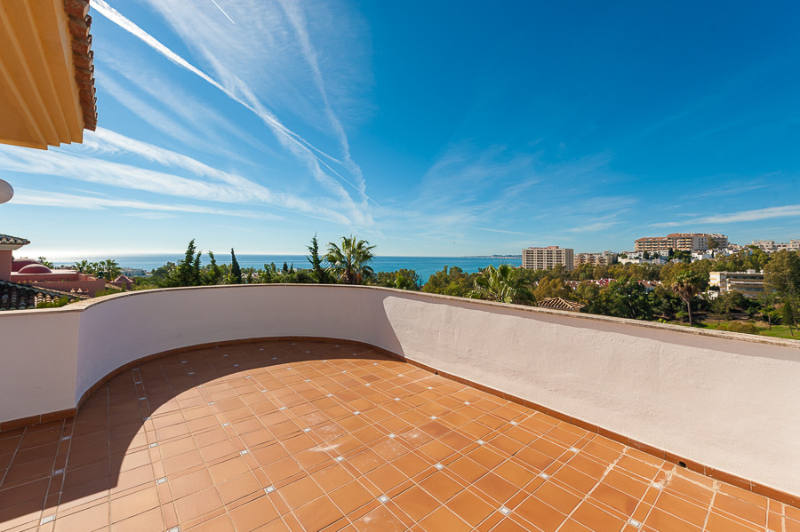 Well presented 4 bedroom villa, with fitted kitchen, garage parking, private pool and garden. South West facing with views of the Mountains and the sea from the sunny terraces. This spacious family home also features a gym and billards room. Very well situated for golf and within walking distance to restaurants and shops. Great location. Features: - Private pool and garden - Stunning panoramic views - Walking distance to all amenities