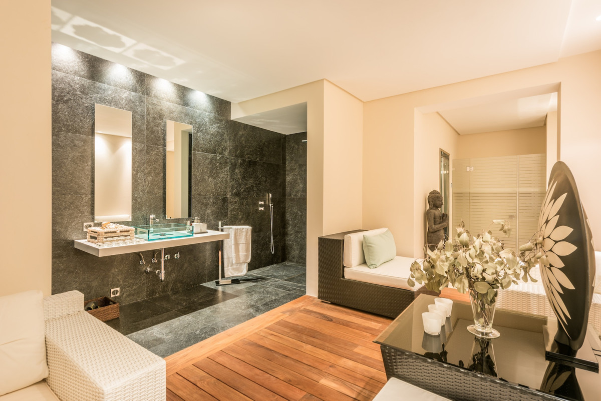 - Voorzieningen: Inbouwkasten, fitnessruimte, gastenappartement, marmeren vloeren