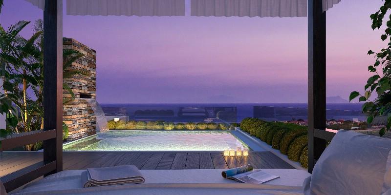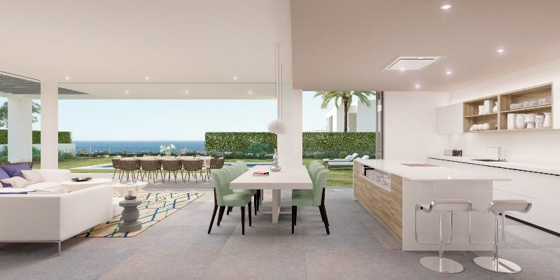 ONLY 1 VILLA LEFT! -Situated half way between Estepona and Marbella, the exclusive private complex of The Villas finds itself in a privileged spot that offers peace and tranquillity in a natural setting yet is also close to the shops, schools, restaurants, beaches, sports facilities and professional services of the Costa del Sol. The neighbouring village of Cancelada is just a few minutes'' walk away, as are sandy beaches and the coastal road that connects you to the entire region. The pretty Andalusian resort town of Estepona is under 15 minutes'' drive, as is the little town of San Pedro Alcántara, with Puerto Banús and Marbella town barely 10 minutes further. The properties are set on spacious yet manageable plots that are mostly level whilst offering excellent views over the surrounding countryside and nearby sea. A stylish pathway leads through the landscaped gardens to the front entrance, whose hallway opens onto on the of villa''s main features - the large, open plan living room. This area is made up of a spacious living room and top-spec modern kitchen with dining room. It is the centre of the home, where large floor-to-ceiling windows allow in natural light and views, sliding open to provide direct access to an expansive terrace with outdoor lounge and dining areas. From this spot, which extends the indoor space and comfort to make of the most of Marbella''s pleasant year-round climate, it is just a few steps to the private swimming pool surrounded by beautiful lawns and sustainable gardens. The three-bedroom villas are among the most attractive and best-located modern homes in Marbella, offering optimal comfort and luxury in a contemporary setting, with a bedroom suite on the ground and two on the first floor. All suites feature their own dressing room and terrace, marking the modern refinement that is the defining characteristic of living in The Villas. The spacious back porch with three metre high ceilings and the floor-to-ceiling sliding doors create the sensation of being enveloped in the outside landscape and enable you to enjoy this natural environment to the full. Whether physically merging the line between indoor and outdoor spaces or simply having an indoor garden or an open-air private shower, life at The Villas sets a new standard of living. The Villas have been specially designed to facilitate contemporary living. By opting for large combined spaces, the ins and outs of daily life become shared experiences. The open-plan living space invites the bright natural light in, creating an atmosphere of optimism and positivity. A double height ceiling with a beautiful staircase over an indoor garden welcomes you to your new home. The three-bedroom villas feature one master suite on the ground floor with stunning open-air shower, a walk-in closet and private garden, as well as two suites with walk-in closets and panoramic terraces on the first floor.