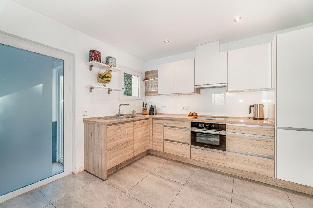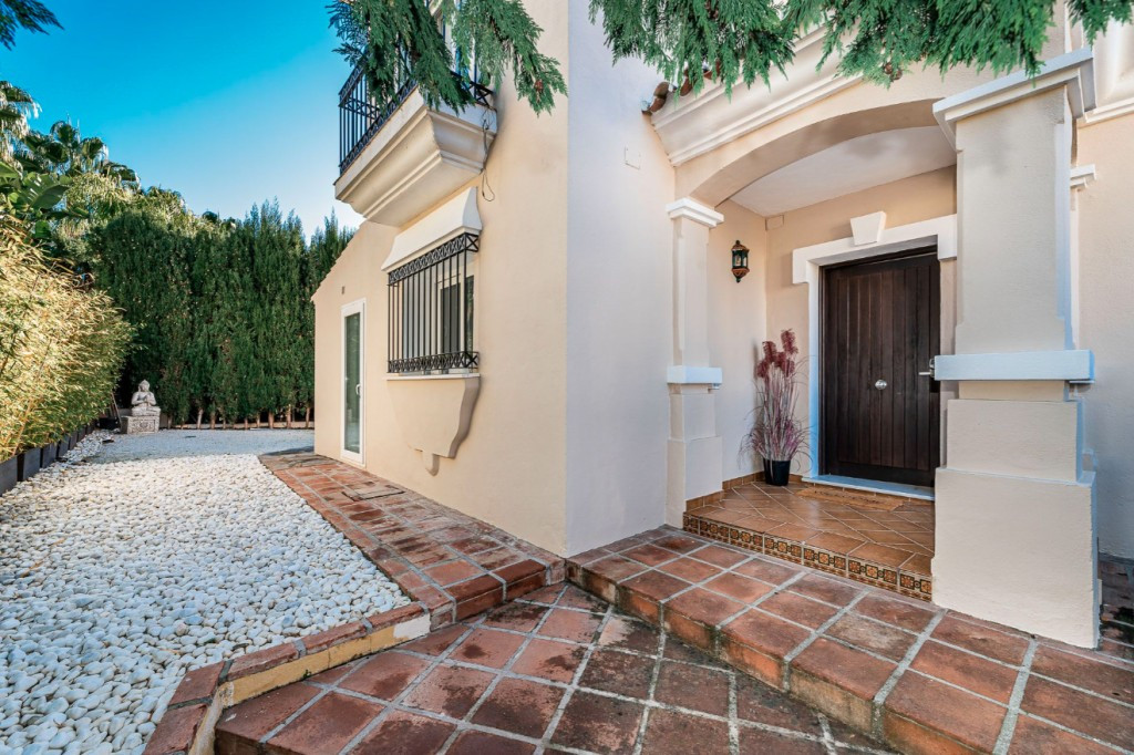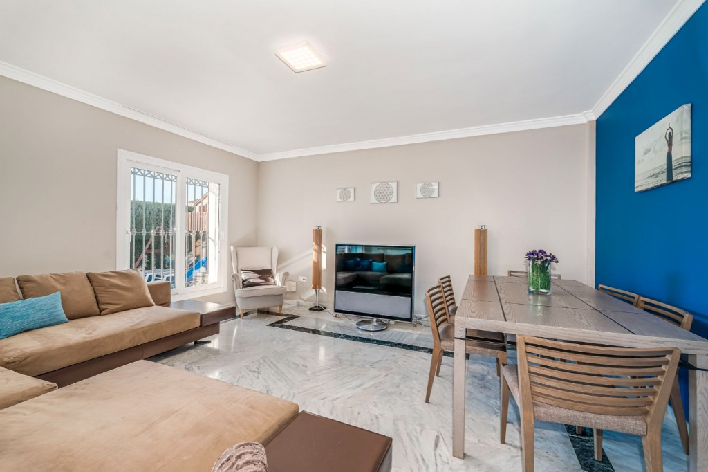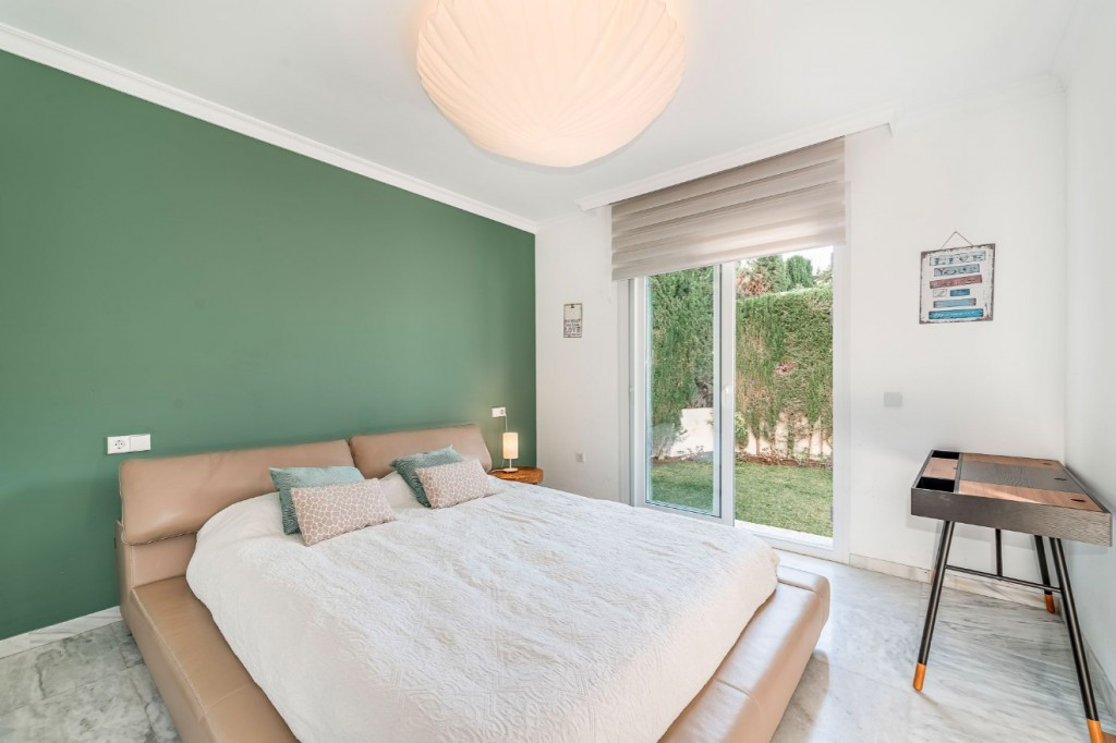 This charming villa with heated pool is located in the famous residential area of Bahía de Marbella just a few meters from the beach. The urbanization is exclusive due to its elegance, its 24 hour security service and its unbeatable location in front of the most beautiful beaches in Marbella, not to mention the famous "La Cabane" beach club nearby. The villa has been completely renovated and is distributed over two floors. The ground floor consists of a modern kitchen with dining area and laundry room, a spacious living-dining room that opens onto the covered glazed terrace, a bedroom with an en-suite bathroom. The upper floor offers two bedrooms and two bathrooms, one of them en-suite. In addition, the villa has a large glazed terrace to enjoy the mild climate of Marbella and the sea views outdoors all year round. The villa is equipped with air conditioning h/c, under-floor heating in the bathrooms, marble floors, double glazing, solar energy, a garage for one car and a storage room.
