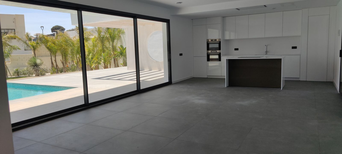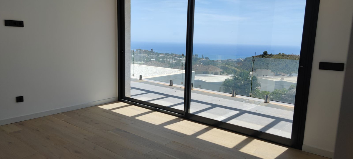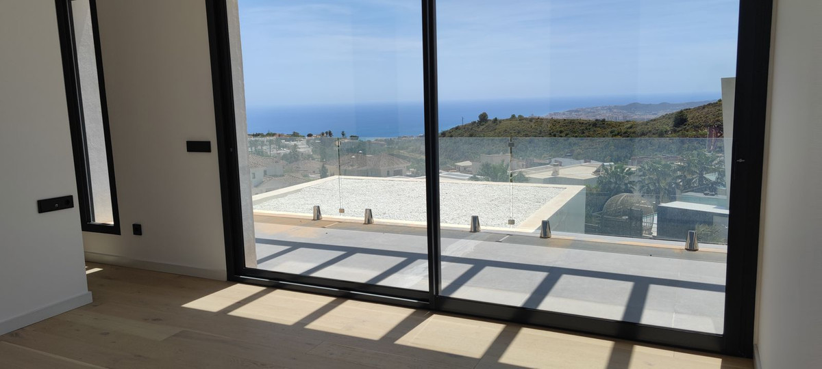 The brand new Villa Malpatros is a perfect combination of design and the comfort of a stunning luxury villa in a natural setting with spectacular sea views. Our villa consists of a plot of 820,55 m2 and a construction of 352m2, distributed over two floors and a basement, with 5 rooms, 4 bathrooms and a toilet, as well as a garage, garden and its own infinity swimming pool lined with gresite, with automatic pH purification system and saline chlorination. A construction of straight lines, diaphanous, with different areas in perfect harmony, large windows, modern architecture, Nordic style, allowing natural light to invade all spaces. It is located in a private urbanization, with barrier access, with spacious plots to maintain privacy and tranquillity. A bioclimatic design means that excellent high quality materials have been used, but at the same time with the aim of reducing consumption and thus protecting the environment. SALONI 90x90 ceramic floor tiles. Certified natural OAK wood parquet. TECHNAL aluminium carpentry, with thermal bridge break, double glazing with solar control, air chamber for cold/heat insulation and security glass. Lime paints, with smooth, opaque and water vapour permeable material, free of VOC (volatile organic compounds). Installation of SCHNEIDER electrical network and mechanisms. Double-flow mechanical ventilation system with enthalpic recuperator and aerothermal support with ambient temperature and humidity control. Bathroom cladding with MORTEX micro-mortar. Natural, ecological and breathable gypsum and cellulose fibre panels. GEBERIT bathroom fittings, TRES taps, home automation for lighting control and KNX blinds. In spite of enjoying this privileged environment, it is only a few minutes away from a small shopping centre, with supermarket and pharmacy, social clubs, golf courses .... and a short distance from the beach, airport and surrounding towns (Benalmádena, Fuengirola, Mijas or Málaga). The urbanisation has an internet network so that it is possible to work from paradise.