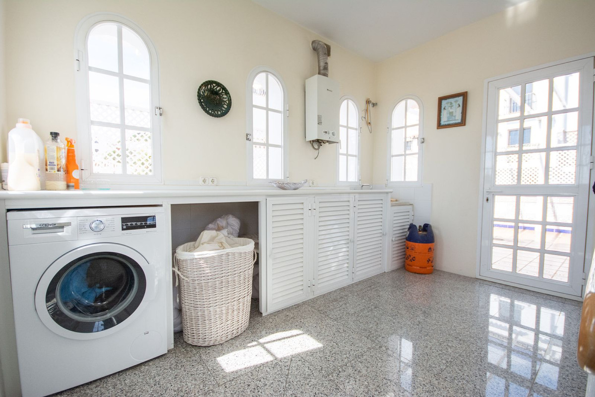 Fantastic townhouse in mijas Very spacious with lots of space. It has 3 floors with 5 bedrooms and 5 bathrooms. Very spacious kitchen with lots of light and a dining table. Penthouse with views of the town and the sea from afar. It has a private garage that can fit up to 6 cars, with space for a small gym or even storage. Very good area of Mijas, a very short walk from services such as gas station, supermarkets, restaurants, etc...