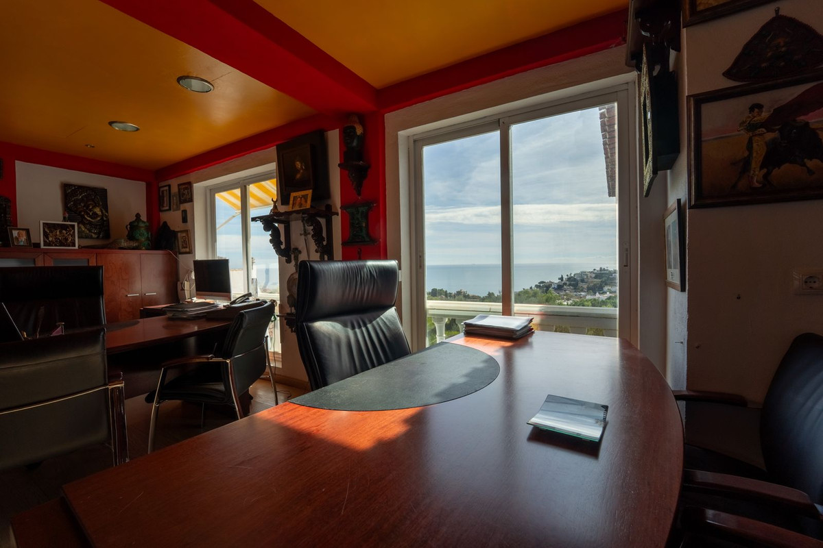 Villa located in Torremuelle, Benalmadena Costa. Large sunny plot and amazing sea views. Distributed over 3 levels as follows: Entrance level with independent kitchen, lounge with access to the terrace that has amazing sea views, and staircase that takes you down to the bedrooms. Downstairs you find 3 bedrooms and 2 bathrooms. A lovely bodega and wine cellar. On the bottom floor there is a bar and laundry room. From this level you can access the pool and there is also an external staircase that takes you to the pool area. Outside the villa there is an independent room which is now used as an office but could be a bedroom. Private parking and 2 garages.