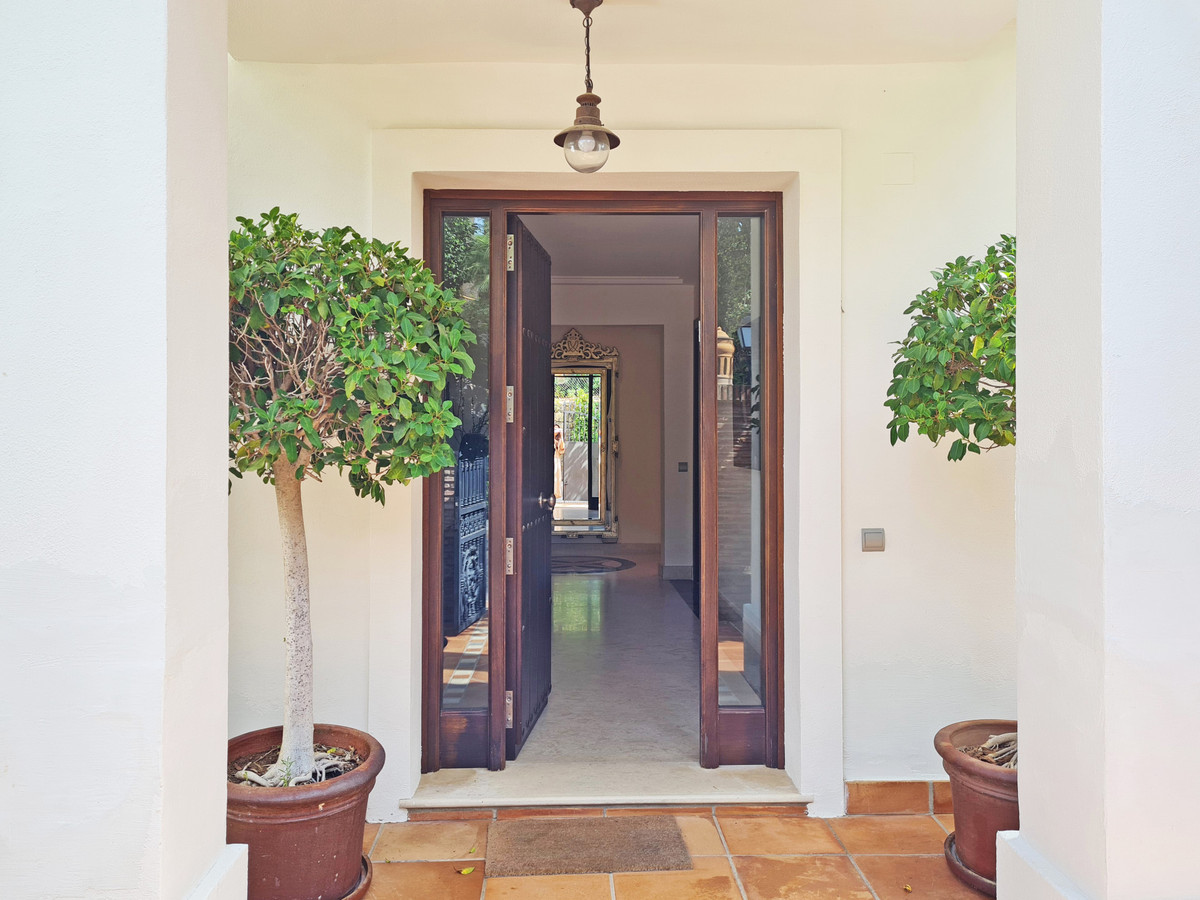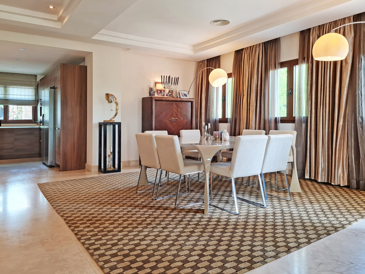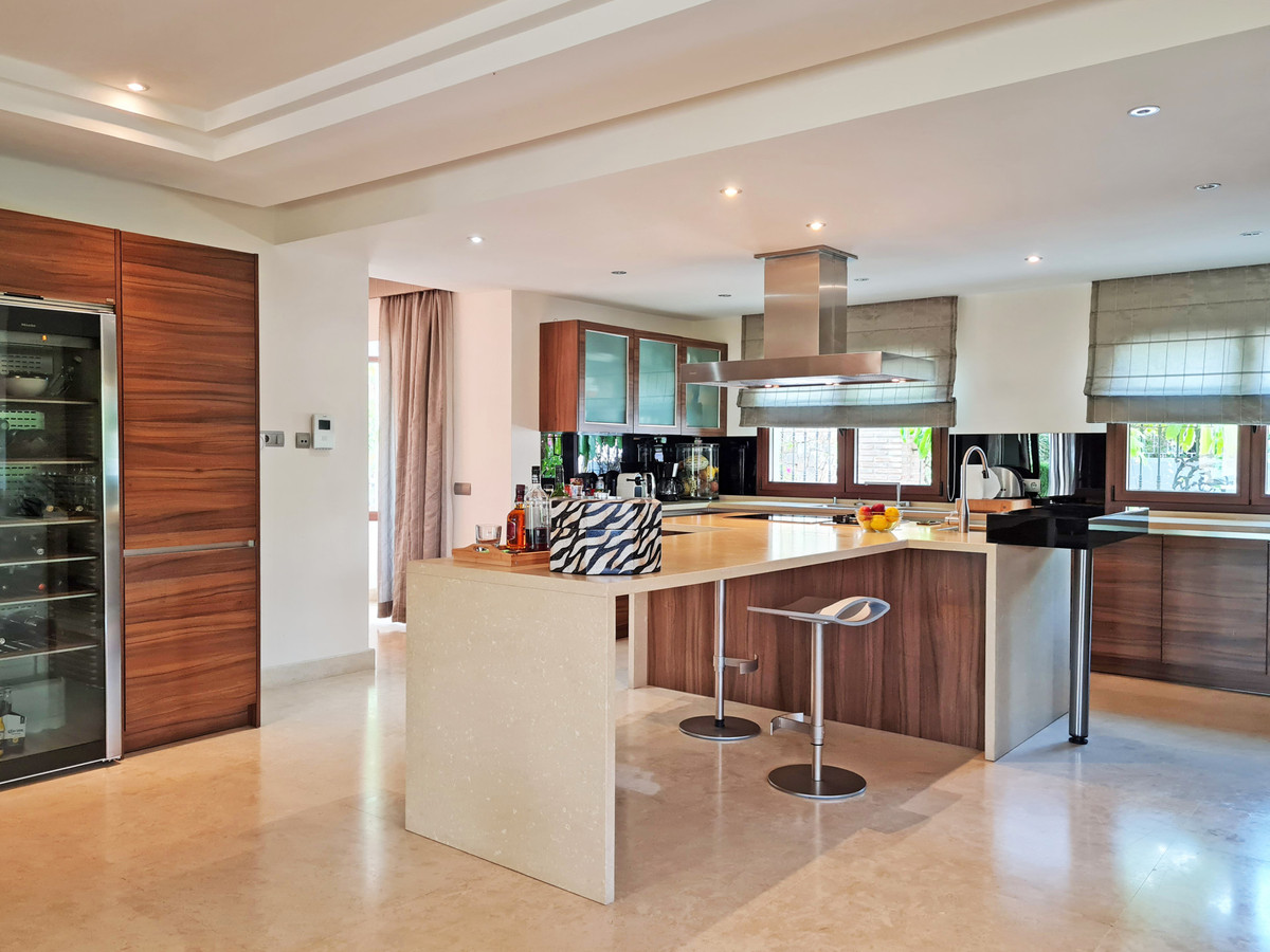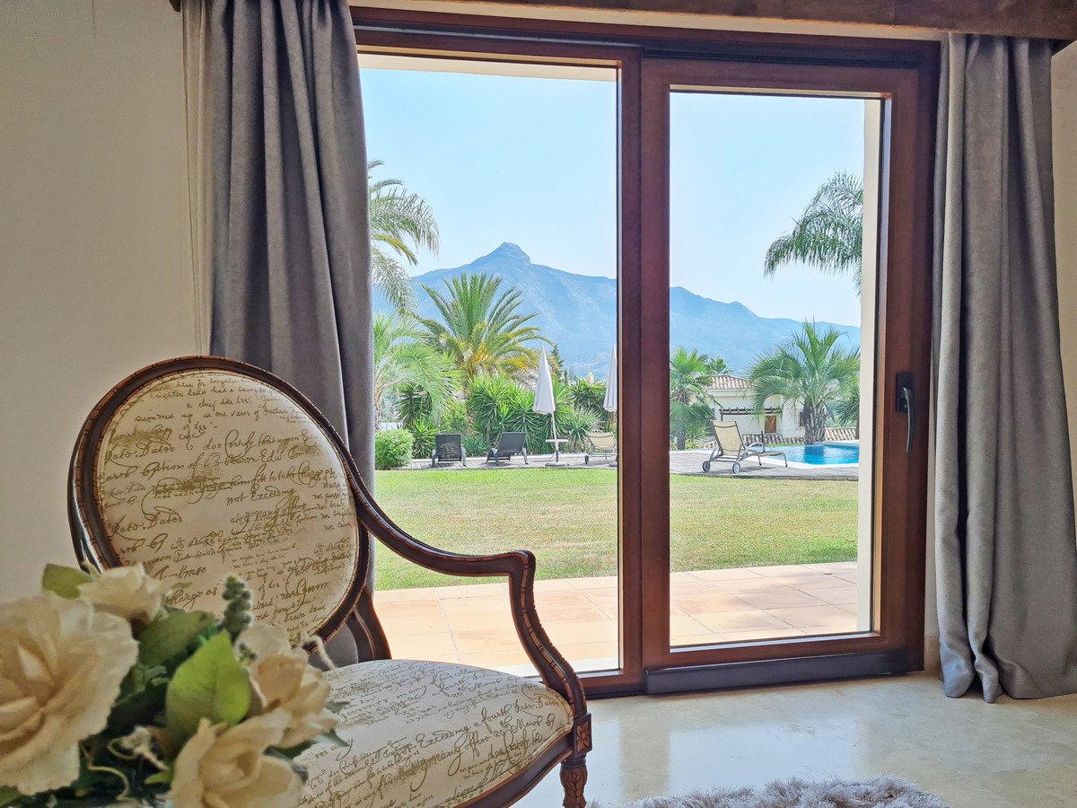 Deze prachtige villa, gelegen in een rustige doodlopende straat, biedt uitzonderlijke privacy en een adembenemend uitzicht over de golfvallei richting de berg La Concha. Gebouwd volgens de hoogste normen, beslaat de villa drie verdiepingen met een elegant interieur en een naadloze overgang tussen binnen en buiten. De begane grond beschikt over een ruime woonkamer met uitzicht op de tuin en de bergen, een stijlvolle eetruimte en een open keuken, die allemaal uitkomen op een groot terras, perfect om buiten te eten. Deze verdieping beschikt ook over drie prachtig ontworpen slaapkamers met eigen badkamer en kleedruimte. Boven vindt u de luxe master suite met een eigen badkamer en kleedruimte. De benedenverdieping biedt twee extra slaapkamers en een entertainmentruimte met thuisbioscoop. Buiten is de weelderige tuin een privéoase met een prachtig zwembad met zonneterras en volop ruimte om te ontspannen. Dit uitzonderlijke huis ligt in een van de meest gewilde gebieden van Nueva Andalucía en combineert privacy, elegantie en de nabijheid van de beste voorzieningen van Marbella.