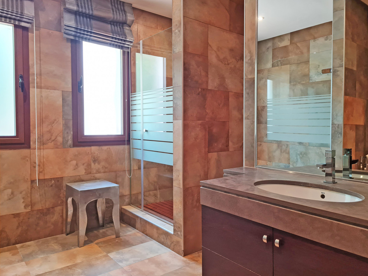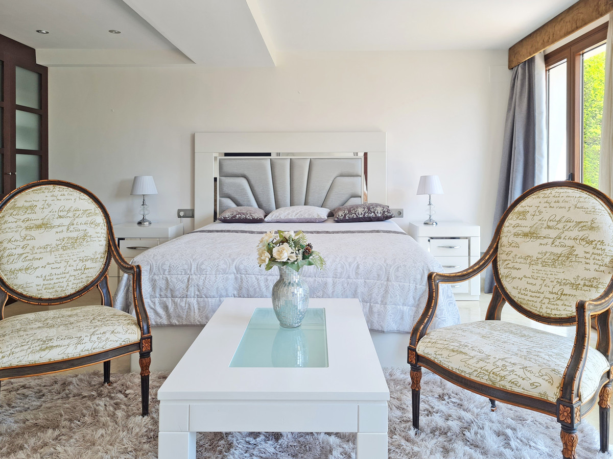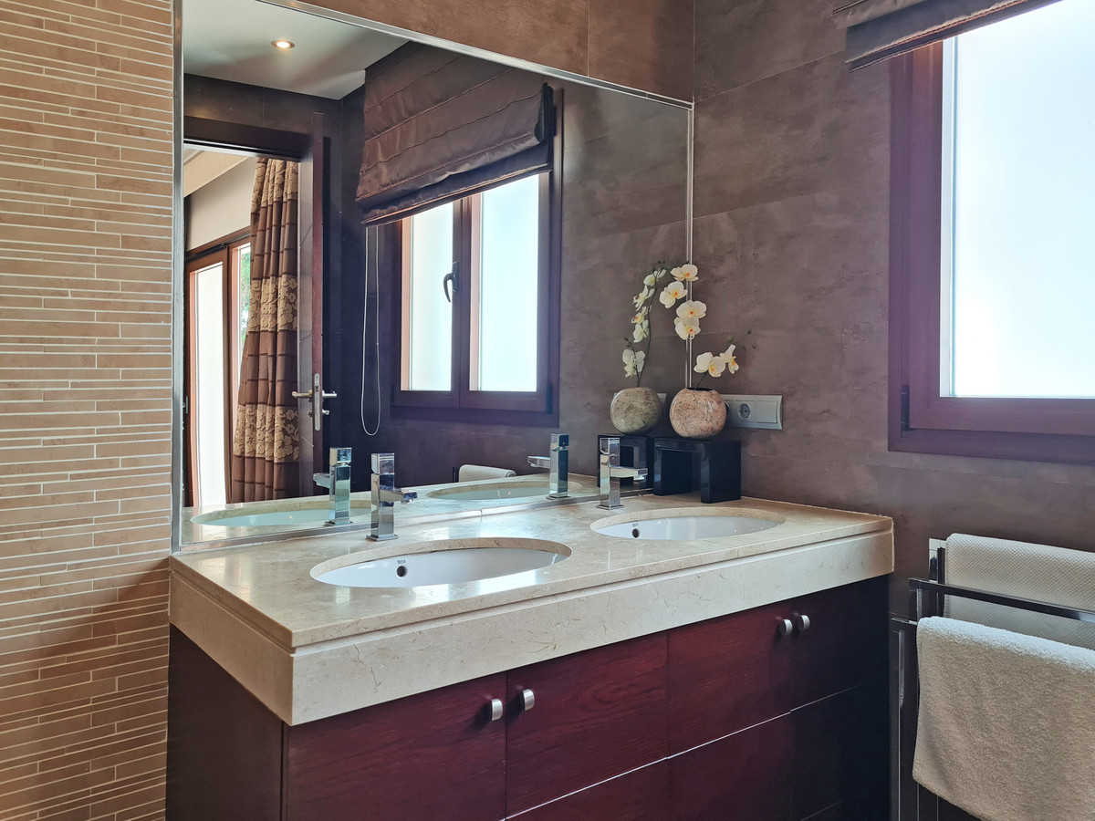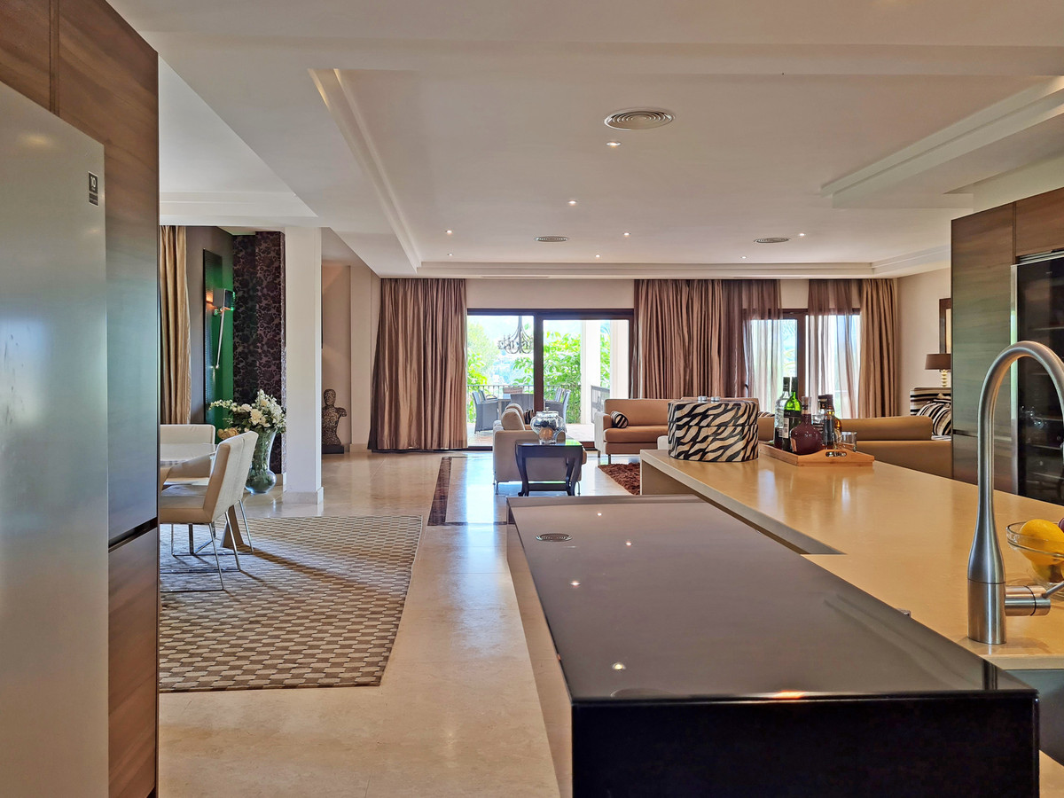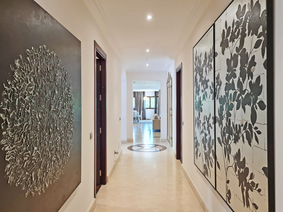 Deze prachtige villa, gelegen in een rustige doodlopende straat, biedt uitzonderlijke privacy en een adembenemend uitzicht over de golfvallei richting de berg La Concha. Gebouwd volgens de hoogste normen, beslaat de villa drie verdiepingen met een elegant interieur en een naadloze overgang tussen binnen en buiten. De begane grond beschikt over een ruime woonkamer met uitzicht op de tuin en de bergen, een stijlvolle eetruimte en een open keuken, die allemaal uitkomen op een groot terras, perfect om buiten te eten. Deze verdieping beschikt ook over drie prachtig ontworpen slaapkamers met eigen badkamer en kleedruimte. Boven vindt u de luxe master suite met een eigen badkamer en kleedruimte. De benedenverdieping biedt twee extra slaapkamers en een entertainmentruimte met thuisbioscoop. Buiten is de weelderige tuin een privéoase met een prachtig zwembad met zonneterras en volop ruimte om te ontspannen. Dit uitzonderlijke huis ligt in een van de meest gewilde gebieden van Nueva Andalucía en combineert privacy, elegantie en de nabijheid van de beste voorzieningen van Marbella.