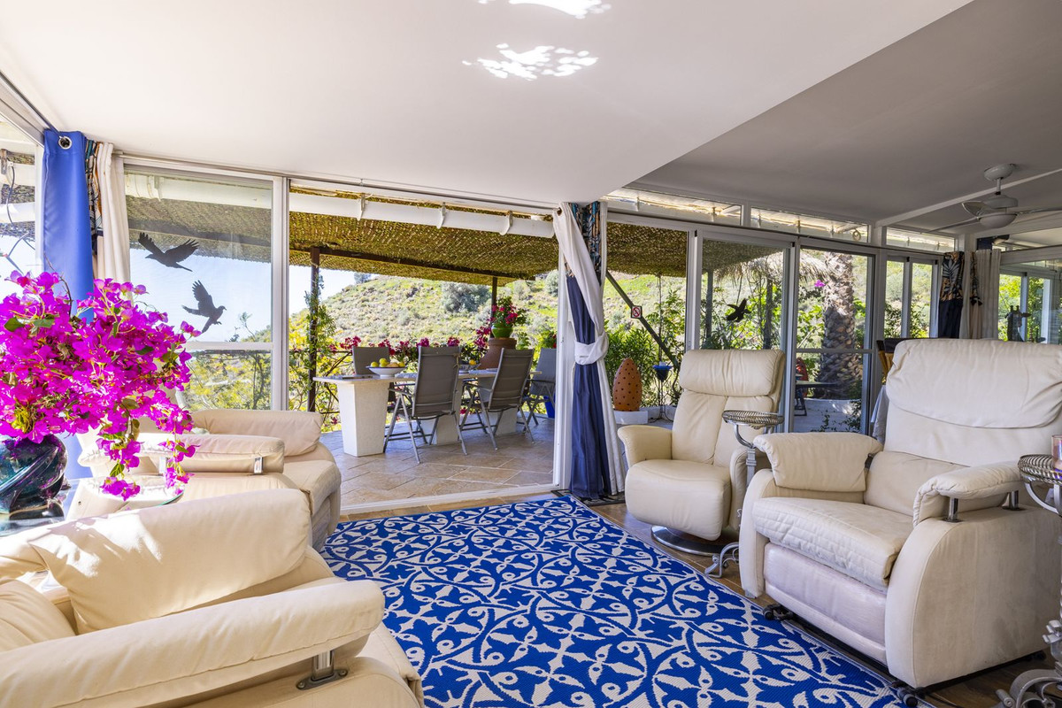 Met trots presenteren wij u dit prachtige landgoed in de Arenas, een unieke kans om te genieten van een levensstijl vol natuurlijke schoonheid. Met een ruim perceel van 5525 m² straalt deze woning in rustieke stijl elegantie en charme uit. Kom binnen in de ruime woon-/eetkamer en word omarmd door de warmte van de schuine plafonds, die een gezellige sfeer creëren. Drie volledig uitgeruste keukens en drie comfortabele slaapkamers bieden ultiem gemak en comfort, terwijl twee moderne badkamers een vleugje luxe aan het huis toevoegen. Geniet van het overvloedige natuurlijke licht en het adembenemende uitzicht op de bergen en de zee vanaf de verschillende terrassen rondom de accommodatie. De prachtige privétuin en het overdekte, verwarmde zwembad bieden een oase van rust en een perfecte plek om te ontspannen tijdens de zomerdagen. Met voldoende parkeergelegenheid voor meerdere voertuigen is de toegang en opslag gemakkelijk en handig. Omringd door olijf- en fruitbomen straalt het landgoed rust en harmonie met de natuur uit. Gunstig gelegen in een rustige omgeving, is dit huis perfect voor wie op zoek is naar een rustige woonomgeving, zowel voor permanente bewoning als voor een vakantiehuis. Met het dorp op slechts 10 minuten rijden, het strand op 20 minuten en de internationale luchthaven van Malaga op 45 minuten, biedt deze woning het beste van twee werelden: een afgelegen toevluchtsoord, maar toch dichtbij alle noodzakelijke voorzieningen. Kortom, dit is een droomhuis van professionele kwaliteit, compleet met alle voorzieningen die u nodig heeft om te genieten van een rustig leven te midden van natuurlijke schoonheid en sereniteit. Neem vandaag nog contact met ons op voor meer informatie of om een bezichtiging te plannen. Dit kan ook virtueel. Wij verkopen geen huizen, wij realiseren dromen.