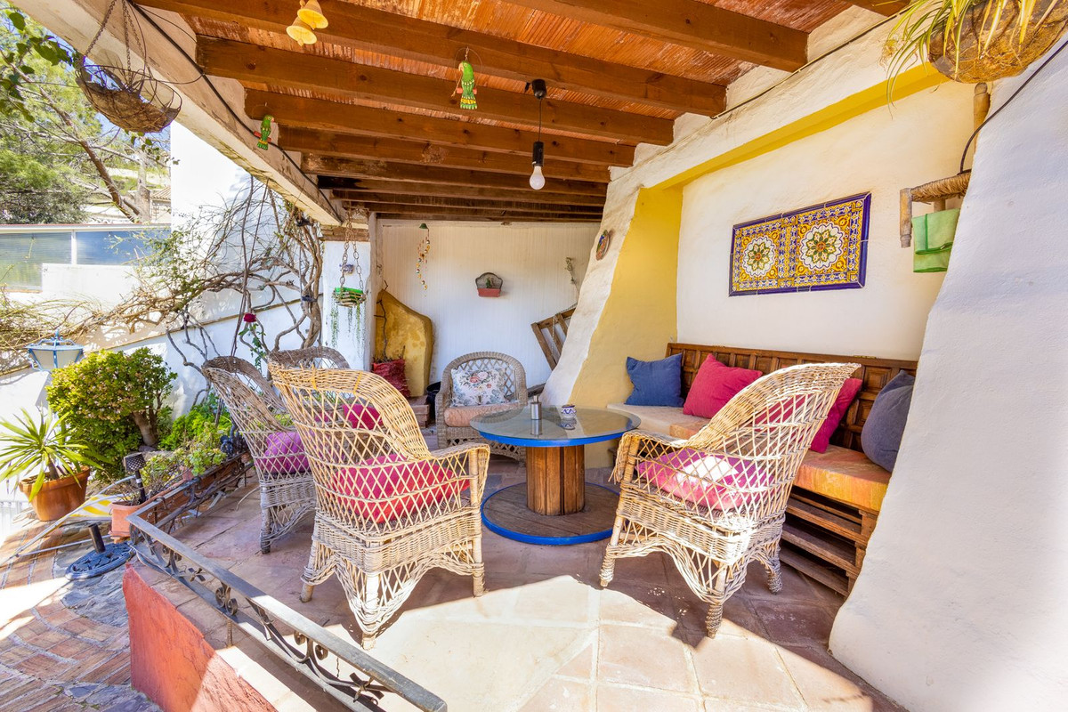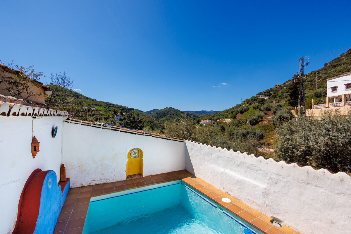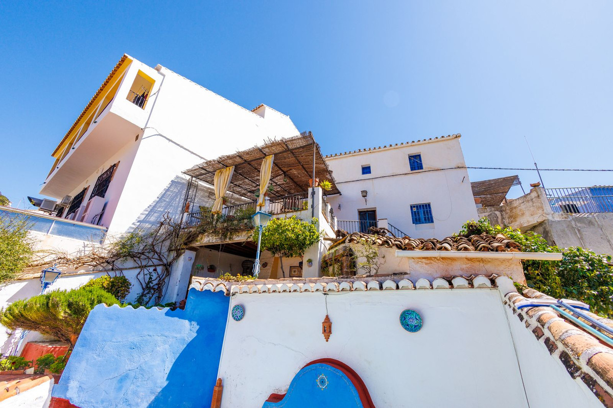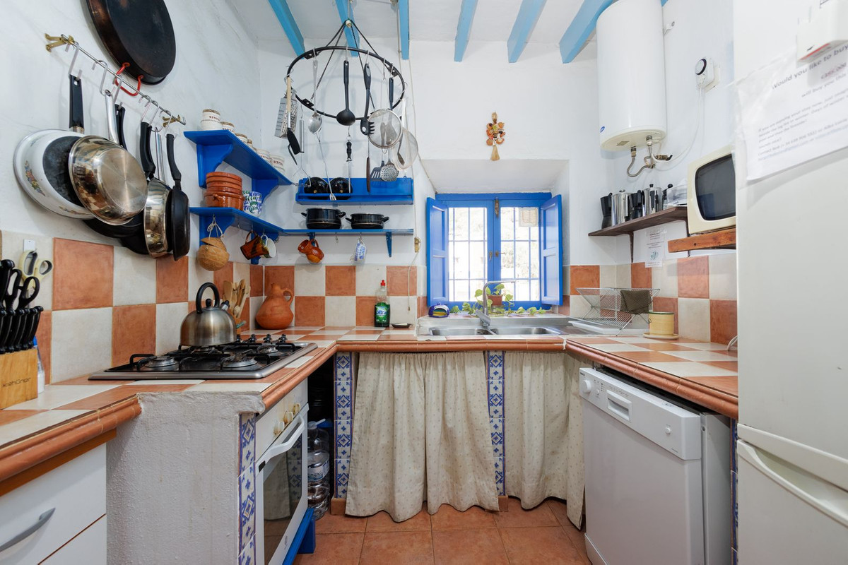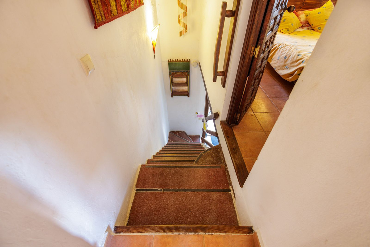 Een aantrekkelijk, rustiek huis met een bewezen succesvolle verhuurgeschiedenis, gelegen in een charmant en gastvrij gehucht vlakbij Comares. Deze prachtige woning is gelegen in Los Ventorros, een pittoresk dorpje op slechts een paar minuten van het bergstadje Comares. Dit populaire vakantiehuis met een uitstekende verhuurgeschiedenis biedt een unieke kans voor zowel privégebruik als verhuur. Bij aankomst is er parkeergelegenheid direct bij de woning. Een imposante houten voordeur leidt naar een overdekte veranda, die via dubbele houten deuren toegang geeft tot de hal. Wat direct opvalt bij binnenkomst is de prachtige zichtlijn die door het gehele huis loopt, van de voordeur tot de achterdeur die naar de tuin leidt. De traditionele geblokte vloertegels, kenmerkend voor deze streek, dragen bij aan de authentieke sfeer. De gang verbindt de verschillende kamers en leidt naar de woon-/eetkamer. Aan weerszijden van de gang bevinden zich twee charmante slaapkamers, elk met een eigen badkamer. Links bevindt zich een ruime slaapkamer (5 x 4 m) met inbouwkasten en een ensuite badkamer, en rechts een iets compactere kamer (3,5 x 5 m), eveneens met een kledingkast en een badkamer. De open leefruimte is heerlijk ruim en beschikt over een gezellige zithoek met open haard voor sfeervolle winteravonden en een eetgedeelte. Originele details zoals houten balken, muurnissen en authentieke vloeren geven deze ruimte (9 x 3 m) extra karakter. Grenzend aan de woonkamer bevindt zich de woonkeuken in boerderijstijl. Deze volledig uitgeruste keuken (4 x 3 meter) heeft een doorgeefluik naar de woonkamer en een raam met uitzicht op de tuin. De blauw geschilderde balken en ramen zorgen voor een warme, speelse sfeer. Er is een praktische bergruimte onder de trap. Vanuit de keuken komt u in de achterhal, die toegang biedt tot een extra slaapkamer, momenteel ingericht met twee eenpersoonsbedden en een raam met uitzicht op het achterterras. Een achterdeur in de hal geeft toegang tot het boventerras. Een trap leidt naar de bovenverdieping. Hier vindt u een ruime overloop. Linksboven aan de trap bevindt zich de grote hoofdslaapkamer met twee ramen met uitzicht op het landschap, een hemelbed, inbouwkasten en een ensuite badkamer (slaapkamer 5 x 3,2 m, badkamer 2 x 2 m). Rechts leidt een korte gang naar een tweede knusse slaapkamer (3,2 x 2,5 meter), momenteel ingericht als kinderkamer. Aan het einde van de overloop bevindt zich een derde slaapkamer (4 x 3 meter) met een schuin plafond en een raam met uitzicht op het terras aan de voorzijde. De familiebadkamer (2,5 x 1,8 meter) heeft een bad met douche en een raam met uitzicht op het terras. Via de dubbele deuren op de overloop komt u op het zonnige terras aan de voorzijde (25 vierkante meter), een heerlijke plek om het dorpsleven aan u voorbij te zien trekken en te genieten van de ochtendzon. Het achterterras, direct toegankelijk via de achterdeur, is een ideale plek om buiten te eten. Het heeft een rieten dak en gordijnen ter bescherming tegen de ondergaande zomerzon (6 x 5 m) en is sfeervol ingericht met een stevige houten tafel, stoelen en kleurrijke potplanten. Een trap leidt naar de lager gelegen tuin. De tuin zelf is een ware oase, met een prachtig betegelde tuin, bloemperken en gezellige hoekjes. Een oude bakstenen waterput zou met verlichting omgetoverd kunnen worden tot een decoratief element. Er is een tweede overdekt terras, perfect als ontspanningsruimte voor een drankje of een goed boek. Een aangrenzende kamer is momenteel in gebruik als tafeltennisruimte en blijft heerlijk koel in de zomer (5 x 3,5 m). Daarnaast is er een ruime berging die gebruikt wordt als gereedschapsschuur. Verderop in de tuin leidt een slingerend pad naar het zwembadterras, een ommuurde binnenplaats met een prachtig verlicht zwembad (4 x 3 meter). De omringende muren hebben Moorse elementen, die bijdragen aan de unieke sfeer van het huis. Helemaal achterin de tuin geven dubbele deuren toegang tot een kort pad dat naar een zijweg leidt. Dit bijzondere huis heeft alles wat u zoekt in een karaktervol pand: authentieke details, een warme sfeer en volop mogelijkheden. Het is perfect als vakantiehuis en biedt ook uitstekende mogelijkheden voor verhuur. Er is een verhuurvergunning.