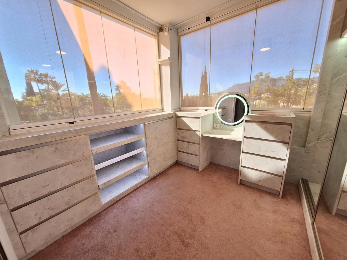 Dit moderne appartement met twee slaapkamers en twee badkamers is gelegen in de gewilde wijk Bel Air in Estepona Oost, Malaga. De woning heeft een benijdenswaardige locatie, genesteld in de bergen, maar toch gunstig gelegen ten opzichte van lokale voorzieningen, openbaar vervoer, winkels, scholen en het bruisende stadscentrum. De nabijheid van de zee en de zandstranden, evenals kinderspeelplaatsen, maakt het een ideale keuze voor zowel gezinnen als professionals die op zoek zijn naar een combinatie van rust en bereikbaarheid. Het appartement verkeert in uitstekende staat en maakt deel uit van een afgesloten complex met 24-uurs bewakingscamera's, een portier en een lift, wat zowel veiligheid als gemak garandeert. Bewoners profiteren van een gemeenschappelijk zwembad en een garage, terwijl de woning zelf toegankelijk is voor mindervaliden en huisdieren welkom is. De woning beschikt over een eigen terras en balkon met uitzicht op de stad, het zwembad en de straat, en wordt nog versterkt door een overdekt terras waar u het hele jaar door van kunt genieten. Van binnen is het appartement ontworpen voor modern wonen met een ruime woonkamer, een aparte ruimte, inbouwkasten en een bijkeuken. De woning is voorzien van individuele airconditioning units, een domoticasysteem, alarm, telefoon en snel glasvezelinternet met wifi. Extra voorzieningen zijn onder andere een wasruimte, een optioneel meubelpakket en een speciale ruimte voor huisdieren. De uitstekende staat van onderhoud en de doordachte indeling van de woning zorgen voor een comfortabele en praktische woonomgeving. Dit appartement biedt een uitstekende kans om een stijlvolle en veilige woning te verwerven op een van de meest gewilde locaties van Estepona. Met zijn uitgebreide aanbod, waaronder de nabijheid van essentiële voorzieningen en recreatiemogelijkheden, biedt het een uitzonderlijke levensstijl voor veeleisende kopers.