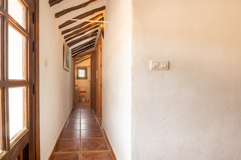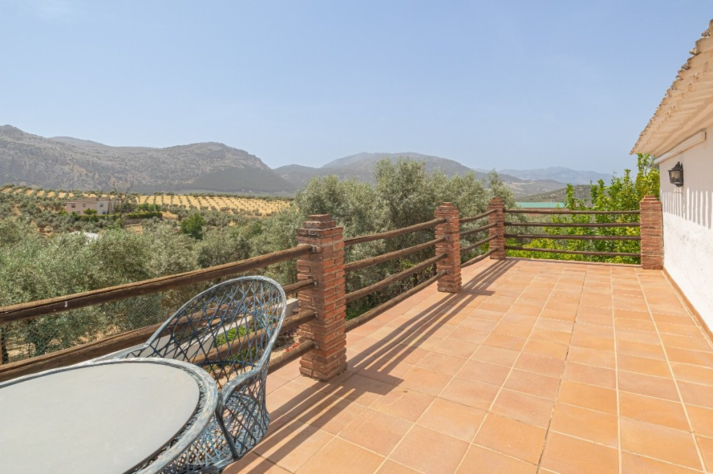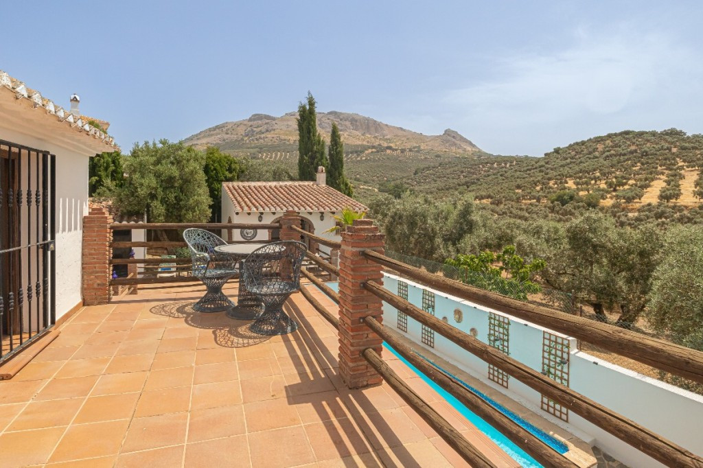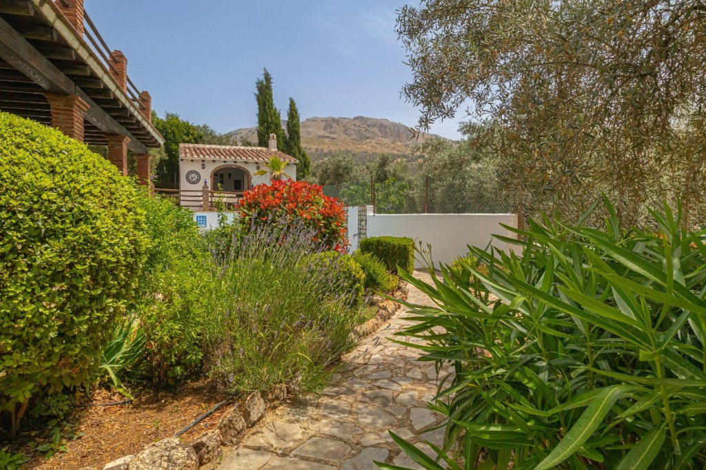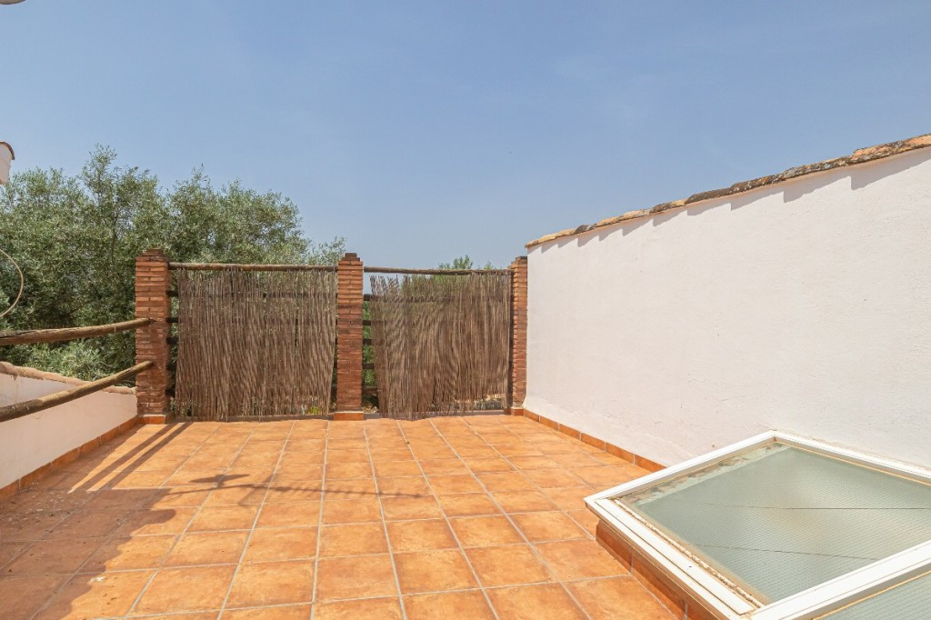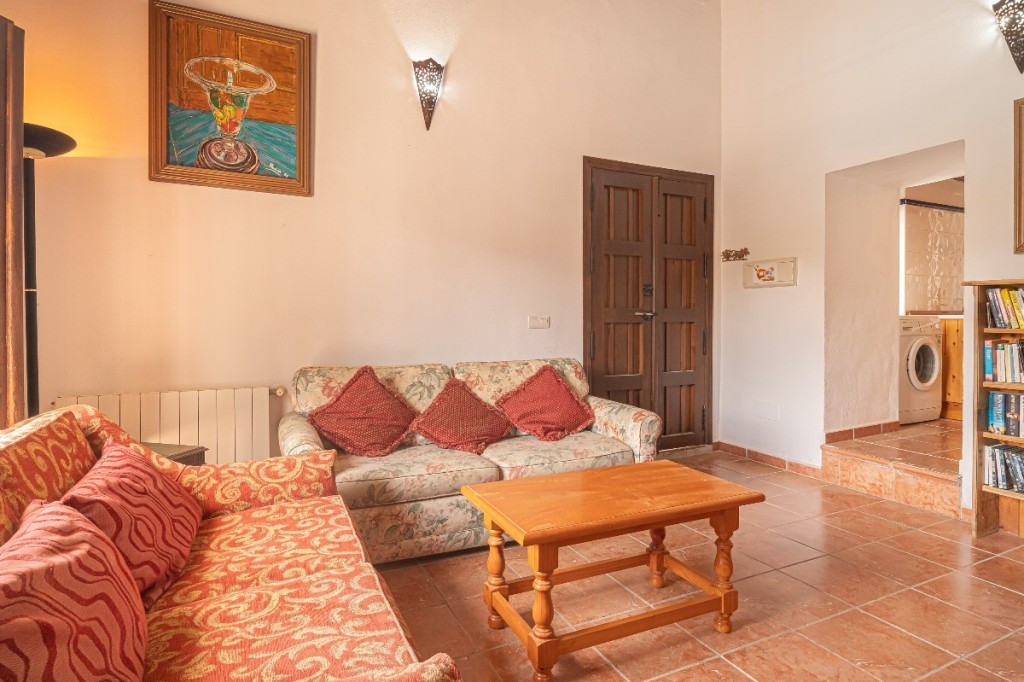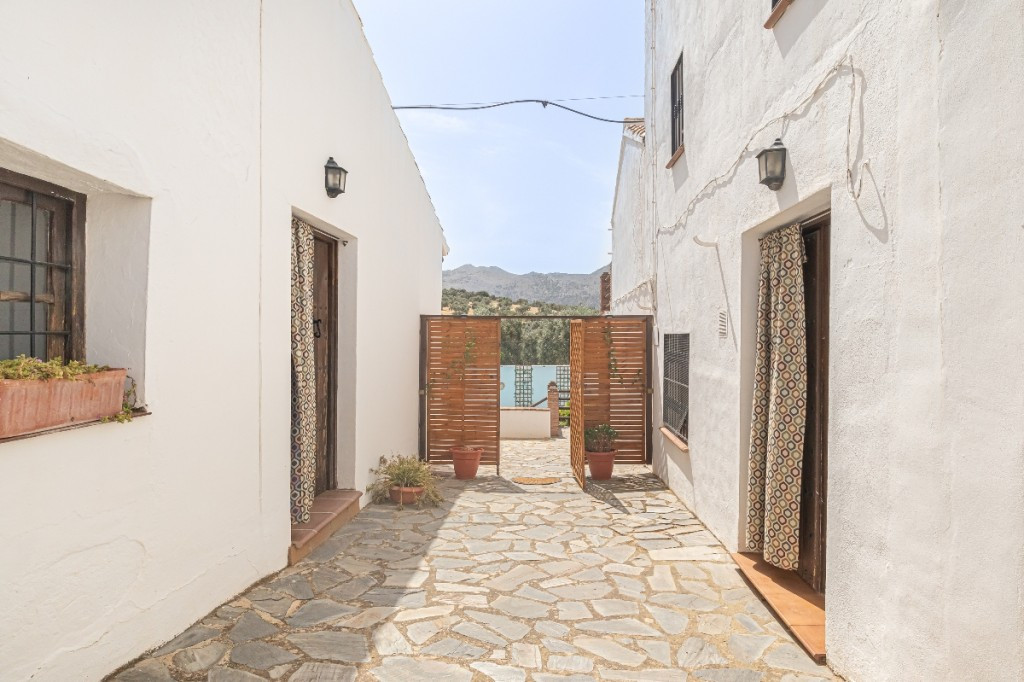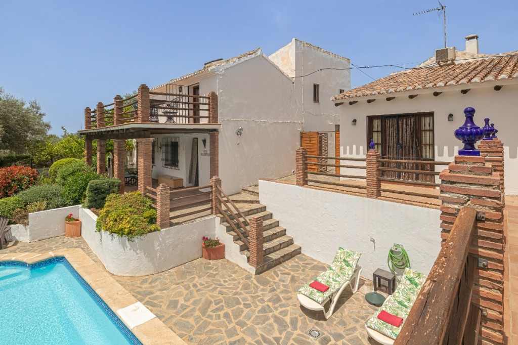 Mogelijkheid!! Prachtig rustiek landhuis te koop met 3 onafhankelijke woningen die klaar zijn om te verhuren. Het onroerend goed is als volgt verdeeld: Ingang voor voertuigen met parkeergelegenheid voor meerdere voertuigen en een volledig omheind groen gebied met olijfbomen. Een pittoreske entree via een ontvangsthal leidt naar een prachtige binnenplaats die de drie woningen scheidt en tevens toegang biedt tot het zwembad en de barbecueplek. Barbecue House: Bestaande uit een woonkamer met een plafond van dubbele hoogte en houten balken, een keuken en een toilet, plus grote zonnige terrassen met uitzicht op het zwembad, de bergen en het platteland. Het zwembad is omgeven door zonnige terrassen die volop privacy en rust bieden. Naast het zwembad bevinden zich een toilet en een berging voor ligstoelen. De tuin bij het zwembad is zeer onderhoudsvriendelijk en beschikt over zitgedeeltes en een extra buitenbarbecue. Huis nr. 1, direct tegenover het zwembad, is het grootste en is verdeeld over twee verdiepingen, als volgt: Begane grond: Grote entree met eettafel, hal met toilet onder de trap, woonkamer met prachtige open haard, plafond met houten balken, grote, aparte, ingerichte keuken met eettafel. Boven: 3 slaapkamers en 2 badkamers, plus twee grote zonnige terrassen met prachtig uitzicht op het landschap en de bergen. Huis nr. 2, gelegen tegenover het barbecue- en poolhouse, bestaat uit een woonkamer met hoge plafonds en houten balken, een aparte, ingerichte keuken met eettafel en open haard, een slaapkamer en een badkamer. Boven: nog een grote slaapkamer met een badkamer. Huis nr. 3 beschikt over een privétuin met een klein zwembad en terrassen die 100% privacy bieden. Het bestaat uit een hal, een woonkeuken, een woonkamer met toegang tot het terras, een slaapkamer en een badkamer. Woning in goede staat met oliegestookte radiatoren, airconditioning en internet. Uitstekende verharde toegang. Gemeentewater. Watertank. Septictank. Afstanden: Villanueva del Trabuco 4,5 km. Archidona 14 km. Antequera 40 km. Luchthaven Malaga 64 km.