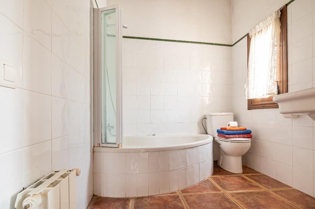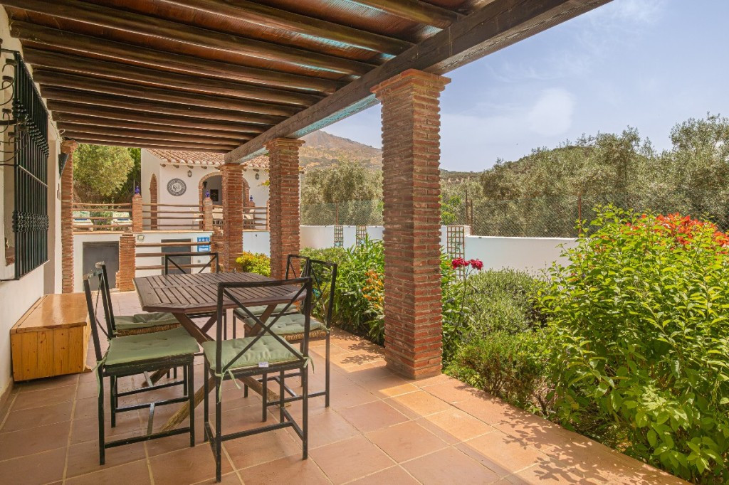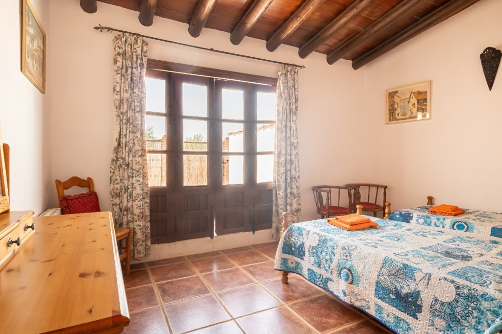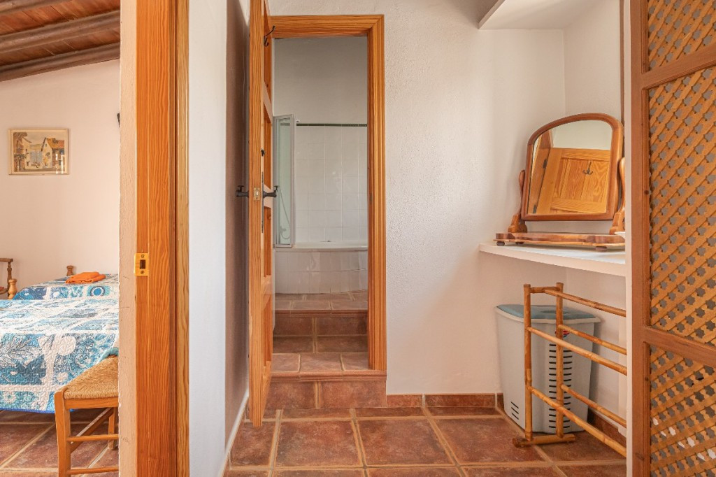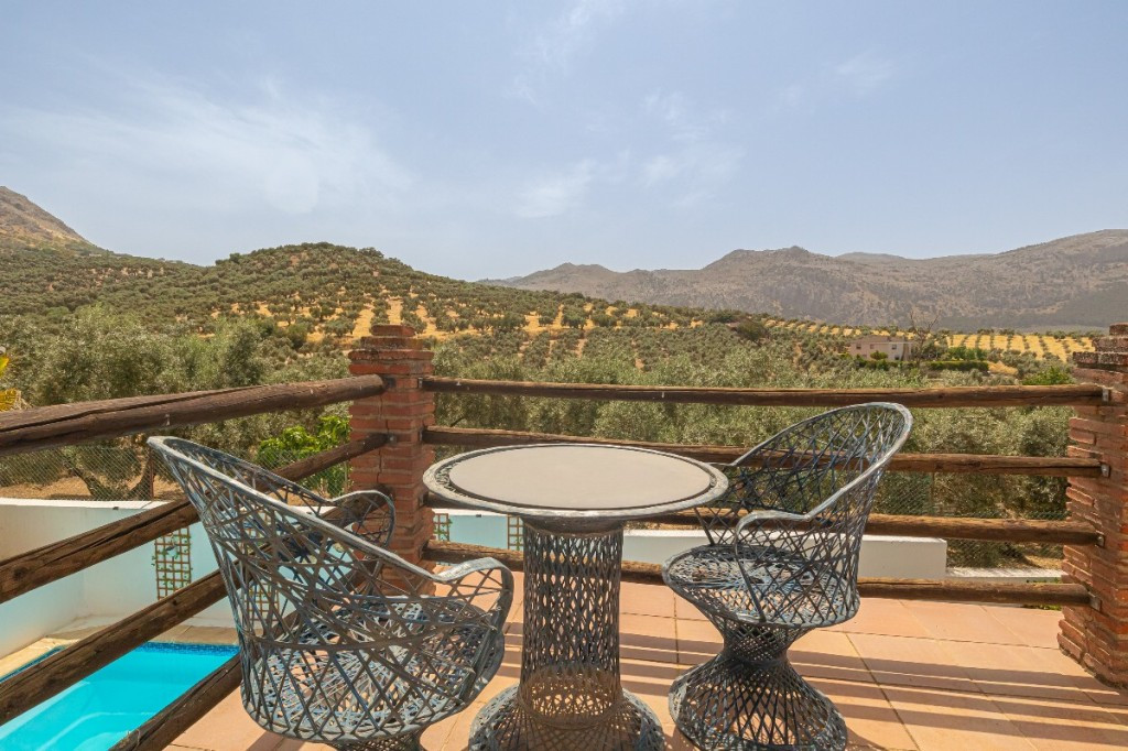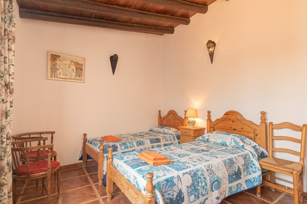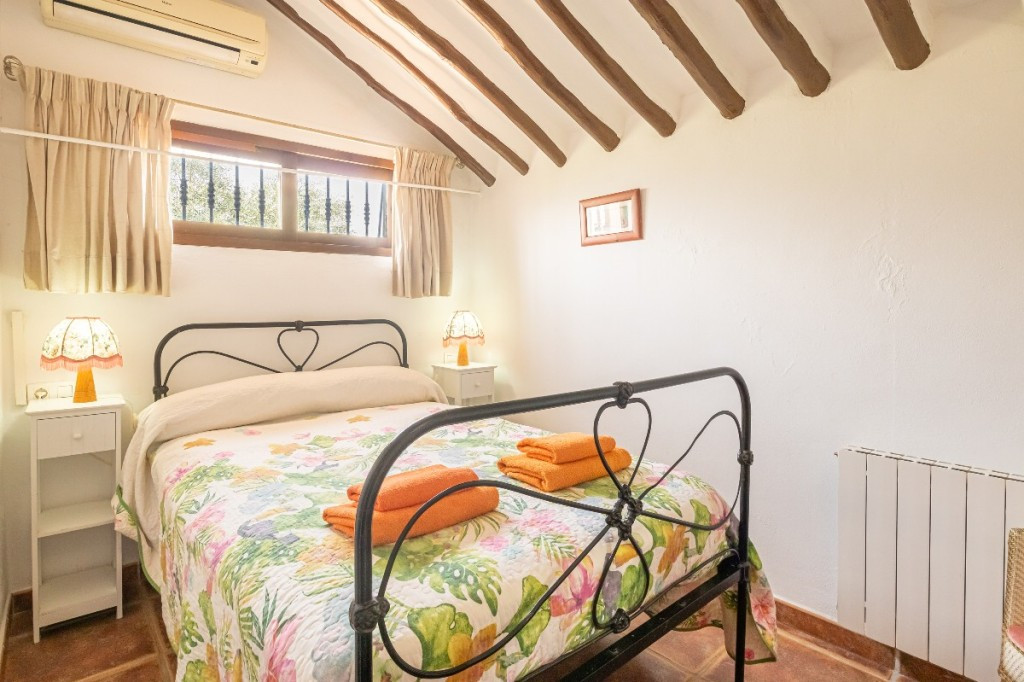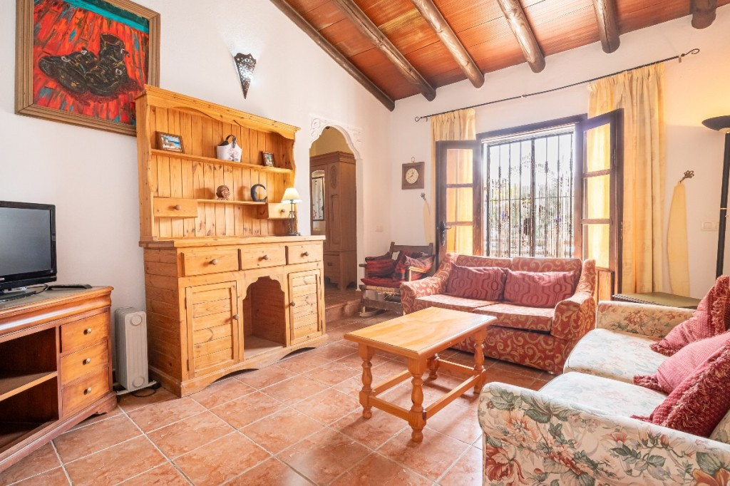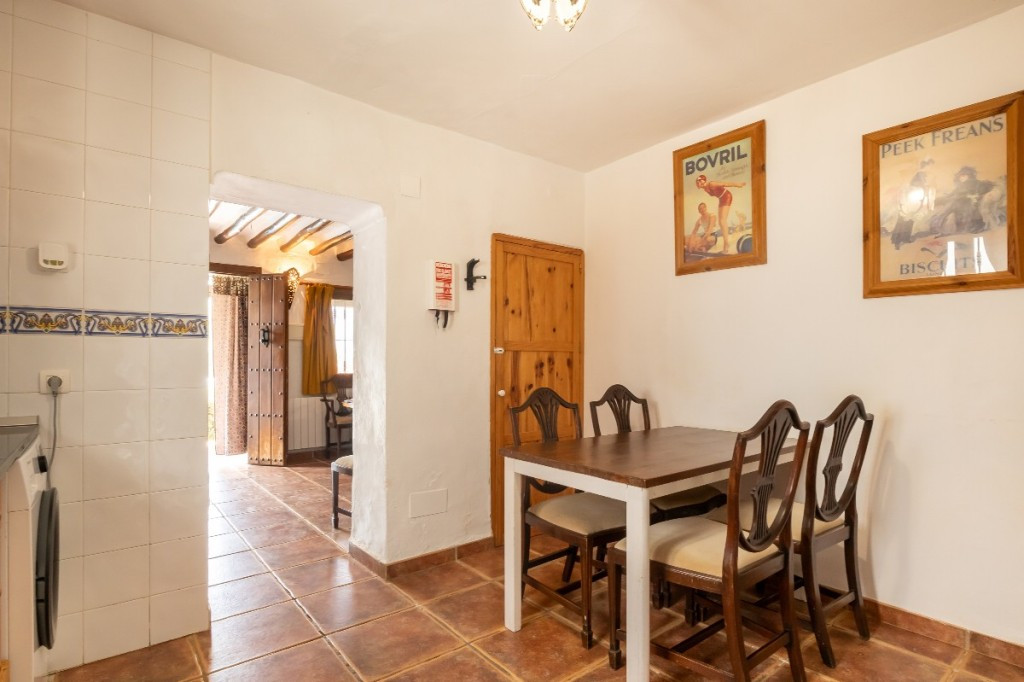Mogelijkheid!! Prachtig rustiek landhuis te koop met 3 onafhankelijke woningen die klaar zijn om te verhuren. Het onroerend goed is als volgt verdeeld: Ingang voor voertuigen met parkeergelegenheid voor meerdere voertuigen en een volledig omheind groen gebied met olijfbomen. Een pittoreske entree via een ontvangsthal leidt naar een prachtige binnenplaats die de drie woningen scheidt en tevens toegang biedt tot het zwembad en de barbecueplek. Barbecue House: Bestaande uit een woonkamer met een plafond van dubbele hoogte en houten balken, een keuken en een toilet, plus grote zonnige terrassen met uitzicht op het zwembad, de bergen en het platteland. Het zwembad is omgeven door zonnige terrassen die volop privacy en rust bieden. Naast het zwembad bevinden zich een toilet en een berging voor ligstoelen. De tuin bij het zwembad is zeer onderhoudsvriendelijk en beschikt over zitgedeeltes en een extra buitenbarbecue. Huis nr. 1, direct tegenover het zwembad, is het grootste en is verdeeld over twee verdiepingen, als volgt: Begane grond: Grote entree met eettafel, hal met toilet onder de trap, woonkamer met prachtige open haard, plafond met houten balken, grote, aparte, ingerichte keuken met eettafel. Boven: 3 slaapkamers en 2 badkamers, plus twee grote zonnige terrassen met prachtig uitzicht op het landschap en de bergen. Huis nr. 2, gelegen tegenover het barbecue- en poolhouse, bestaat uit een woonkamer met hoge plafonds en houten balken, een aparte, ingerichte keuken met eettafel en open haard, een slaapkamer en een badkamer. Boven: nog een grote slaapkamer met een badkamer. Huis nr. 3 beschikt over een privétuin met een klein zwembad en terrassen die 100% privacy bieden. Het bestaat uit een hal, een woonkeuken, een woonkamer met toegang tot het terras, een slaapkamer en een badkamer. Woning in goede staat met oliegestookte radiatoren, airconditioning en internet. Uitstekende verharde toegang. Gemeentewater. Watertank. Septictank. Afstanden: Villanueva del Trabuco 4,5 km. Archidona 14 km. Antequera 40 km. Luchthaven Malaga 64 km.