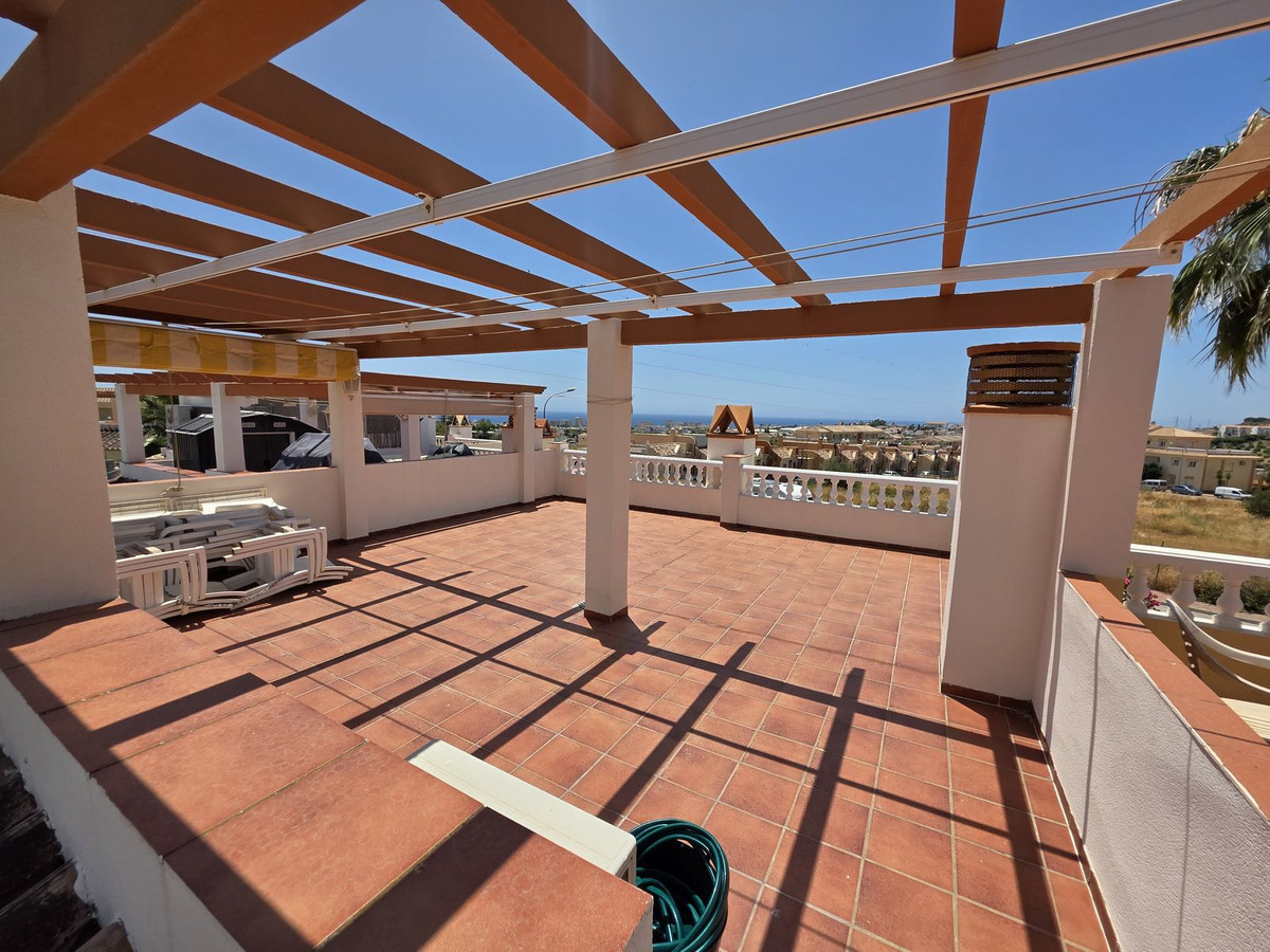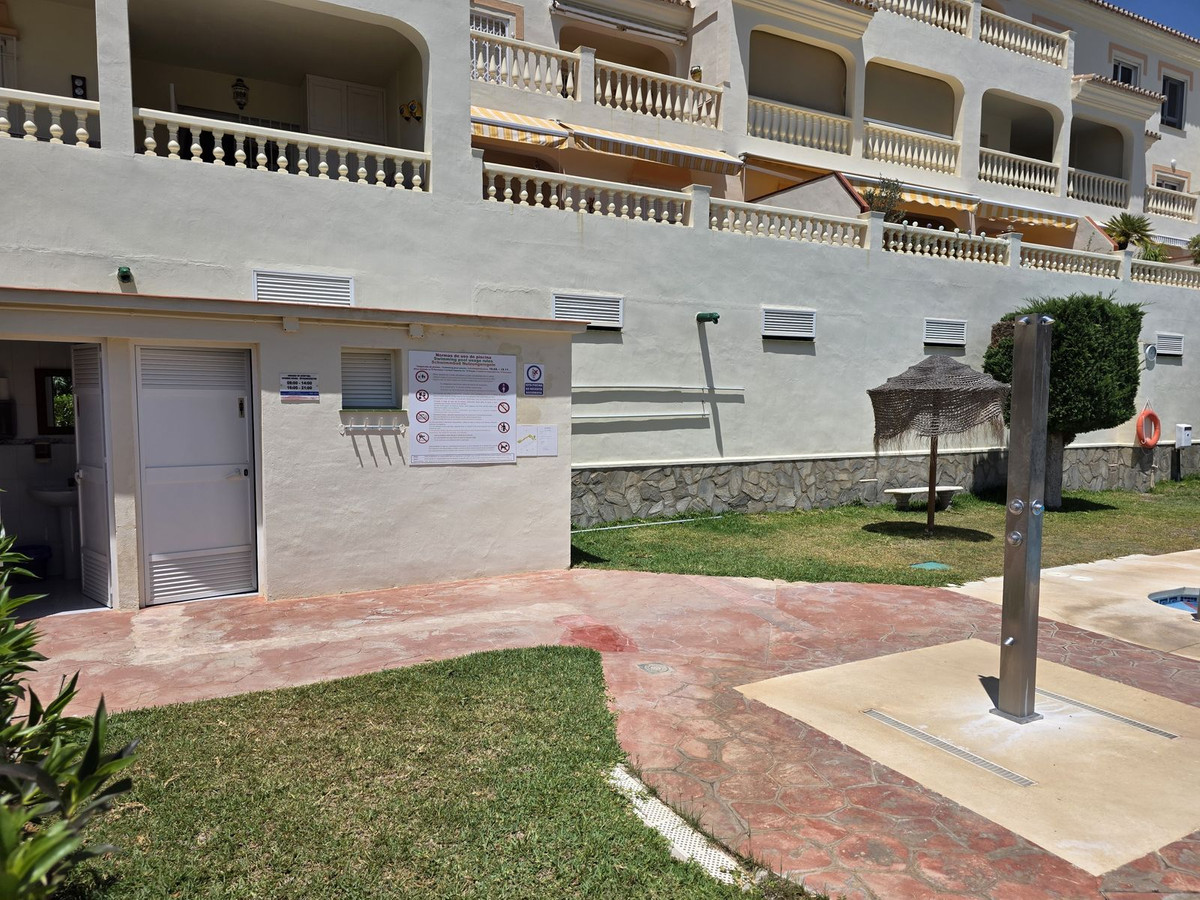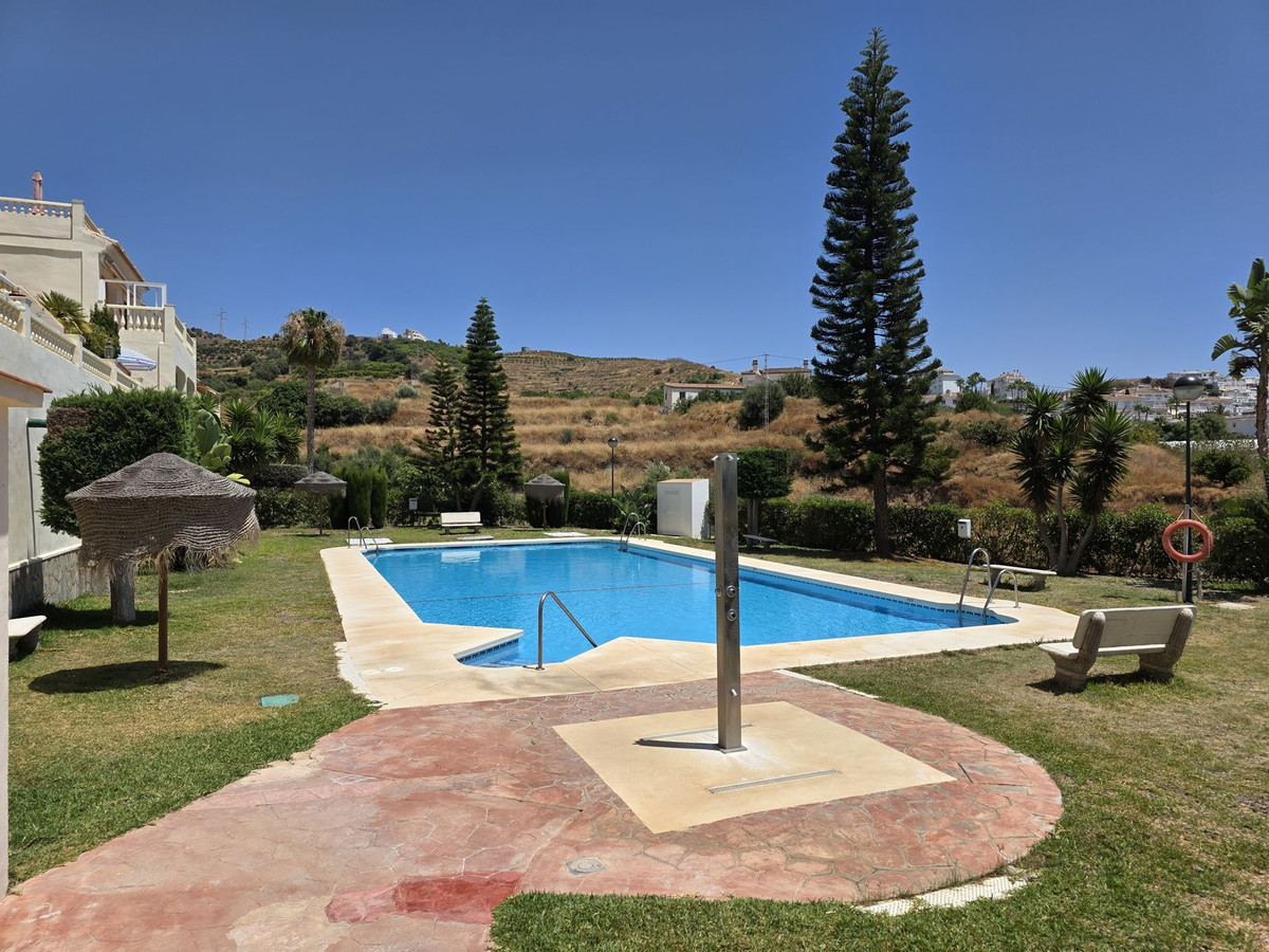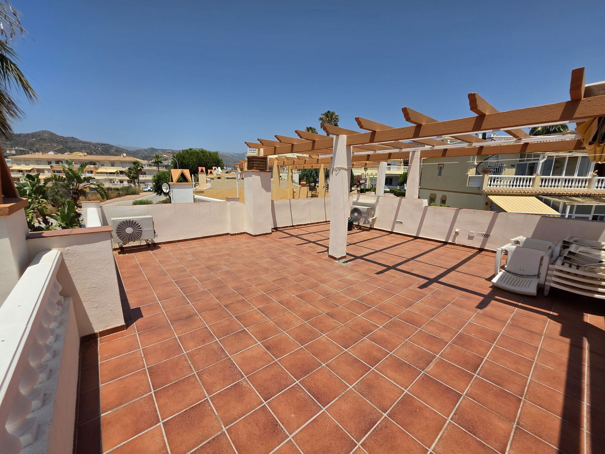 Geweldige locatie van deze woning in Torrox Costa, dicht bij het strand en alle voorzieningen. Ook een openbare school is op slechts een paar minuten afstand. De woning beschikt over een patio bij de ingang, een groot terras aan de achterzijde en een groot dakterras met spectaculair uitzicht op zee en de kust. In totaal vindt u twee slaapkamers, een complete badkamer, een open keuken met alle elektrische apparaten, een eethoek en een grote woonkamer met toegang tot het privéterras en de gemeenschappelijke tuin. Gelegen op het zuidwesten met uitzicht langs de kust! Deze woning maakt deel uit van een complex in Torrox Park met tuinen rondom en een groot zwembad. Ongeveer 30 minuten van de luchthaven en de stad Málaga en slechts 10 minuten van het beroemde dorp Nerja. De m² zijn als volgt: 70 m² woonoppervlak, 16 m² terras, 55 m² dakterras en 4 m² trap!