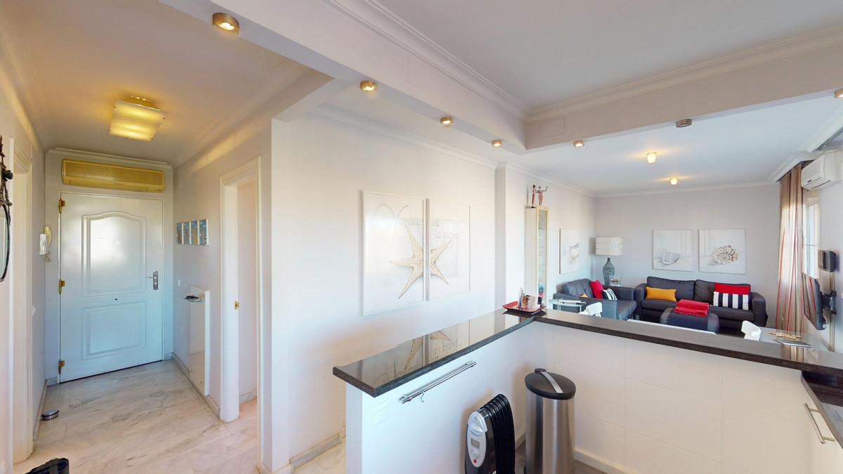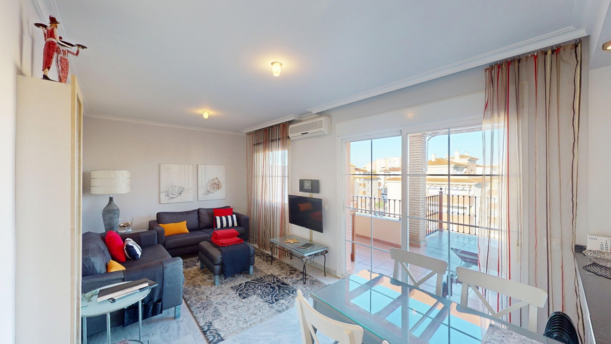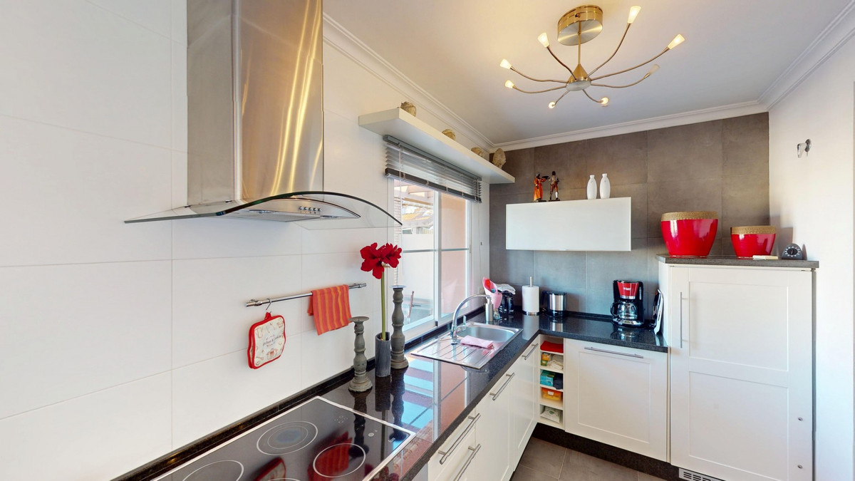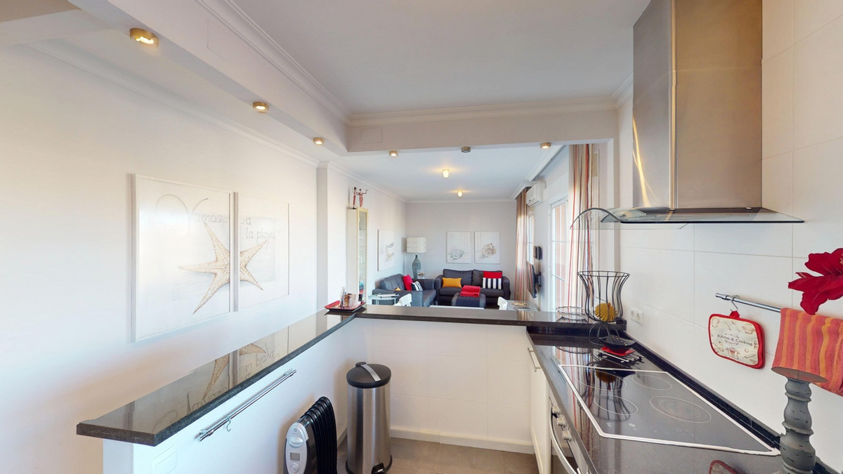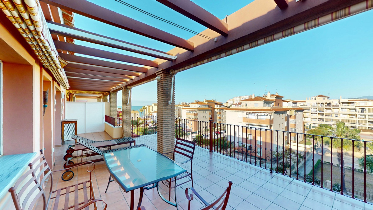 Welkom in dit charmante penthouse in het kustplaatsje Mezquitilla, een perfecte mix van comfort, functionaliteit en een mediterrane levensstijl. Dit goed ontworpen appartement onderscheidt zich door twee privéterrassen, beide met een prachtig uitzicht op zee en volop ruimte om te ontspannen, te dineren of buiten te entertainen. De lichte en luchtige woonkamer loopt naadloos over in de keuken en komt direct uit op een van de terrassen, waardoor een heerlijk binnen-buitengevoel ontstaat. Een van de twee slaapkamers heeft ook directe toegang tot het terras, wat zorgt voor veel natuurlijk licht en een zeebriesje. Beide slaapkamers zijn voorzien van inbouwkasten en het hele appartement is voorzien van airconditioning voor comfort het hele jaar door. De keuken is compact maar stijlvol, met strakke witte kasten, zwarte aanrechtbladen en roestvrijstalen apparatuur. De open indeling en de zorgvuldig gekozen inrichting met warme tinten en kleuraccenten creëren een gastvrije en eigentijdse sfeer. De badkamer is modern en goed uitgerust, met een bad-douchecombinatie, een opzetwastafel en hoogwaardige voorzieningen die de ruimte zowel functioneel als aangenaam maken. Een privéparkeerplaats en een aparte berging bieden extra gemak, en de goed onderhouden gemeenschap beschikt over een gemeenschappelijk zwembad - ideaal voor een verfrissende duik op warme dagen. Gelegen op slechts een korte loopafstand van het strand, lokale restaurants, winkels en andere voorzieningen, is dit penthouse ideaal voor wie op zoek is naar een permanente woning, een ontspannende vakantiewoning of een solide investering aan de zonnige kust. We zijn blij u binnenkort deze droomwoning te kunnen presenteren, persoonlijk of via een virtuele bezichtiging. Want deze wereld is uniek - net als onze Axarquía. In Andalusië. Aan de Costa del Sol. Hier, aan de zonnige kant van het leven...