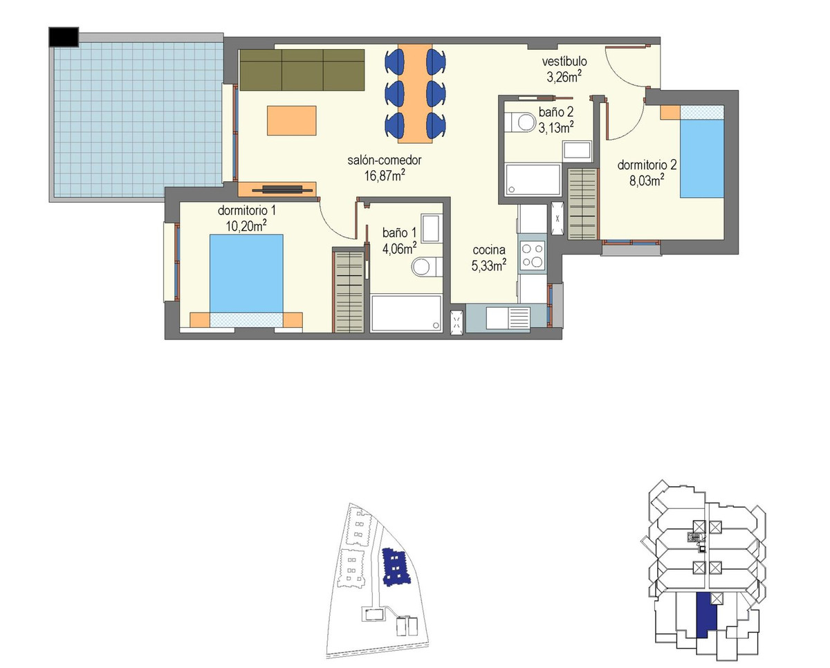 Modern appartement met terras en gedeeltelijk zeezicht – Costa Blanca Dit charmante appartement op de begane grond biedt een comfortabele mediterrane levensstijl in een van de meest gewilde gebieden van de Costa Blanca. Gelegen op slechts enkele minuten van het strand en met gemakkelijke toegang tot alle voorzieningen, is het ideaal als permanente woning, tweede huis of vakantieverhuur. De woning beschikt over 2 slaapkamers en 2 badkamers, gelegen in een moderne, functionele ruimte vol natuurlijk licht. Een van de belangrijkste hoogtepunten is het privéterras: de ideale plek om te ontspannen en het hele jaar door te genieten van het aangename klimaat, met gedeeltelijk uitzicht op zee en de schilderachtige omgeving. Opvallende kenmerken zijn onder meer: Volledig ingerichte en gemeubileerde keuken met hoogwaardige apparatuur Complete badkamers met meubilair, spiegel en douchescherm Inbouwkasten met binneninrichting Dubbele beglazing en gemotoriseerde rolluiken Uitstekende kwaliteit materialen en afwerkingen Dit appartement ligt in een rustige woonwijk met aangelegde tuinen en een rustige sfeer. Het combineert comfort, design en de nabijheid van de zee: ideaal om te genieten van het beste dat het mediterrane leven te bieden heeft.