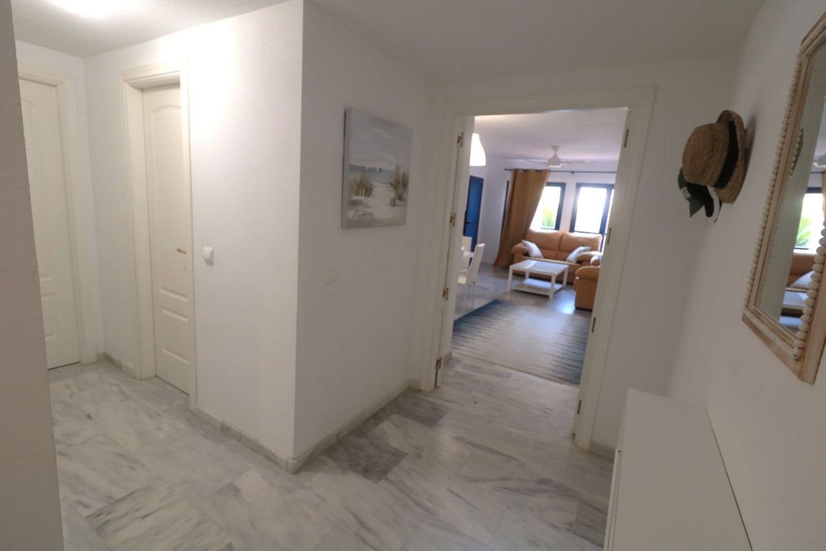 PRACHTIG, zeer ruim begane grondappartement met twee slaapkamers en twee badkamers, op slechts 100m van het strand! Deze zeer goed onderhouden woning beschikt over een groot overdekt terras met een prachtig uitzicht op het zwembad en de zee. Het appartement is zeer licht, heeft een ruime woonkamer en twee goed ontworpen slaapkamers, evenals twee badkamers, waarvan één en-suite met raam. Een volledig uitgeruste keuken met bijkeuken maakt deze woning nog interessanter. Op slechts een paar minuten rijden van Sabinillas en Estepona, met alle voorzieningen. De woning is gelegen in een afgesloten complex met videobewaking, schoonmakers, tuinmannen en badmeester in de zomer. Daarnaast zijn er prachtige gemeenschappelijke tropische tuinen en een groot zwembad met parasols en ligstoelen, op slechts een steenworp afstand van de zee. De omgeving biedt vele prachtige stranden, restaurants, winkelcentra, golfbanen en wandelpaden om van de natuur te genieten. Een fantastische gezinswoning of een perfect vakantiehuis met een hoog verhuurpotentieel. Een bezoek is zeker aan te raden!