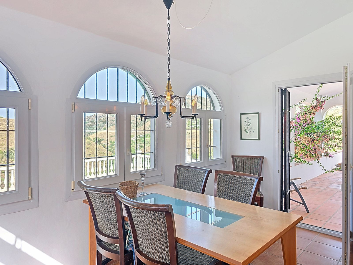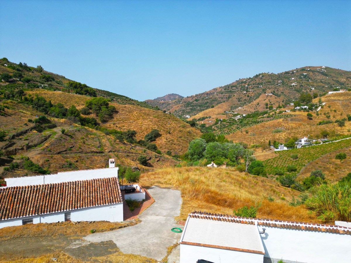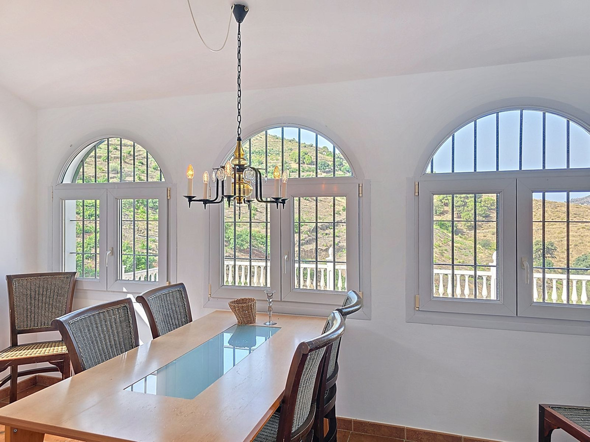 Te koop: Prachtige villa met apart gastenverblijf, tussen Cómpeta en Torrox, Andalusië Ontdek een vredig Andalusisch toevluchtsoord, gelegen tussen de witte dorpjes Cómpeta en Torrox. Deze ruime villa ligt op een privéperceel van 8000 vierkante meter en biedt een weids uitzicht op de bergen en het landschap – de perfecte setting voor een ontspannen, comfortabele levensstijl in Zuid-Spanje. Het hoofdhuis heeft een bebouwde oppervlakte van 287 vierkante meter en een bruikbare oppervlakte van 215 vierkante meter. Binnen vindt u vijf ruime slaapkamers, twee complete badkamers, een grote, lichte woonkamer met een houtkachel en een volledig uitgeruste keuken die overgaat in een gezellige eetkamer. De eetkamer kijkt uit op het privézwembad van 8 x 4 meter – een prachtig middelpunt om te ontspannen of gasten te ontvangen. Meerdere terrassen rondom het huis bieden de hele dag door ruimte om van de zon te genieten of in de schaduw te zitten tijdens de warme middagen. Of u nu buiten wilt eten, lezen of gewoon wilt genieten van de rust, elk terras biedt zijn eigen unieke uitzicht en sfeer. De woning beschikt tevens over een onafhankelijk gastenverblijf van circa 65 vierkante meter met een tweepersoonsslaapkamer en een badkamer – ideaal voor het ontvangen van gasten of een uitgebreide familie. Daarnaast biedt een aparte berging flexibele ruimte die eenvoudig kan worden omgebouwd tot een extra slaapkamer, keuken of kantoor. Een eigen garage en voldoende parkeergelegenheid maken het aanbod compleet, waardoor deze villa instapklaar is. Gelegen op slechts 15 minuten rijden van de kust en met gemakkelijke toegang tot lokale voorzieningen in zowel Cómpeta als Torrox, biedt deze woning zowel privacy als gemak. Dit is een zeldzame kans om een ruime, goed onderhouden villa te kopen in een van de meest gewilde regio's van de Axarquía. Een huis waar u kunt genieten van natuurlijke schoonheid, privacy en het hele jaar door comfort. Voor meer informatie of een bezichtiging kunt u contact met ons opnemen.