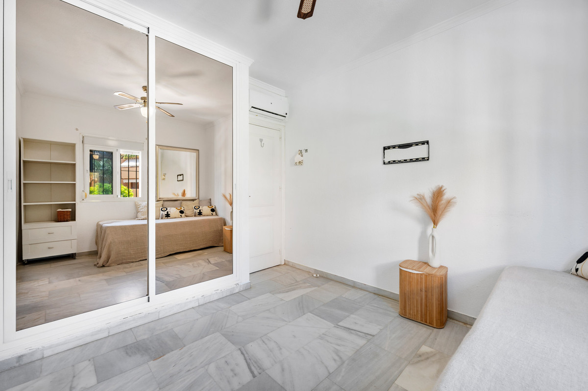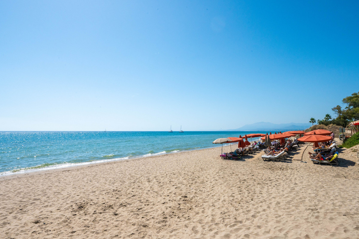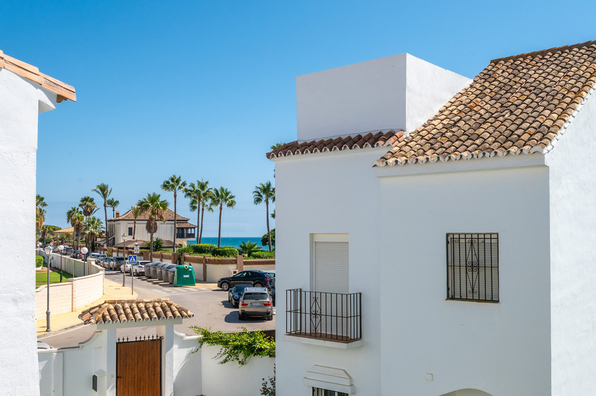 STADSWONING AAN HET STRAND IN ROSARIO MET PRIVÉTUIN, DIRECTE TOEGANG TOT HET ZWEMBAD, AFGESLOTEN GEMEENSCHAP EN UITSTEKEND INVESTERINGSPOTENTIEEL Deze indrukwekkende woning met 4 slaapkamers geniet een toplocatie in een beveiligde, afgesloten strandgemeenschap, direct aan het strand van Hipopótamo / Las Chapas in Rosario, Marbella Oost. Omringd door enkele van de beste restaurants en de meest adembenemende kustlijn, combineert deze locatie levensstijl en investeringspotentieel naadloos. Alle drie de slaapkamers bevinden zich op de eerste verdieping en beschikken over een royale master suite met een eigen ruime en-suite badkamer, terwijl de overige twee slaapkamers een goed ontworpen tweede badkamer delen. Op de begane grond is er een lichte, open woonkamer die naadloos aansluit op een privétuin en terras, met directe toegang tot het gemeenschappelijke zwembad, ideaal voor een gezellige familievakantie of een ontspannen buitenfeestje. Op slechts 10 minuten van het centrum van Marbella en 35 minuten van de luchthaven van Malaga biedt deze woning een zeldzame mix van comfort, gemak en charme aan de kust. Of u nu op zoek bent naar een slimme investering, een permanente woning of een vakantieverblijf met uitstekende verhuurmogelijkheden, deze woning is een uitstekende kans in een van de meest gewilde strandlocaties van de Costa del Sol.