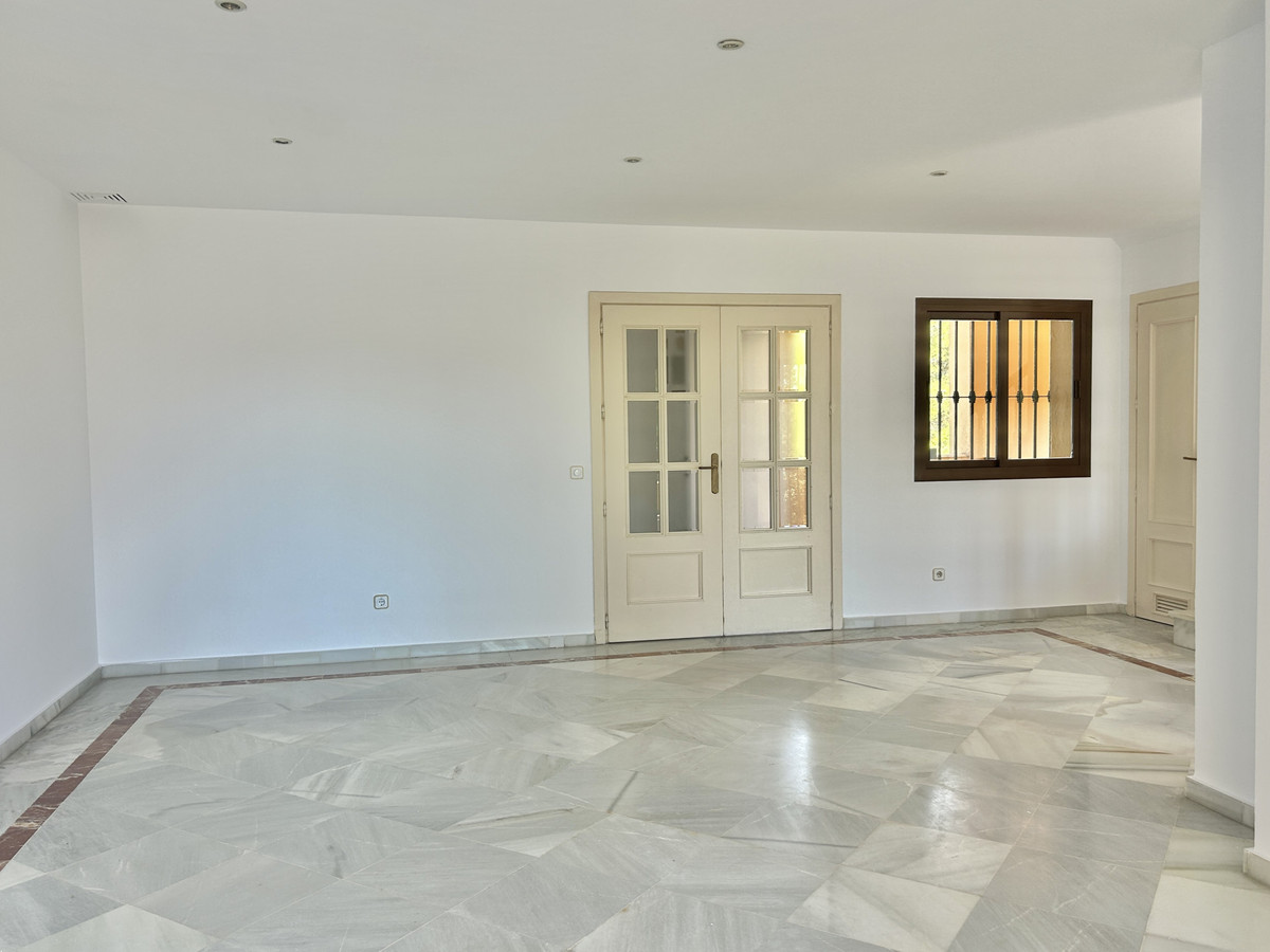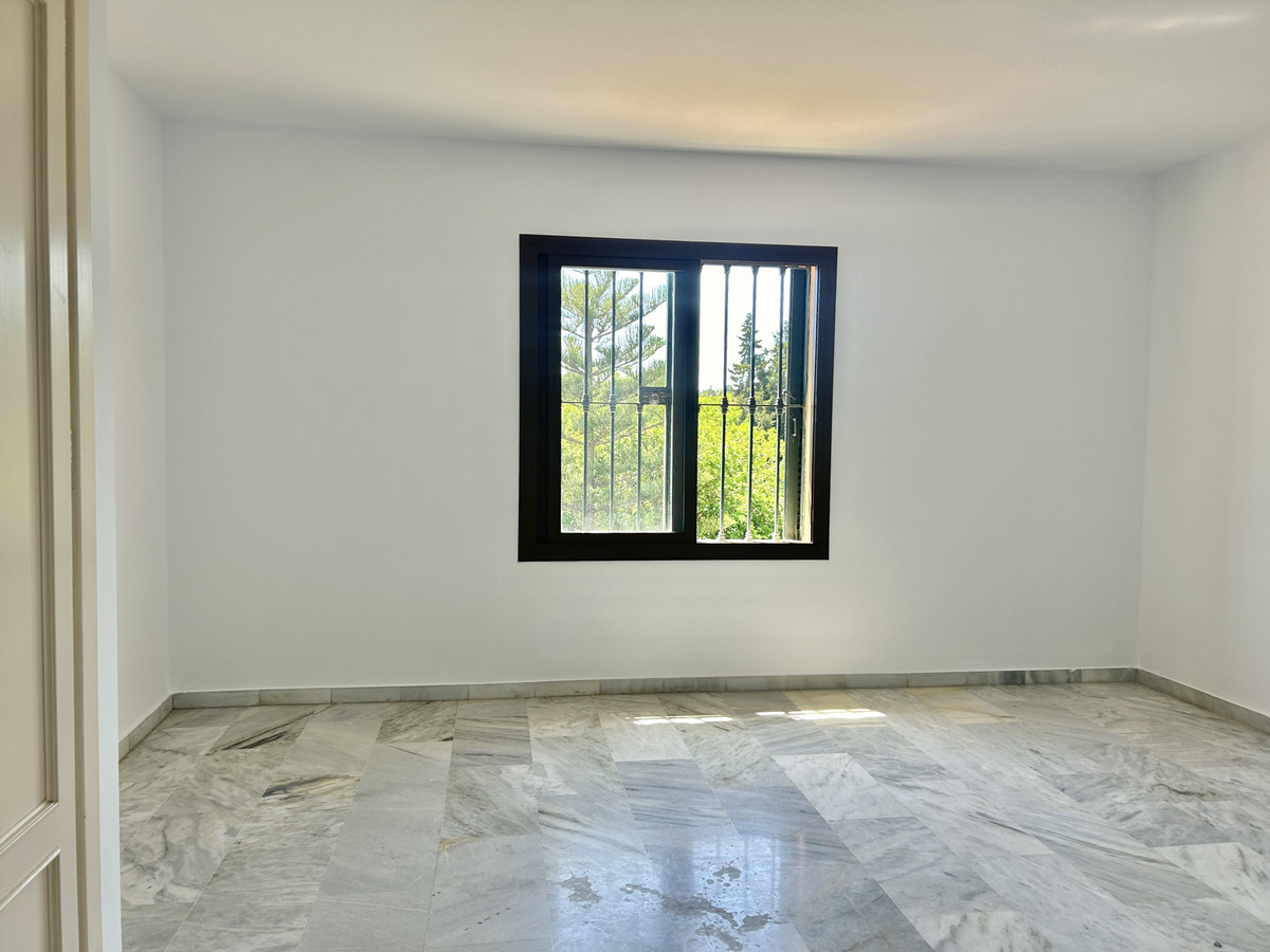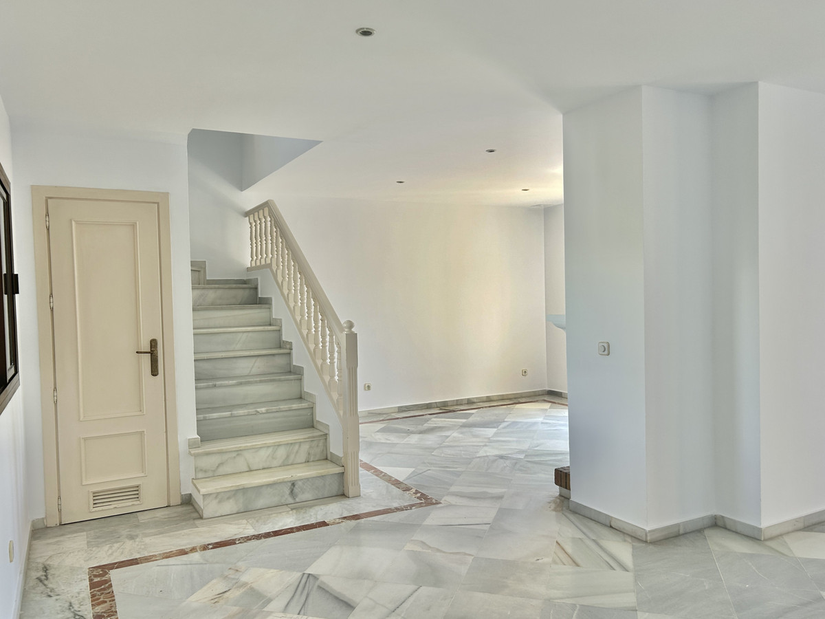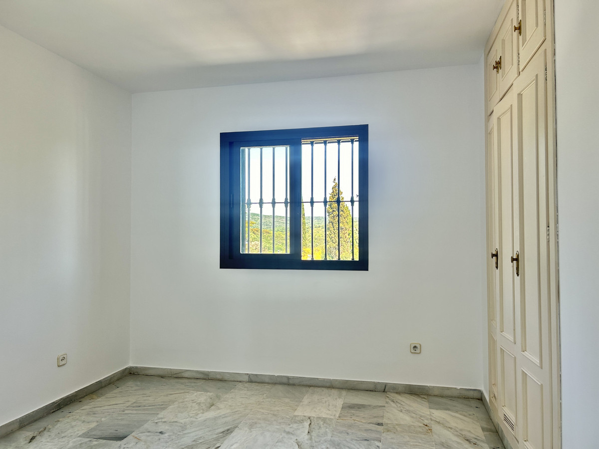 Ruim appartement met twee verdiepingen en een hoekgarage, gelegen in de urbanisatie Encinar de Sotogrande, vlak bij het volledige servicegebied van Sotogrande. Op de begane grond bevindt zich de grote garage met bergruimte. De woning is bereikbaar via een buitentrap die toegang geeft tot een entree. De eerste verdieping van de woning bestaat uit: een hal, een gastentoilet, een keuken met aparte wasruimte, een lichte en ruime woonkamer met open haard en toegang tot een overdekt terras met uitzicht op de tuin met fruitbomen. De vier slaapkamers bevinden zich op de tweede verdieping. De hoofdslaapkamer heeft een eigen badkamer, een kleedkamer en toegang tot het terras. De overige drie slaapkamers delen de vier badkamers. De urbanisatie beschikt over prachtige gemeenschappelijke groene zones en parkeergelegenheid voor gasten. Het ligt naast het Encinar Hotel en het winkelcentrum Marisol. De locatie biedt gemakkelijke toegang tot supermarkten, apotheken, onderwijscentra, banken en diverse restaurants en cafés, wat een praktische en comfortabele levensstijl garandeert.