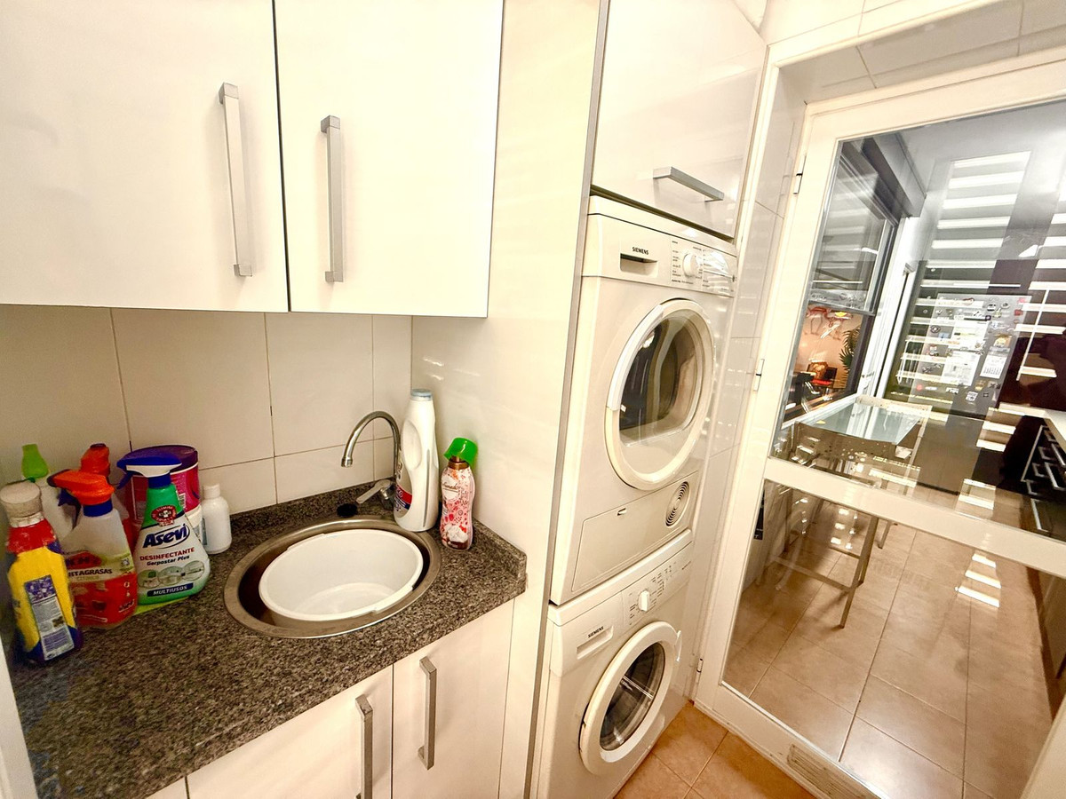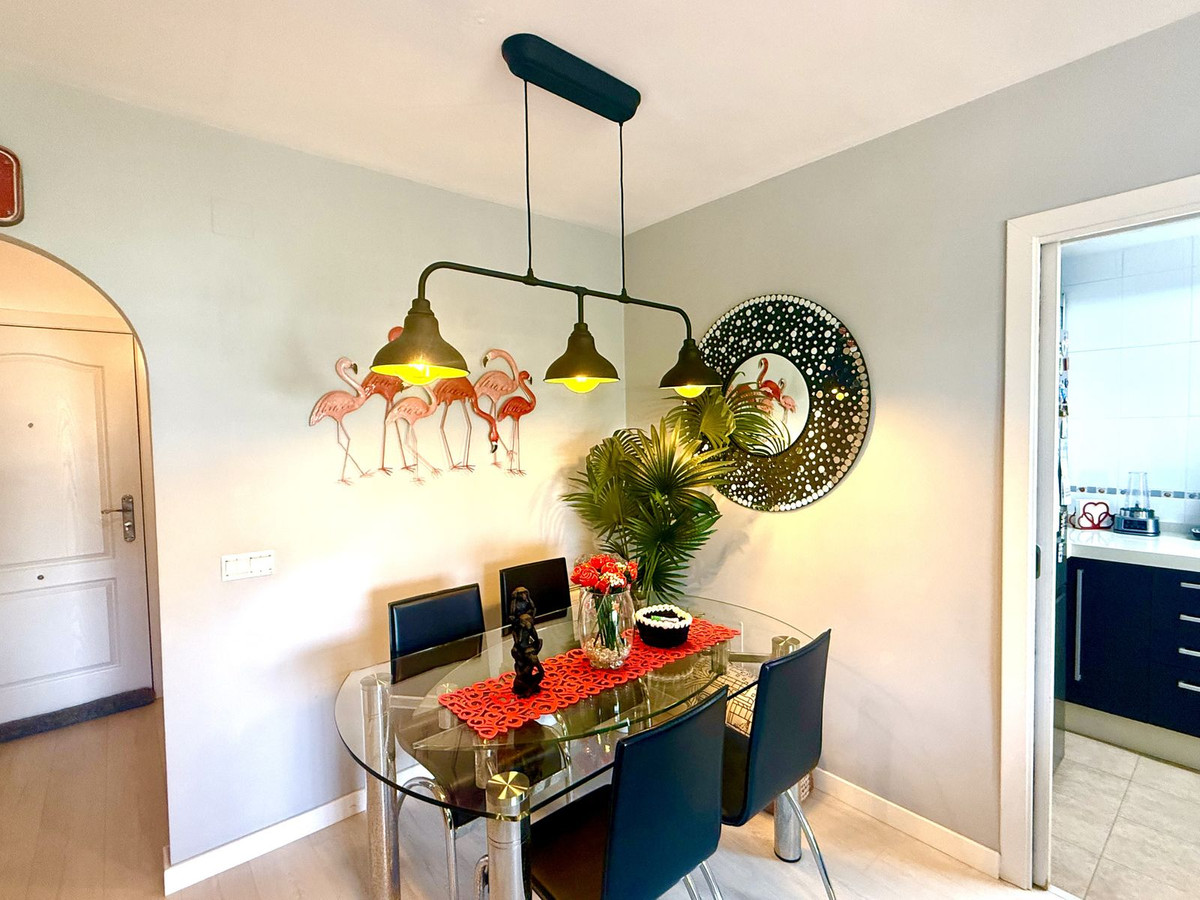 Prachtig gerenoveerd duplex appartement in Algarrobo Costa, op een steenworp afstand van het strand Dit lichte en stijlvolle duplex appartement met 2 slaapkamers en 2 badkamers ligt op een steenworp afstand van de zandstranden van Algarrobo Costa. Wat het echt onderscheidt, is de hoogwaardige renovatie en smaakvolle inrichting, waardoor de woning in onberispelijke staat verkeert. Op de begane grond leidt een ruime, lichte hal naar de woon- en eetkamer, een halfopen keuken met aangrenzende wasruimte en een overdekt terras met moderne glazen vouwramen – de perfecte plek om het hele jaar door van de zon te genieten. Een complete badkamer met douche completeert deze verdieping. Boven vindt u een strakke, moderne badkamer, een slim ontworpen eenpersoonsslaapkamer met op maat gemaakte stapelbedden, ruime inbouwkasten met uitstekende opbergruimte en een praktisch bureau. De hoofdslaapkamer beschikt eveneens over inbouwkasten en heeft een eigen privéterras op het zuidoosten met prachtig uitzicht op zee. Gelegen in een goed onderhouden complex, profiteert de woning van een ondergrondse parkeergarage en is ideaal gelegen nabij lokale voorzieningen. Dit duplex appartement combineert comfort, stijl en gemak en is daarmee de perfecte woning aan de kust.