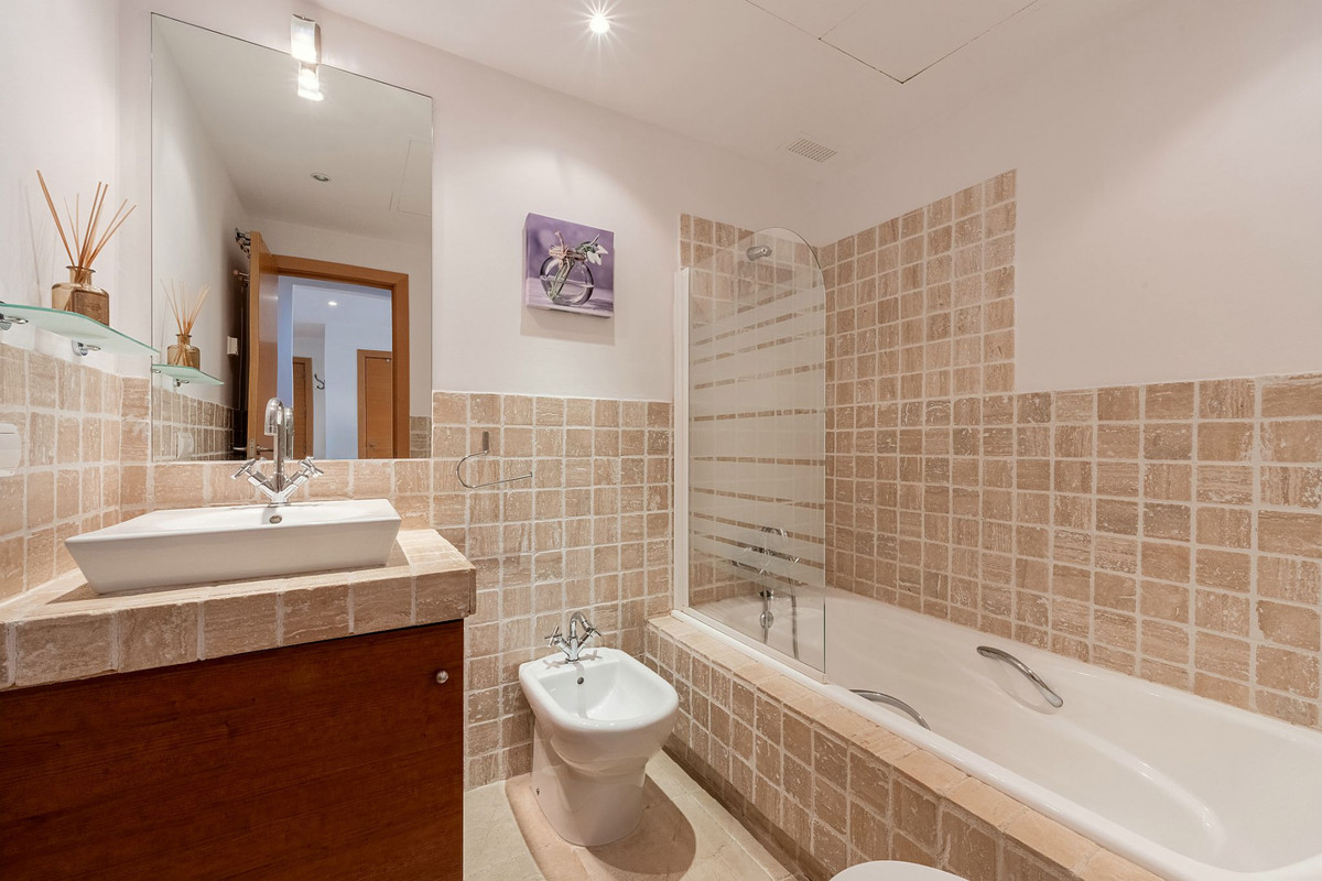 Dit exclusieve appartement ligt in het prestigieuze Los Flamingos Golf Resort en combineert elegantie, comfort en een bevoorrechte omgeving. De accommodatie beschikt over een privétuin van 50 m² met directe toegang tot het hoofdzwembad, met prachtig uitzicht op zee en weelderige gemeenschappelijke tuinen. De beveiligde community beschikt over 24-uurs beveiliging, drie zwembaden en aangelegde groene zones, wat zorgt voor een veilige en ontspannen omgeving. Binnen is er een lichte woon-/eetkamer met open haard die uitkomt op het overdekte terras en de tuin, de perfecte plek om te ontspannen en gasten te ontvangen. De volledig uitgeruste keuken is ruim en functioneel. Het appartement beschikt over twee slaapkamers die comfort en privacy garanderen; de hoofdslaapkamer heeft directe toegang tot de tuin, waardoor het binnen- en buitenleven naadloos in elkaar overvloeit. Buiten is het gezellige overdekte terras ideaal om het hele jaar door van het mediterrane klimaat te genieten. Vanuit de privétuin heeft u direct toegang tot een van de drie gemeenschappelijke zwembaden – een extraatje dat zowel gemak als exclusiviteit biedt. De locatie is ongeëvenaard: op slechts enkele minuten van drie golfbanen, een vijfsterrenhotel en tennisclubs, evenals alle essentiële voorzieningen. Dankzij de hoogwaardige afwerking (marmeren vloeren, vloerverwarming in de badkamers, inbouwkasten, airconditioning en een lift) verkeert dit pand in uitstekende staat en is het direct te betrekken. Een ideale keuze voor permanente bewoning of een luxe vakantiehuis in een van de meest gewilde golfresorts van Marbella.