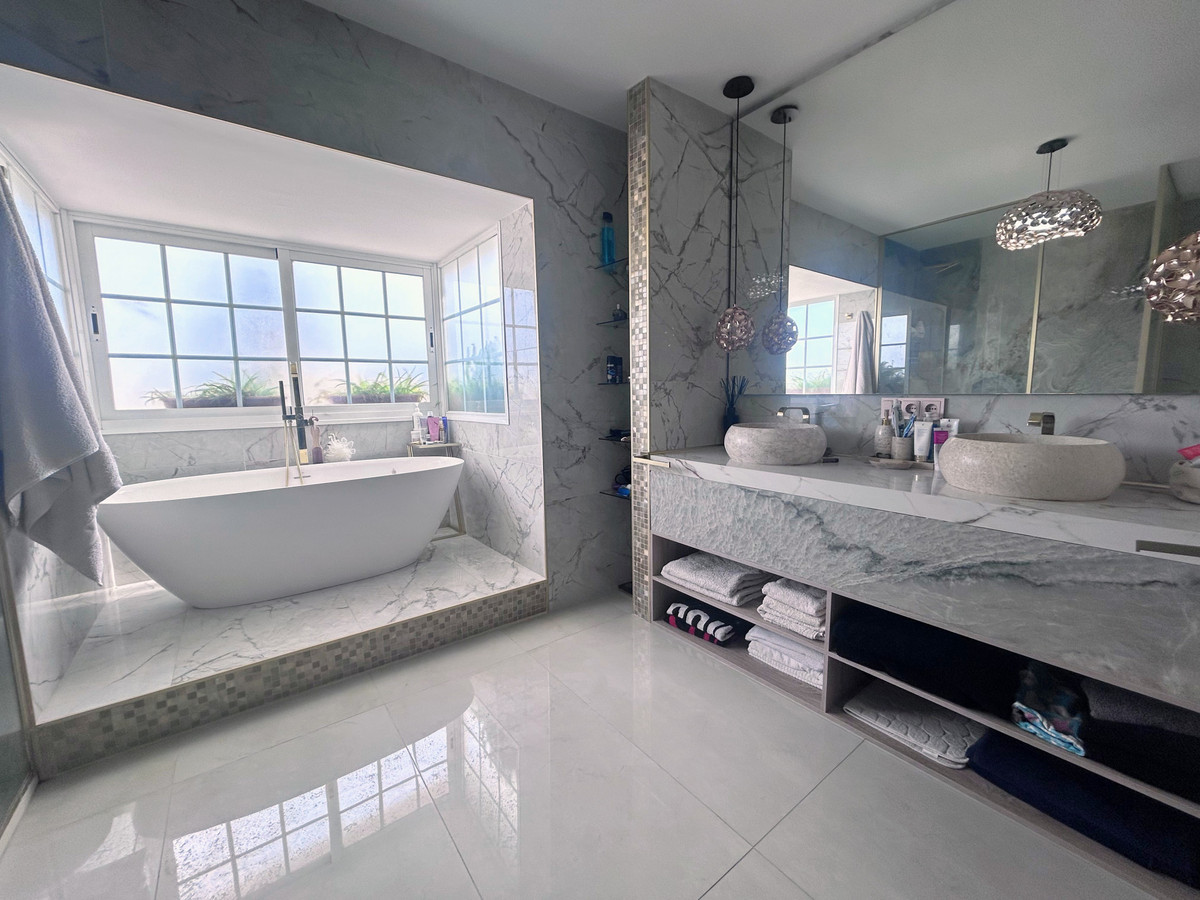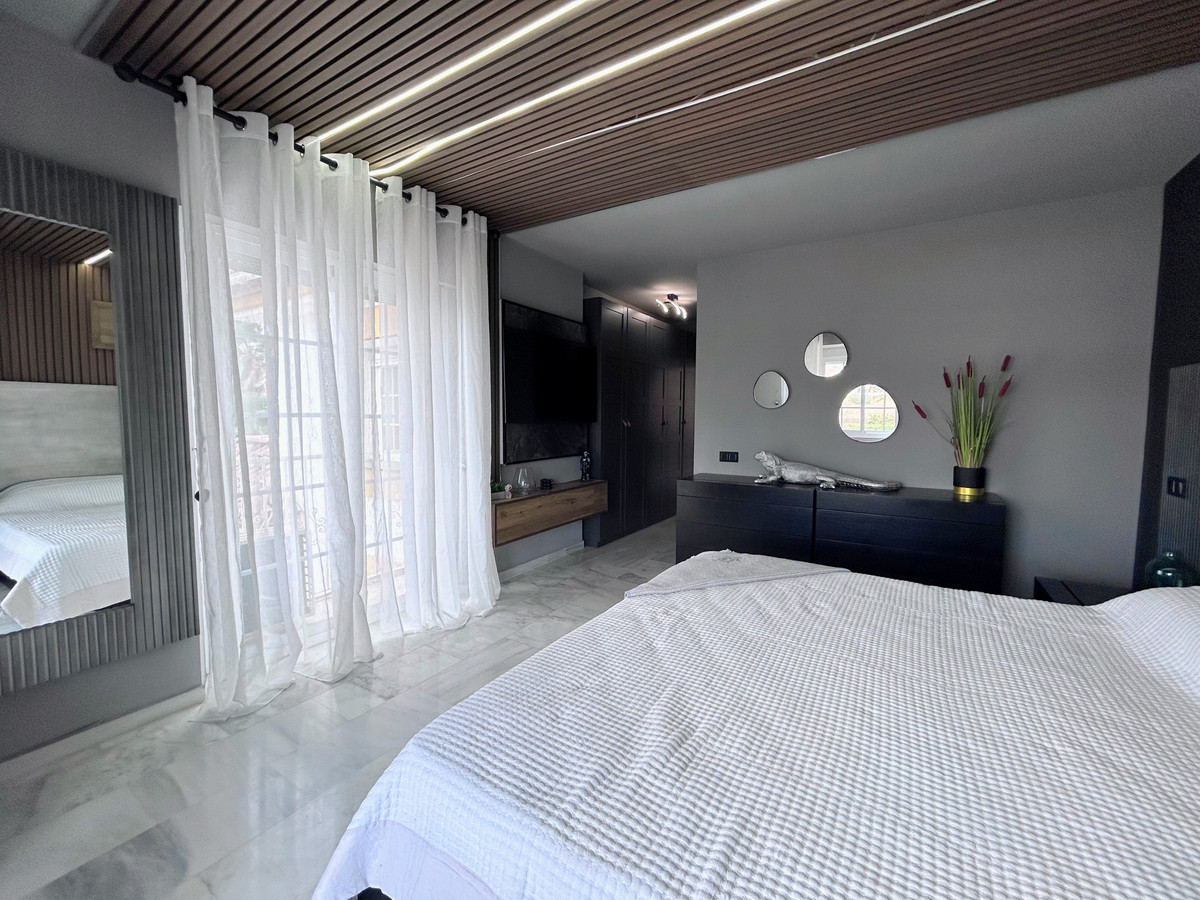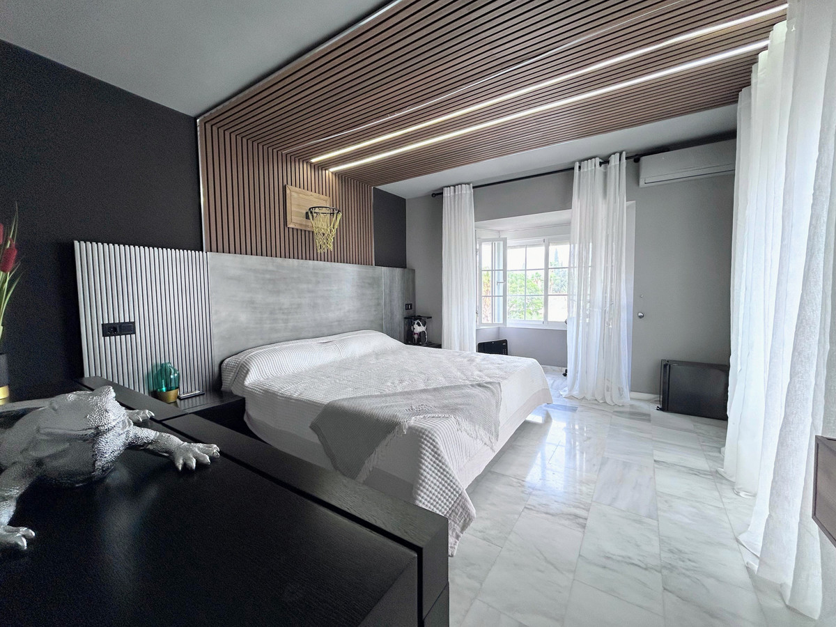 Deze lichte en ruime villa is gelegen in de rustige woonwijk Guadalmina Alta, op slechts 5 minuten van het strand en 8 minuten van het levendige Puerto Banús. De woning is veilig afgesloten en staat op een royaal perceel van 1.400 m² met een bebouwde oppervlakte van 623 m², wat een stijlvolle en comfortabele woonomgeving biedt. De villa, volledig gerenoveerd in 2022, combineert een fris, modern design met royale afmetingen. De belangrijkste woonruimtes zijn licht en uitnodigend, met een volledig uitgeruste moderne keuken die uitkijkt op de eet- en woonkamer, ideaal voor zowel het dagelijks leven als voor gasten. Met 7 slaapkamers en 7 badkamers is de woning perfect geschikt voor grote gezinnen of gasten die op zoek zijn naar privacy en comfort. Het buitenleven staat centraal in deze woning, met een groot privézwembad omgeven door volgroeide tuinen, de perfecte setting om te ontspannen of te genieten van de zonnige levensstijl aan de Costa del Sol. De kelder van 180 m² moet nog worden afgewerkt en biedt eindeloze mogelijkheden om een bioscoop, fitnessruimte, spa of entertainmentruimte naar uw smaak in te richten. Een zeldzame kans om eigenaar te worden van een instapklare villa met extra potentieel in een van de meest gewilde woonwijken van Marbella.