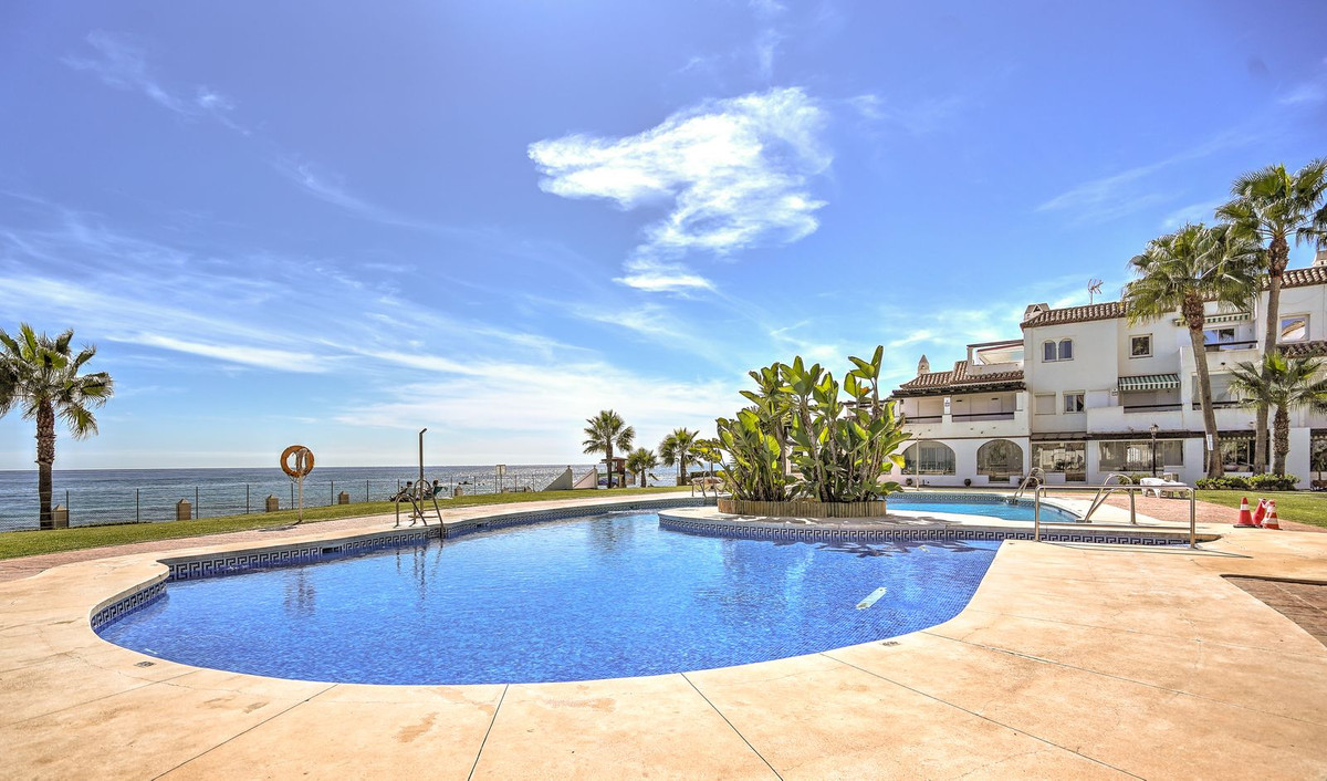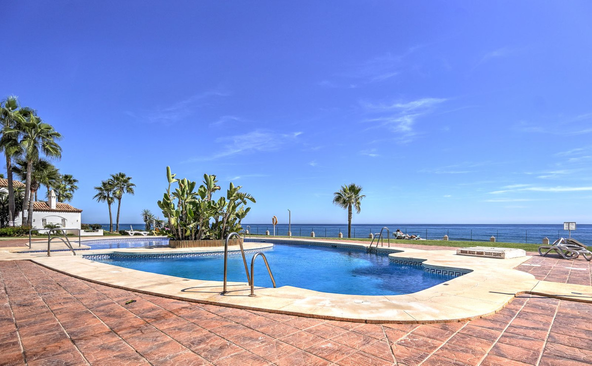 Appartement met 2 slaapkamers aan het strand te koop in Playa Lucera, Calahonda Een ruim appartement met twee slaapkamers en twee badkamers op de begane grond in het gewilde strandcomplex Playa Lucera, Calahonda. Perfect gelegen met directe toegang tot de boulevard en een chiringuito/strandbar direct voor de deur, staat deze woning in het teken van wonen aan zee. De beveiligde community biedt een zwembad, weelderige tuinen en gemeenschappelijke parkeergelegenheid, allemaal op loopafstand van winkels, restaurants en voorzieningen. Binnen is het appartement zorgvuldig gerenoveerd en beschikt het over een onlangs gerenoveerde keuken met een doorgeefluik naar de eetkamer. De lichte woonkamer is voorzien van een open haard en moderne openslaande deuren die de leefruimte volledig naar het terras uitbreiden. De hoofdslaapkamer heeft een eigen toegang tot het terras, elektrische rolluiken en een gerenoveerde ensuite badkamer. Een tweede slaapkamer met tweepersoonsbed en een stijlvol gerenoveerde badkamer met ligbad maken het interieur compleet. Het hoogtepunt van deze woning is het grote privéterras, perfect om buiten te eten, te zonnen of te ontspannen. Met directe toegang tot de aangelegde gemeenschappelijke tuinen en op slechts een steenworp afstand van het strand, is het ideaal voor zowel vakantiehuizen als permanente bewoning. Extra voorzieningen zijn onder andere marmeren vloeren, airconditioning, dubbele beglazing en elektrische rolluiken voor extra comfort. Dit appartement is een zeldzame vondst in een van de meest gewilde kustgemeenschappen van Calahonda. Samenvatting: Toplocatie in Playa Lucera, complex aan het strand in Calahonda Directe toegang tot de boulevard en nabijgelegen chiringuito Ruim begane grond appartement met 2 slaapkamers en 2 badkamers Vernieuwde keuken met doorgeefluik naar eetgedeelte Lichte woonkamer met open haard en openslaande deuren over de gehele breedte Groot privéterras met toegang tot de tuin en elektrische zonwering Hoofdslaapkamer met toegang tot het terras en gerenoveerde badkamer Gemeenschappelijk zwembad, aangelegde tuinen, afgesloten ingang en parkeergelegenheid