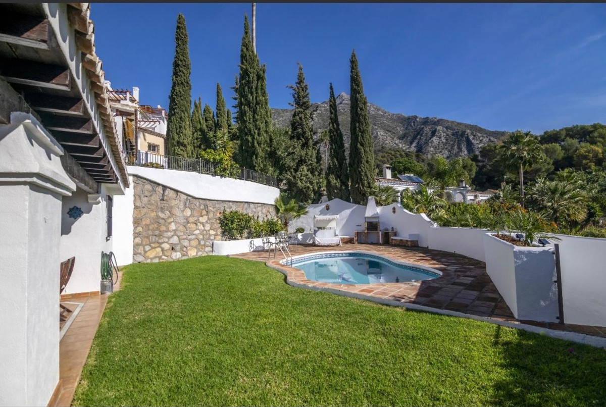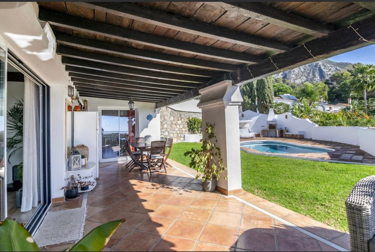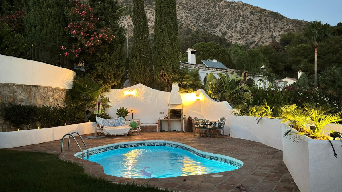 Gelegen in de fantastische omgeving van Cerros del Lago, aan de Istan-weg. Deze spectaculaire vrijstaande villa combineert warmte en comfort in een bevoorrechte omgeving, omringd door de natuurlijke schoonheid van de bergen en een panoramisch uitzicht. Gebouwd op een perceel van 494 m², is de woning gelijkvloers en beschikt over een bebouwde oppervlakte van 204 m² en 2 privéterrassen, perfect om te genieten van het buitenleven en het open panoramische uitzicht op het Istan-meer, de bergen tot aan de Middellandse Zee. Een charmante tuin met privézwembad. De villa beschikt over 4 ruime slaapkamers en 4 badkamers, waarvan 3 en-suite, en biedt privacy en comfort voor het hele gezin of gasten. De woonruimte bestaat uit een gezellige woonkamer met open haard, een eethoek en diverse terrassen, zowel overdekt als onoverdekt, ideaal om te ontspannen of gasten te ontvangen. De accommodatie verkeert in uitstekende staat, is volledig gemeubileerd en voorzien van een volledig ingerichte keuken, een wasruimte en een gastentoilet. Extra voorzieningen zorgen voor maximaal comfort en veiligheid: individuele airconditioning, dubbele beglazing, inbouwkasten, internet, alarmsysteem en beveiligde toegang. Voor optimaal buitenplezier beschikt de accommodatie over een privétuin met een barbecueplek, omgeven door een ongeëvenaard uitzicht op het landschap en de omliggende natuur. Huisdieren zijn ook toegestaan. De locatie is een andere grote troef, want het ligt dicht bij alle essentiële voorzieningen, recreatiegebieden, restaurants, winkels, scholen en golfbanen. Het ligt ook dicht bij de beroemde jachthaven van Puerto Banús en de stranden langs de Costa del Sol. Parkeren op straat is mogelijk naast de woning. Deze villa biedt een uitzonderlijke kans voor wie op zoek is naar kwaliteit van leven in een natuurlijke en rustige omgeving, maar toch dicht bij alle voorzieningen en voorzieningen.