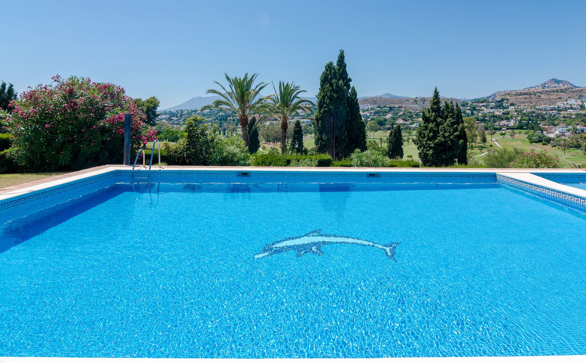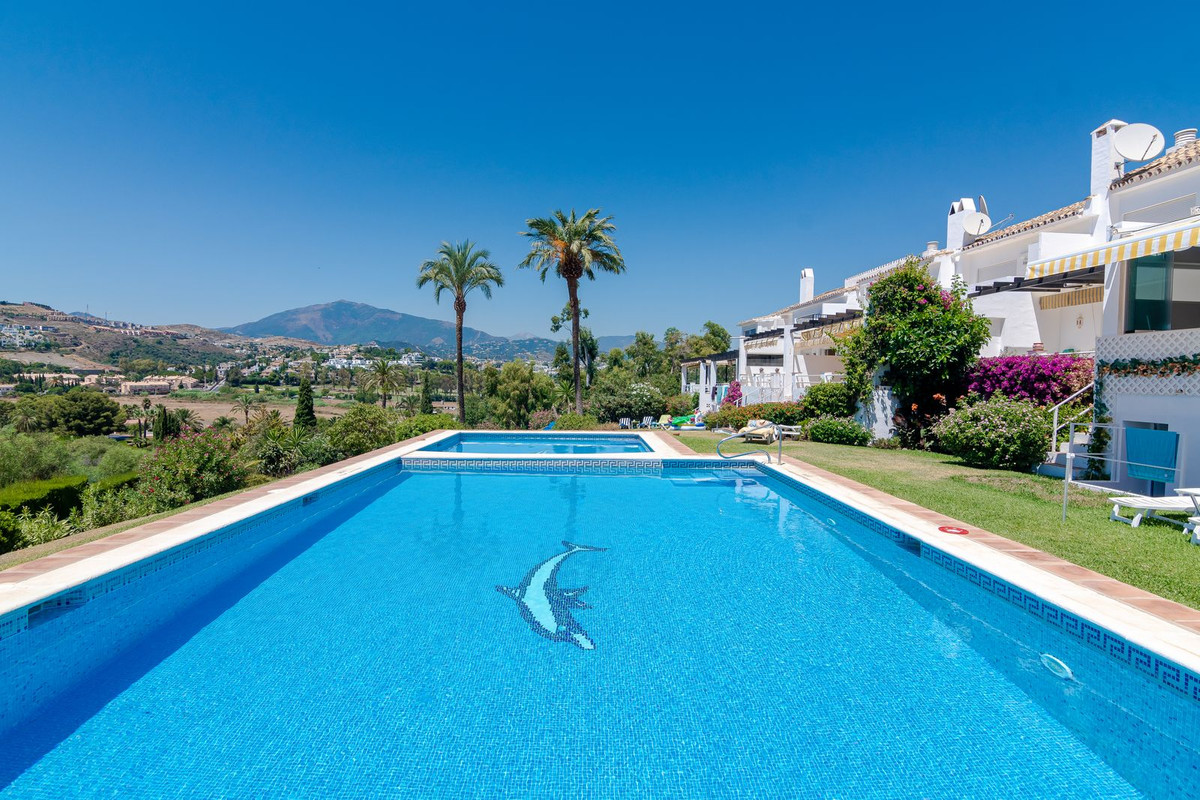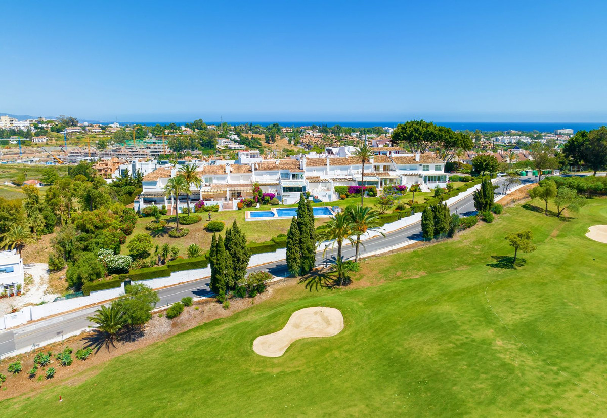Exclusieve aanbieding Schitterend gelegen herenhuis aan de golfbaan met een adembenemend panoramisch uitzicht op de golfbaan El Paraiso, de zee en het Monte Mayor-gebergte. Het pand is op het westen gericht en maakt deel uit van een exclusieve gemeenschap van 12 herenhuizen aan de grens van de golfbaan El Parasio. Het is onderdeel van een gebied dat herhaaldelijk is verkozen tot een van de meest gewilde woonlocaties aan de Costa del Sol. Het huis met zijn witte Andalusische gevel is verdeeld over twee verdiepingen met binnen- en buitenterrassen die uitkijken over de hele golfbaan. Een prachtige halfomheinde tuin ligt midden in de onberispelijke tropische tuinen van de bewoners. Vanuit de entree leidt een hal naar een klassieke keuken met wit timmerwerk, moderne apparatuur en granieten werkbladen. Een indrukwekkende open woon-/eetkamer is klassiek ingericht met een ruime eethoek en een tv-hoek met twee banken vooraan en een originele Andalusische open haard. Aangrenzend aan de woonkamer bevindt zich een comfortabele gastenbadkamer met marmeren tegels van vloer tot plafond en een douche. Brede openslaande deuren vanuit de woonkamer bieden toegang tot een opmerkelijk, open eet- en ontspanningsterras met een adembenemend uitzicht op de greens van de golfbaan, de tropische palmentuinen en de bergen van Monte Mayor. Het zwembad en de tuinen worden gedeeld door slechts 12 bewoners, een werkelijk uniek kenmerk van dit type woning in een exclusieve gemeenschap. Het perfect onderhouden gemeenschappelijke terrein is bereikbaar via trappen vanaf het terras en is omgeven door prachtig ontwikkelde rozen- en bougainvilleastruiken en meerdere hoge tropische palmen. Bij de ingang van het huis bevindt zich een ruim terras van 22 m2. Bovendien beschikt het huis over een eigen, afgesloten parkeerplaats met een veiligheidsrail, waarin de benodigde apparatuur is geïnstalleerd om het opladen van elektrische voertuigen mogelijk te maken. Een indrukwekkende marmeren trap geeft toegang tot de eerste verdieping, een uitzonderlijk ruime indrukwekkende hoofdslaapkamer met een prachtig panoramisch uitzicht over de El Paraiso Golf Course vanuit de slaapkamer en op de bergen van Monte Mayor en de kustlijn van Estepona. Een extra tweepersoons gastenslaapkamer met een binnenterras met uitzicht op de golfbaan biedt... Bovendien is er vanaf de overloop op de eerste verdieping een werkelijk schitterend panoramisch terras met uitzicht op zee. Het pand verkeert in goede staat en is van alle gemakken voorzien voor een comfortabele woning. Het heeft echter ook een groot potentieel als renovatieproject. Alle meubels en inrichting zijn bij de prijs inbegrepen. Alle decoratie is inbegrepen Airconditioning en elektrische Perzen geïnstalleerd El Paraiso Golf Hotel, The Ramos Restaurant, El Paraiso Golf Course en Clubhouse bieden een oase van voorzieningen op slechts 2 minuten lopen van de accommodatie. Op 5 minuten rijden van Bel Air, Cancelada en Guadalmina Alta, een restaurant, winkel- en winkelcentrum aan de overkant van Barrio de Cortes. De prachtige zandstranden van "Costalita" met hun eigen, speciaal aangelegde strandboulevard en de zeer exclusieve Villa Padierna Racquet Club liggen op slechts 10 minuten rijden. Deze woningen komen zelden op de markt. Een bezichtiging is ten zeerste aan te raden.