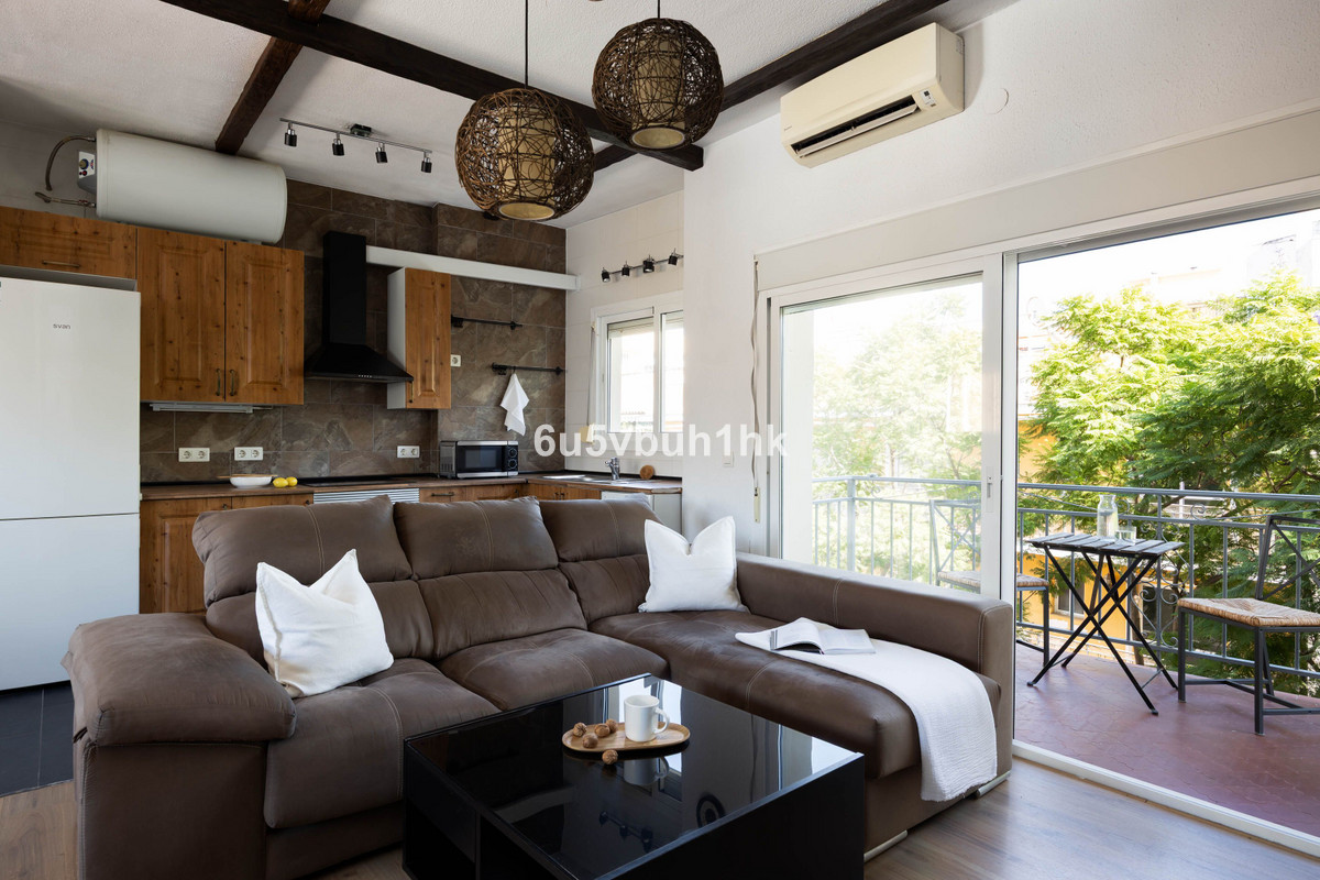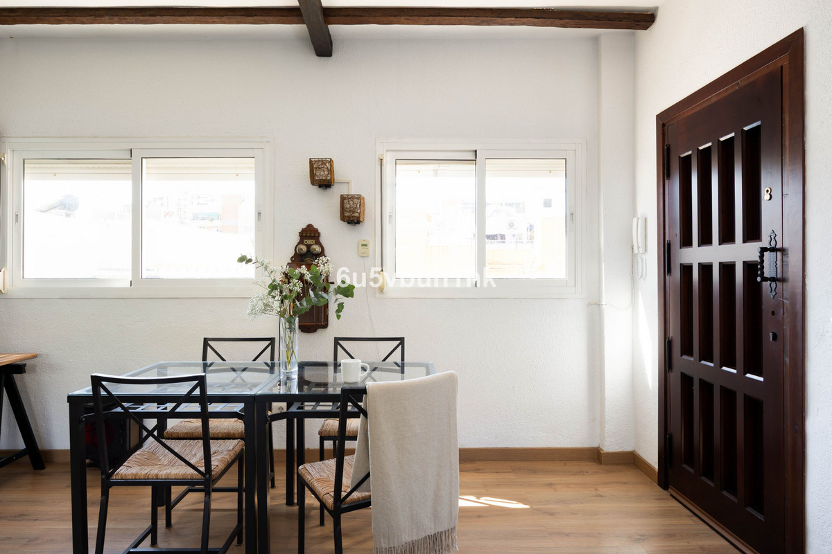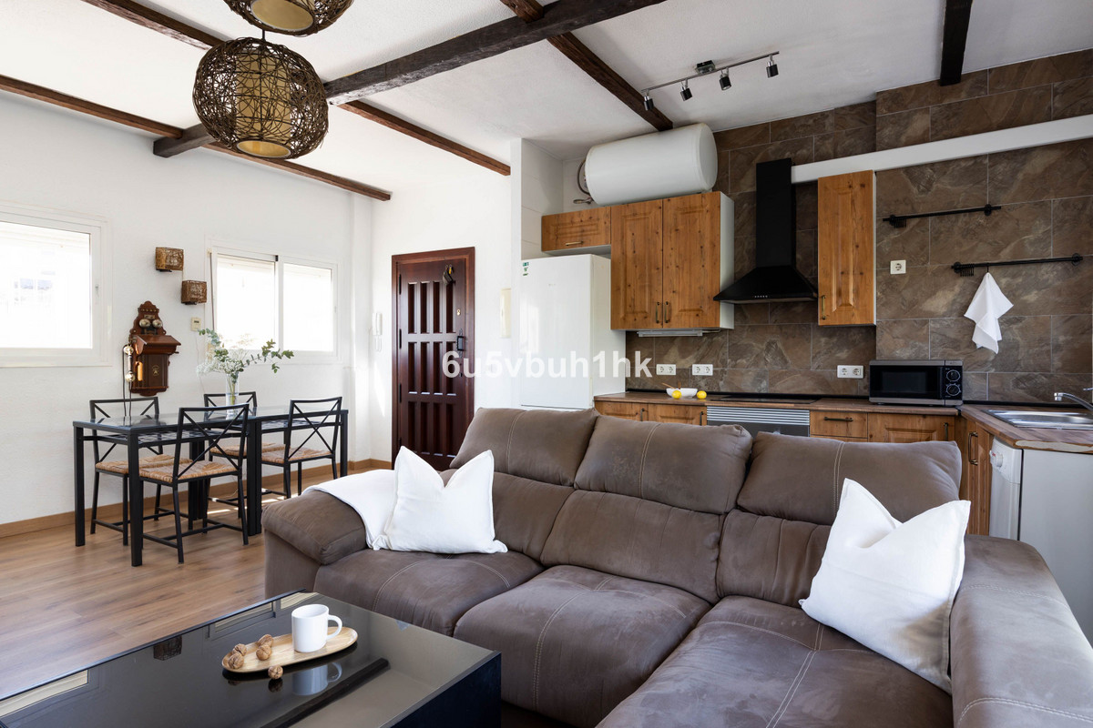 Dit charmante appartement bevindt zich op de derde verdieping en biedt een prachtig Andalusisch tintje met zichtbare houten balken en hoge plafonds. De open keuken en woonkamer creëren een lichte en luchtige sfeer met directe toegang tot het zonnige terras op het zuiden - perfect voor tuinmeubilair, dineren en ontspannen. De woning beschikt over twee ruime slaapkamers met inbouwkasten, waarvan één met een Frans balkon. Een stijlvolle badkamer maakt de woning compleet. Deze accommodatie beschikt tevens over een indrukwekkend dakterras met een schitterend uitzicht over Fuengirola en de omliggende bergen. Hier woont u vlakbij restaurants, winkels, het treinstation en het strand: alles wat u nodig heeft om optimaal te genieten van het leven aan de Costa del Sol! Voor meer informatie of een bezichtiging kunt u contact met ons opnemen.