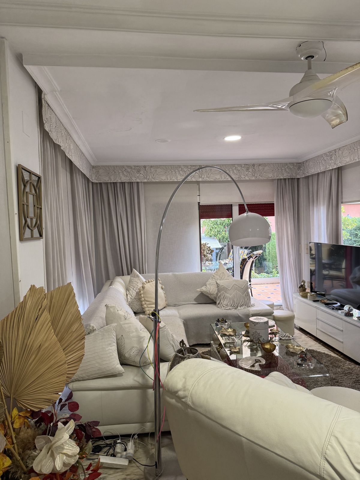 EEN ECHT JUWEEL IN HET HART VAN BENÁLMADENA met gedeeltelijk uitzicht op zee: een vier verdiepingen tellende twee-onder-een-kapwoning met privélift (!) in een rustige en prachtig onderhouden woonwijk. De woning biedt alles wat u nodig heeft om te genieten van uw leven aan de Costa del Sol. Op de begane grond vindt u een mooie woonkamer met eethoek en toegang tot een ruim terras en een tuin, een volledig ingerichte keuken en een toilet. Beneden vindt u nog een woonkamer, twee slaapkamers met eigen badkamers en twee was-/bergruimtes. Boven de begane grond bevinden zich nog twee slaapkamers met badkamers en elk een terras. Vanuit een grotere slaapkamer heeft u gedeeltelijk uitzicht op de Middellandse Zee. Op de bovenste verdieping bevinden zich een ruimte die als kantoor en fitnessruimte wordt gebruikt. Vanaf de woning is het minder dan 1500 meter naar de zee. Benalmádena is een goed verbonden stad met winkels, restaurants en alle voorzieningen die je nodig hebt om aan de kust te wonen. Daarnaast zijn er vele bezienswaardigheden, van het Castillo Bil Bil en de Puerto Marina aan zee tot het uitkijkpunt in de bergen, dat je met de kabelbaan kunt bereiken, aangezien het bijna 800 meter boven de zeespiegel ligt. Mis deze unieke kans niet, boek uw bezoek en vind de beste plek om te wonen aan de Kust van de Zon