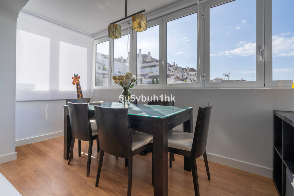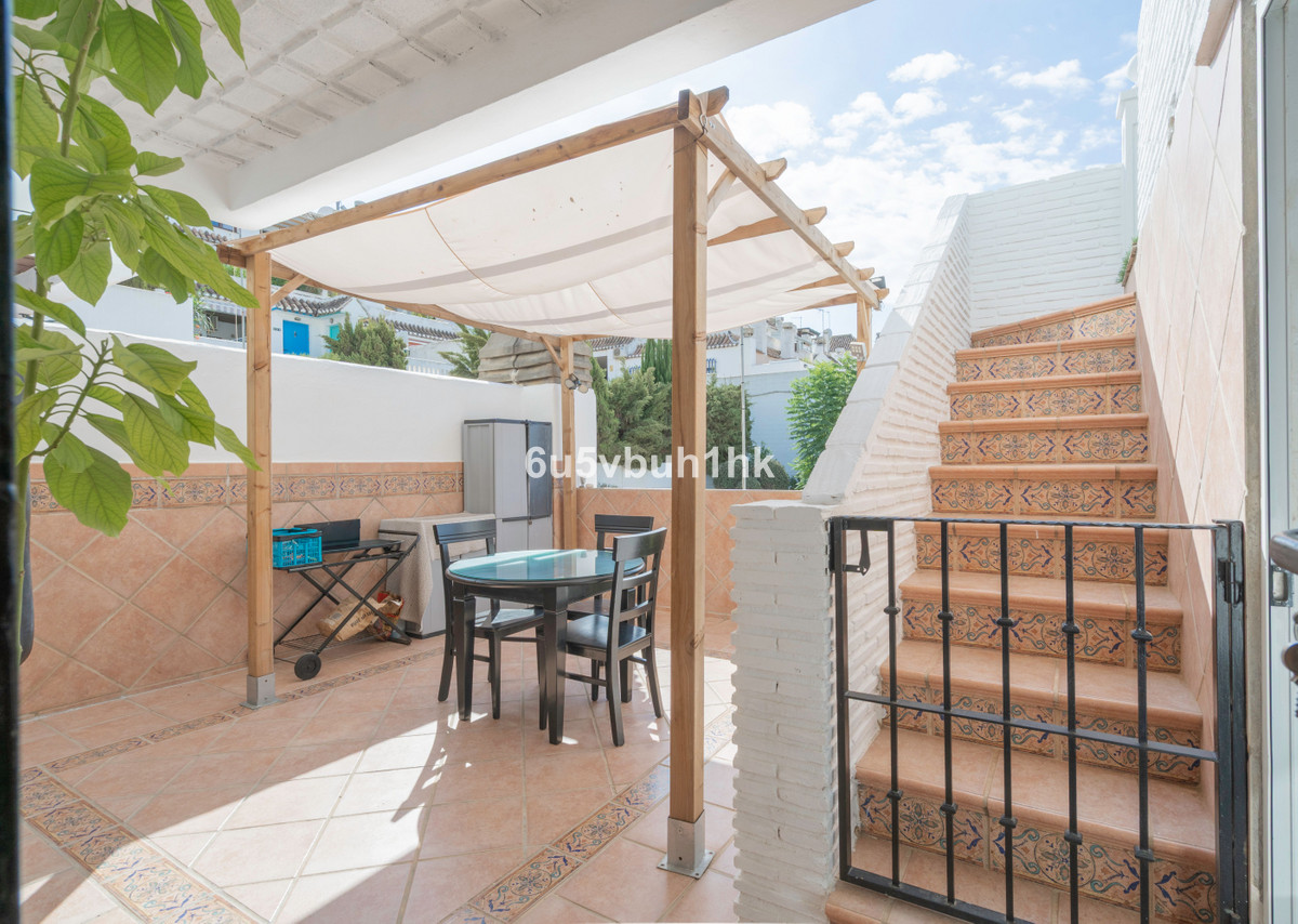 Ontdek deze prachtig gerenoveerde woning met twee verdiepingen in de rustige en pittoreske urbanisatie Pueblo Mijitas in Mijas Golf. Met een totale bebouwde oppervlakte van 117 m², waarvan 91 m² binnenruimte en de rest verdeeld over twee prachtige terrassen, onderscheidt deze woning zich door zijn smaakvolle ontwerp en hoogwaardige afwerking. Geniet van het gemak van directe toegang vanaf de straat, zonder trappen te hoeven beklimmen. Binnen biedt de woning twee ruime slaapkamers, een complete badkamer en een gastentoilet. De open keuken en woonkamer zijn stijlvol gerenoveerd en bieden toegang tot zonnige terrassen, perfect om te ontspannen of gasten te ontvangen. De gemeenschap beschikt over een prachtig zwembad en goed onderhouden tuinen. Dit is een ideale woning voor permanente bewoning, een vakantiehuis of een uitstekende investering voor verhuur aan de Costa del Sol.