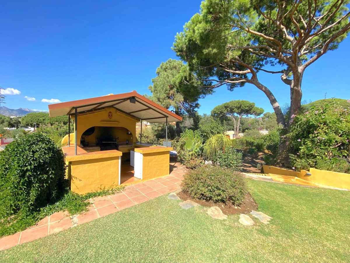 Elegante vrijstaande villa gelegen in een van Marbella's meest exclusieve woonwijken, tussen El Rosario en Las Chapas — op slechts 900 meter van het strand en op loopafstand van het prestigieuze English International College. Omgeven door rust en privacy biedt deze woning de perfecte balans tussen gezinscomfort, ruimte en een onovertroffen locatie. De villa is gelijkvloers en beschikt over vijf ruime slaapkamers en drie complete badkamers, een volledig ingerichte keuken en een lichte woonkamer met een gezellige open haard. Ideaal om te ontspannen of om familie en vrienden te vermaken. Buiten bevindt zich het pand op een royaal perceel van 2.300 m² met prachtig aangelegde tuinen, een groot privézwembad, een schaduwrijke parkeerplaats, een charmante moestuin en een speeltuin met schommels. Kortom, de perfecte omgeving voor gezinnen om te genieten van de mediterrane levensstijl. Dankzij de uitstekende ligging en de rustige omgeving biedt de villa maximale privacy en comfort, terwijl u toch op slechts enkele minuten afstand van het strand, internationale topscholen, golfbanen en alle essentiële voorzieningen ligt. Een unieke kans om een charmante en karaktervolle familievilla te verwerven, die het beste van het buitenleven in Marbella combineert met comfort en gemak het hele jaar door.