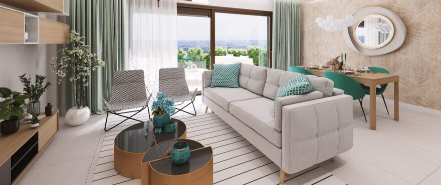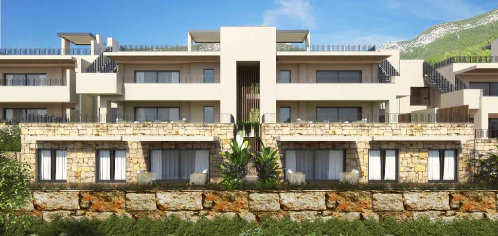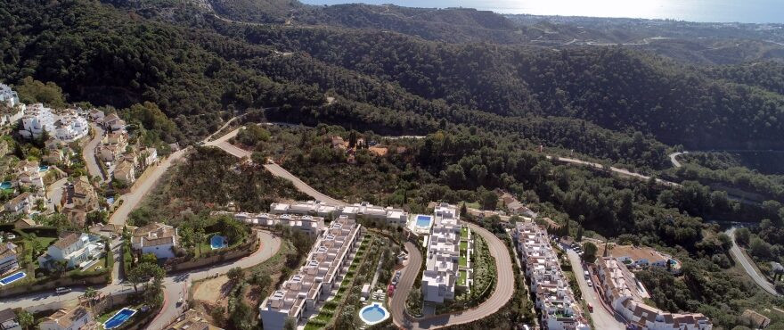 2 slaapkamers, 2 badkamers appartementen vanaf 350.000 euro 3 slaapkamers, 2 badkamers appartementen vanaf 430.000 euro 3 slaapkamers, 2 badkamers penthouses vanaf 515.000 euro Prijzen zijn exclusief 10% btw en inclusief garagebox Dit is het eerste project in verkoop, bestaande uit 32 exclusieve appartementen met de beste panoramische uitzichten op het hoogste deel van de ontwikkeling. Alle woningen hebben een vrij uitzicht met een zuidoostelijk aspect richting de baai van Marbella en Gibraltar. Het project omvat 4 blokken van 3 verdiepingen met woningen in eigentijdse "open" stijl maar met een rustieke uitstraling die opgaat in de natuurlijke omgeving. Appartementen met 2 en 3 slaapkamers en penthouses met een solarium, met grote terrassen, gemeenschappelijk zwembad en tuinen met autochtone planten.