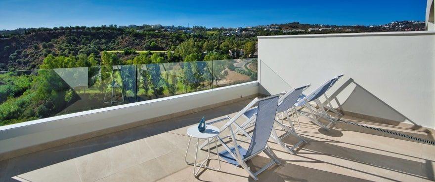 Dit is een unieke nieuwbouwwijk in La Cala Resort, met drie golfbanen, een 4* Hotel & Spa, tennisbanen, voetbalvelden en andere sportfaciliteiten. Schitterende, op het zuidwesten gelegen, moderne 3-slaapkamerwoningen met tuinen, grote dakterrassen en een parkeergarage. 209 m² bebouwd en 98 m² aan terrassen en een solarium. Voorzien van de modernste en meest hoogwaardige specificaties. Een afgesloten en privé complex met een zwembad en tuinen. NOG MAAR ENKELE TE KOOP vanaf € 559.000 (excl. 10% btw).