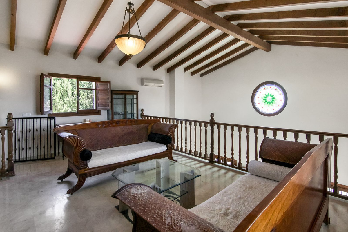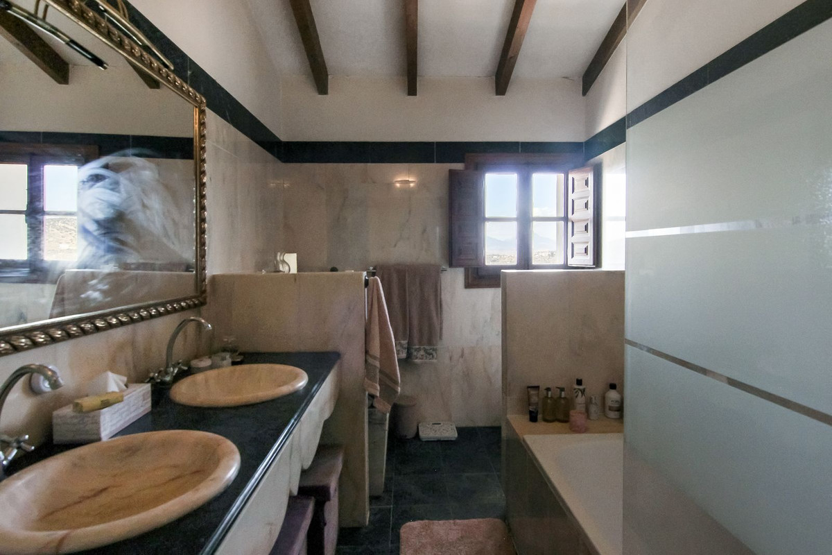 De wijk Las Lomas ligt in Alhaurín el Grande, provincie Malaga, Andalusië. Een prachtige locatie om te ontspannen en te genieten van het landschap en het uitzicht op de bergen. Als u van ruimte, natuur en rust houdt en op slechts een paar minuten van het centrum van Alhaurín el Grande, dan heeft deze woning alles: instapklaar, gezellig en rustiek, en vol karakter en potentie. U bevindt zich midden in de voorzieningen van Alhaurín el Grande en de wijk Coin. Slechts 30 minuten van Marbella, Fuengirola, het centrum van Malaga of de luchthaven. De woning is zeer goed bereikbaar. De finca met 3 slaapkamers en 2 badkamers ligt op de top van de berg. Vanuit bijna alle kamers en ruimtes heeft u een fantastisch uitzicht op Alhaurin el Granda, Coin en de verderop gelegen bergdorpjes. Bij de hoofdingang vindt u twee ruime slaapkamers met inbouwkasten en een badkamer aan de zijkant. Aan de voorzijde van de zeer ruime en open woonkamer vindt u een prachtige, rustieke aparte keuken. Vanuit de keuken heeft u toegang tot het terras met een fantastisch open uitzicht. De woonkamer is adembenemend, zeer ruim met een hoog plafond en een grote open haard. De rustieke stijl heeft prachtige houten kozijnen en binnenluiken, en biedt uitzicht op het platteland. Er is veel natuurlijk licht en toegang tot de Andalusische patio, vanwaar u kunt doorlopen naar het buitenterras. Er is ruimte en potentieel om een plunge pool te maken. Er zijn veel mogelijkheden voor dit idee. De derde hoofdslaapkamer met eigen badkamer en een lounge bevindt zich op de bovenverdieping en is in totaal 80 m² groot. Op de vide vindt u een privélounge/kantoor/studeerkamer en toegang tot uw slaapkamer. Deze ruimte is niet alleen een slaapkamer, het is een privéparadijs vol luxe. Ruime badkamer met ligbad en veel inbouwkasten. Tot slot komt u in uw hoofdslaapkamer/woonkamer en een balkon van 20 m² met wederom een fantastisch uitzicht. Het perceel is 11.749m2 groot en geheel omheind. De woning beschikt over een actueel Pre-AFO-rapport, en de nieuwe eigenaar kan desgewenst een AFO laten uitvoeren. De woning heeft 11 zonnepanelen, die zorgen voor warm water en elektriciteit (de laatste elektriciteitsrekening was ongeveer € 37 per maand). Er is een waterput, maar deze is niet aangesloten op het stadswater.