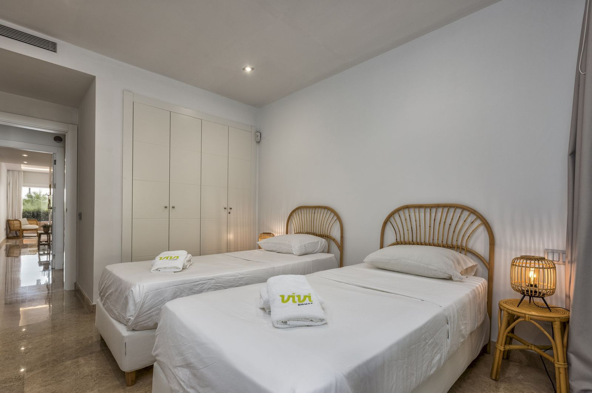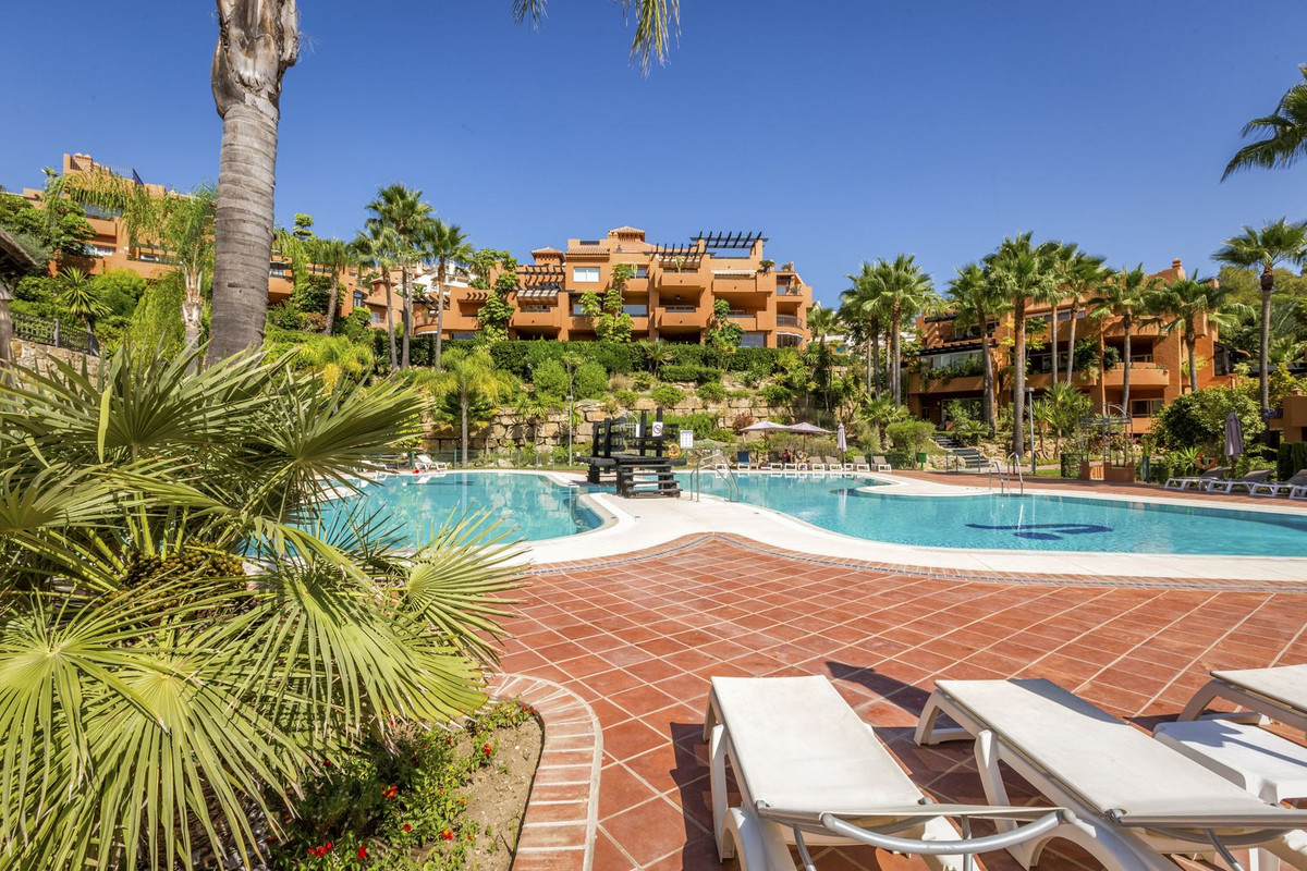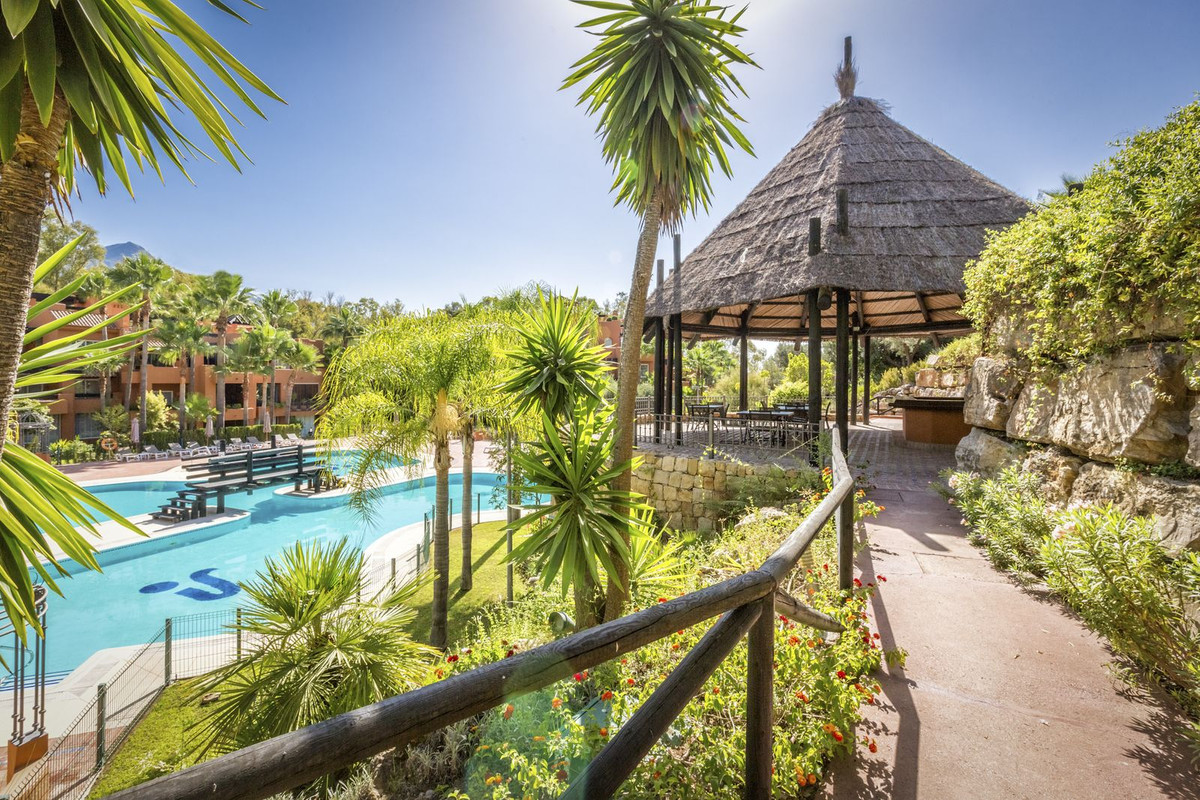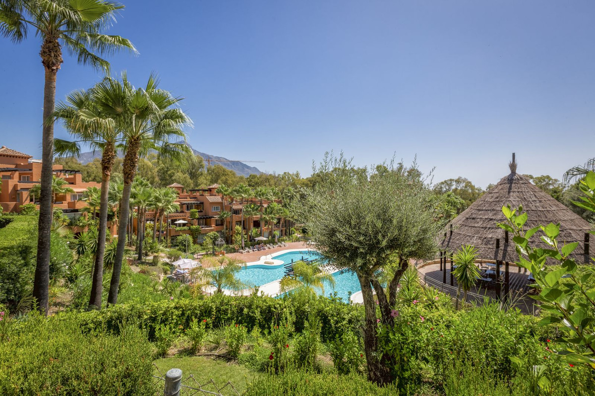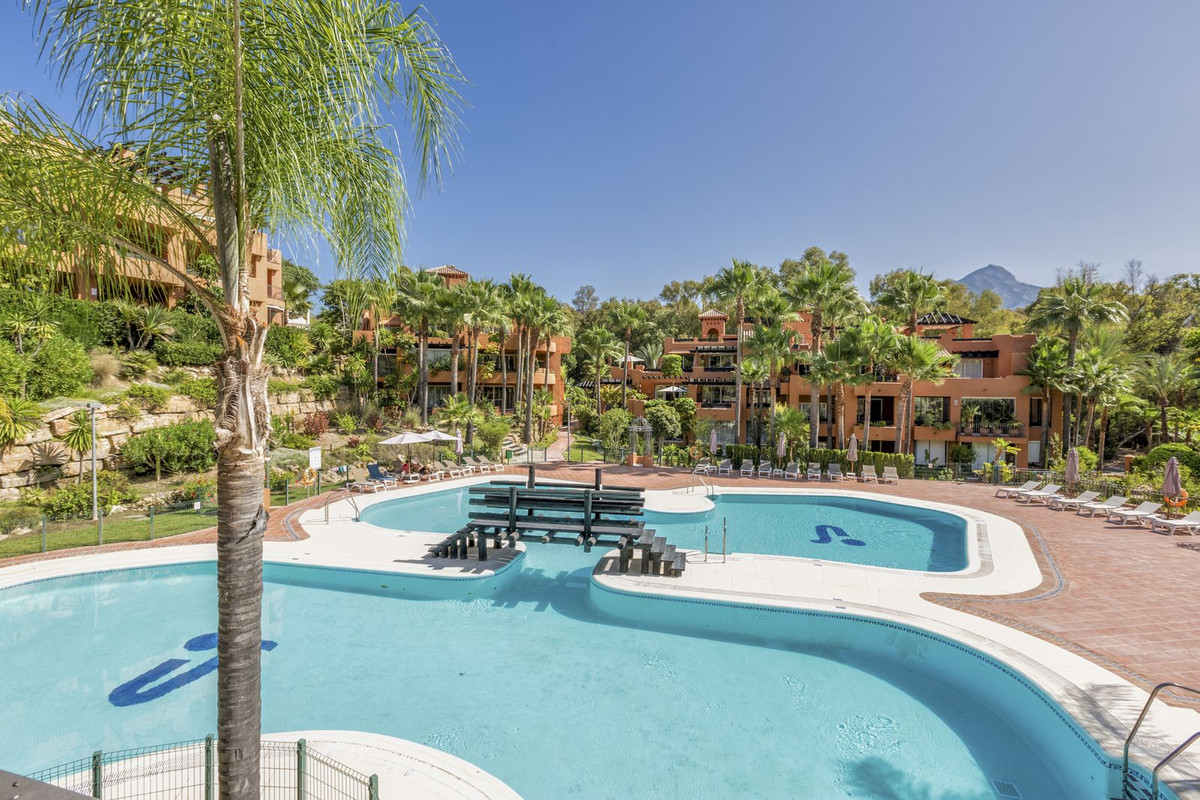 Nueva Andalucia – Begane grond met 2 slaapkamers, uitzicht op het zwembad en STR-licentie Dit appartement op de begane grond ligt in een van de groene gemeenschappen van Nueva Andalucia met tropische tuinen, een meer en twee zwembaden. Het is op het zuidoosten gericht en biedt volop mogelijkheden om zowel binnen als buiten te leven. Binnen vindt u een lichte woonkamer met toegang tot een gedeeltelijk overdekt terras van 57 m², een luxe keuken en een aparte bijkeuken. Er zijn twee badkamers, waarvan één en-suite, en twee goede slaapkamers. Vanaf het privéterras kijkt u uit op het grote zwembad. Praktische extra's zijn onder andere een ondergrondse parkeerplaats en een berging. De locatie is gunstig: vlakbij de golfbaan, winkels, de zee en de stad. *Klaar voor kortetermijnverhuur* We verhuren het pand momenteel voor korte termijn. De toeristenvergunning is rond, het huis is ingericht voor gasten en de exploitatie kan worden overgedragen als de koper wil doorgaan. Belangrijkste feiten • Begane grond, zuidoost gericht • 2 slaapkamers, 2 badkamers, waarvan één en-suite • Terras van 57 m², gedeeltelijk overdekt, uitzicht op het zwembad • Volledig ingerichte keuken plus bijkeuken • Goed onderhouden gemeenschap met tropische tuinen, meer en twee zwembaden • Ondergrondse parkeerplaats en berging • Dichtbij golf, winkels, zee en stad