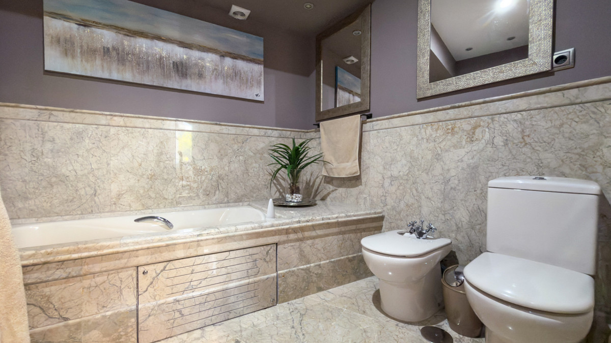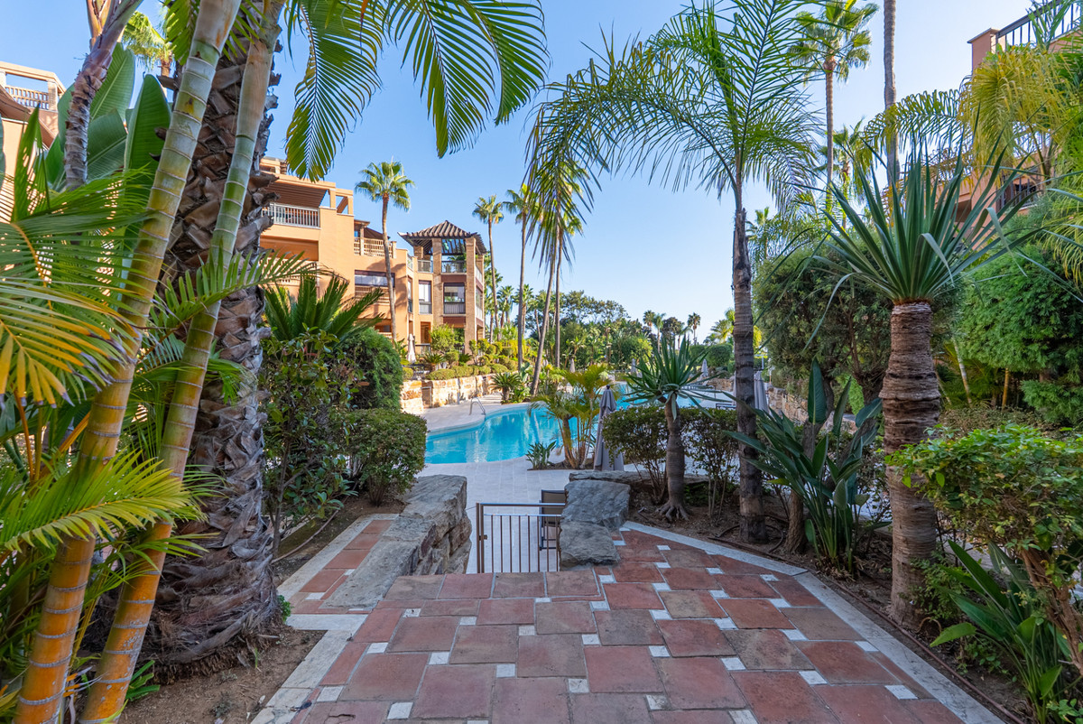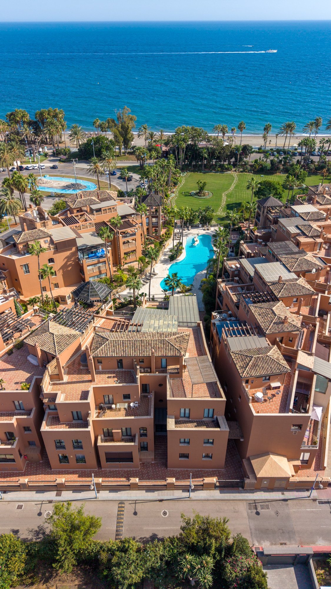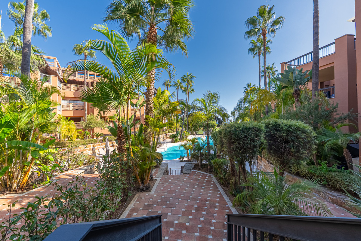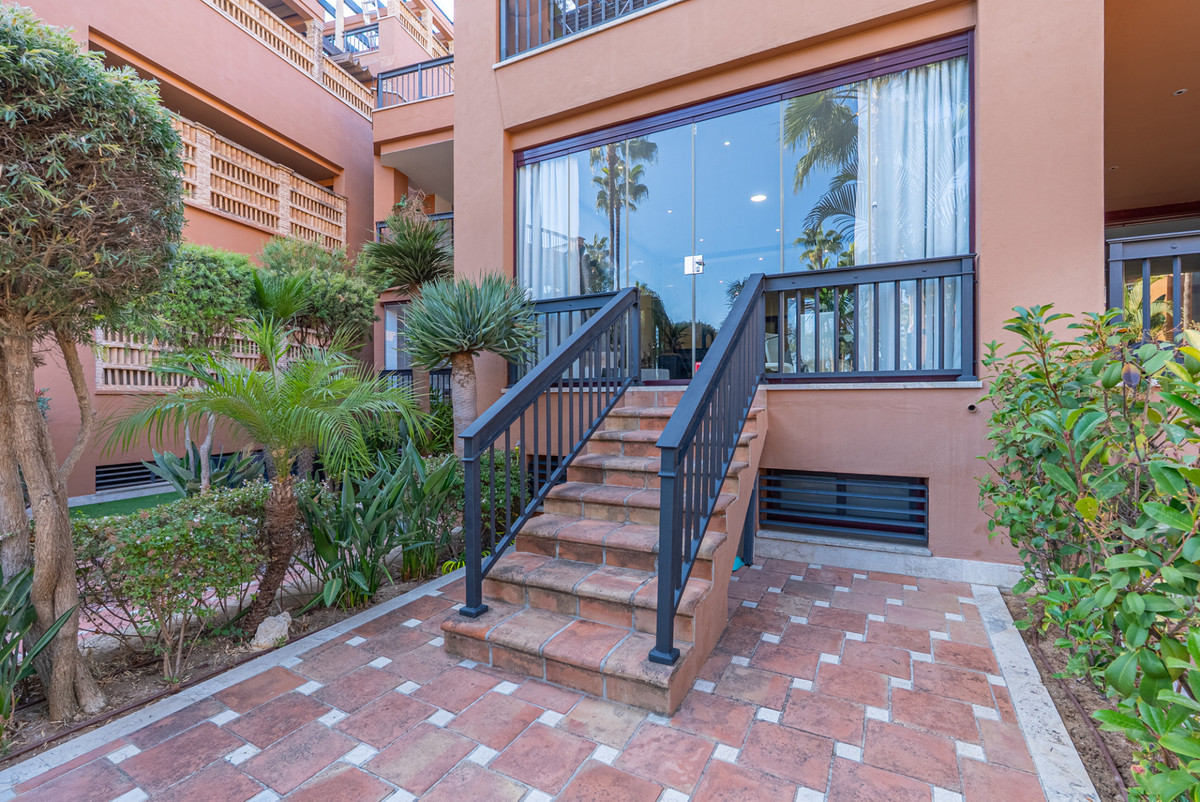 Gelegen in een van de meest gewilde woonwijken aan het strand van San Pedro de Alcántara, combineert deze prachtige duplex op de begane grond ruimte, comfort en een bevoorrechte levensstijl aan zee. Op slechts een steenworp afstand van de boulevard en op loopafstand van restaurants, winkels en alle voorzieningen, biedt het de ideale balans tussen rust en gemak. De woning heeft een woonoppervlakte van 293 m², verdeeld over twee verdiepingen, met 4 ruime slaapkamers en 3 badkamers. Het interieur is elegant en functioneel, met een lichte open woon- en eetkamer, een volledig ingerichte keuken en porseleinen stenen vloeren die een vleugje verfijning toevoegen. De master suite biedt directe toegang tot het terras en biedt gedeeltelijk uitzicht op zee. Het appartement beschikt over grote overdekte en onoverdekte terrassen met uitzicht op de tuinen en het zwembad – perfect om buiten te ontspannen of gasten te ontvangen. Het is volledig gemeubileerd en voorzien van vloerverwarming in de badkamers, airconditioning en glasvezelinternet. Gelegen in een beveiligde, afgesloten community met 24-uurs conciërge, genieten bewoners van toegang tot zoutwaterzwembaden, volgroeide tuinen en directe toegang tot het strand. De woning beschikt tevens over twee ondergrondse parkeerplaatsen. Een uitzonderlijk huis aan de Costa del Sol, ideaal als permanente woning, als gezinsvakantieverblijf of als waardevolle investering aan zee.