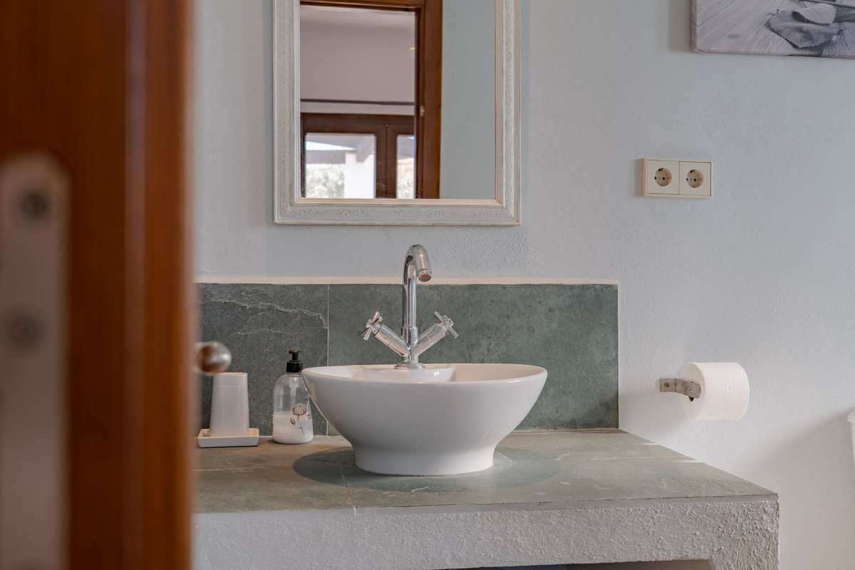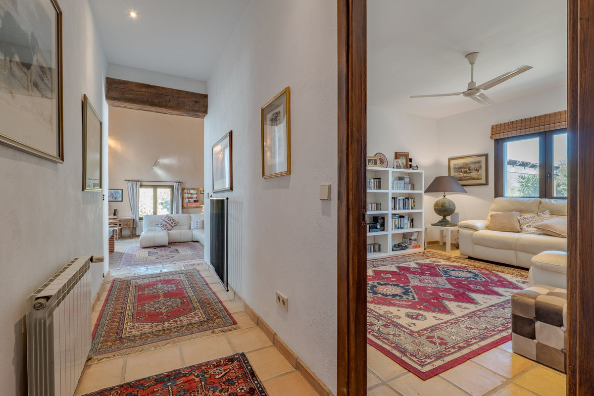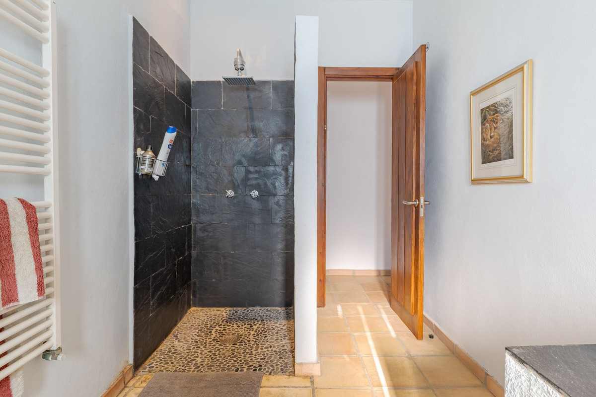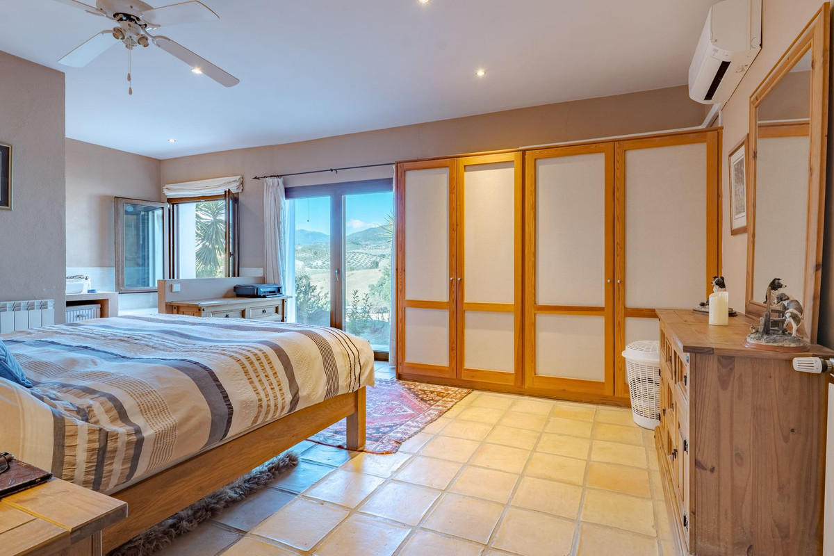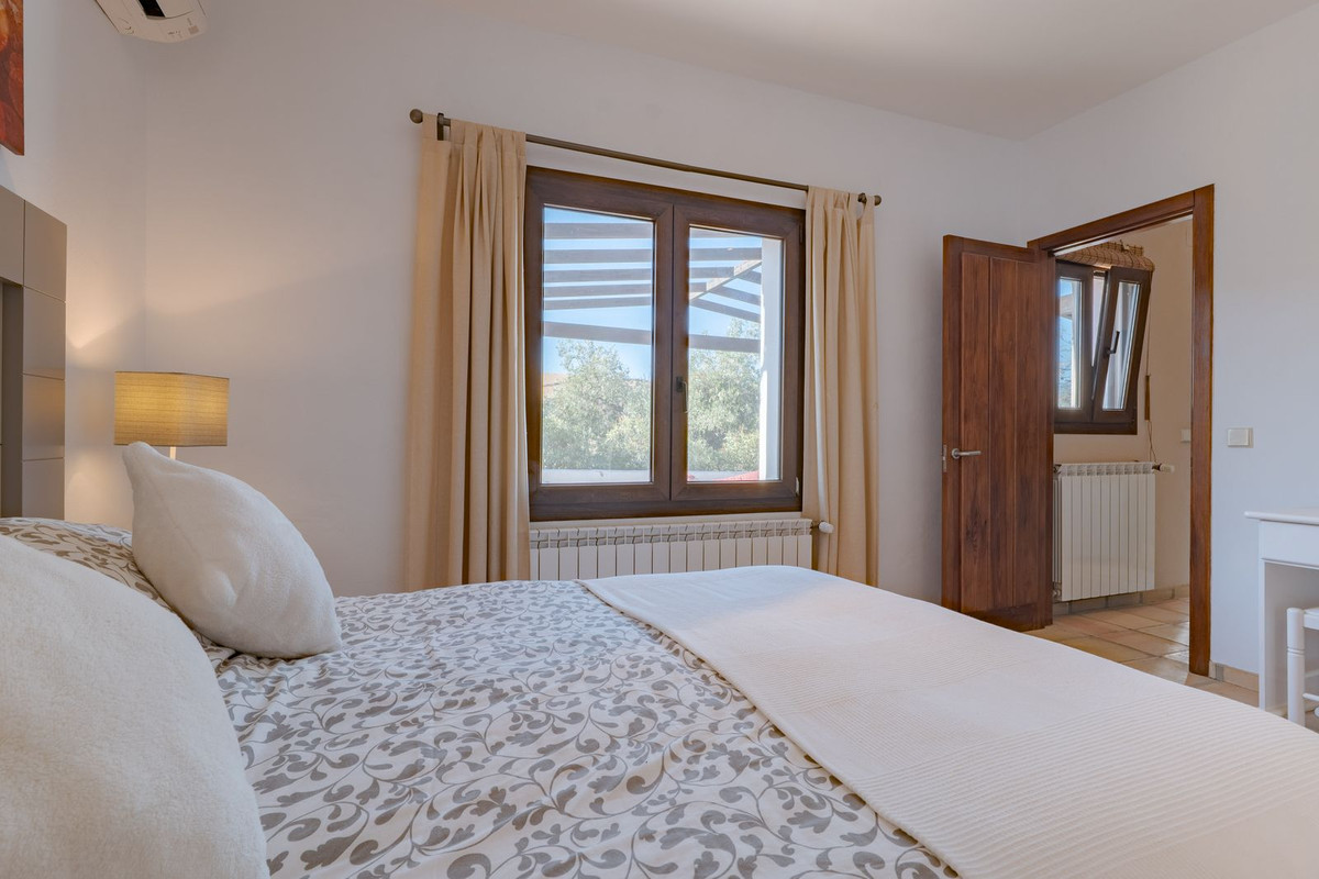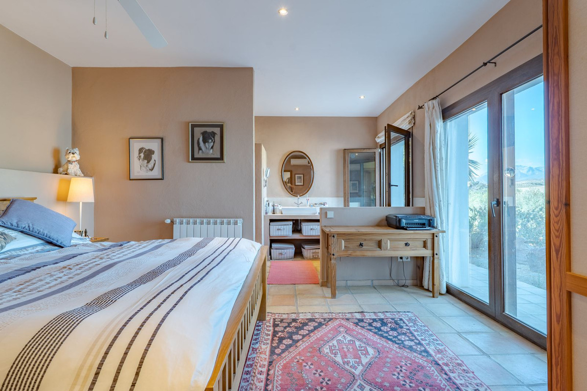Exclusieve aanbieding! Dit ruime en comfortabele landhuis (Cortijo) is perfect voor een groot gezin, als luxe vakantiehuis of als investering met aanzienlijke verhuurmogelijkheden dankzij het onafhankelijke gastenverblijf. De woning verkeert in uitstekende staat en combineert authentieke charme met modern comfort. De adembenemende open indeling van de woonkamer, eetkamer en keuken vormt het hart van het huis. Hoge plafonds en grote ramen: deze architectonische kenmerken zorgen de hele dag voor maximale lichtinval en accentueren het ruimtelijke gevoel. Geniet op koelere avonden van de warmte van de open haard, omringd door charmante terracotta vloeren en de prachtige Spaanse houten voordeur die de landelijke sfeer benadrukt. De keuken is van alle gemakken voorzien en loopt naadloos over in de woonkamer, perfect voor gezelligheid en entertainment. Achter de keuken bevindt zich een ruime keuken/bijkeuken en een gastentoilet. Vanuit de woonkamer opent u de deuren naar het overdekte hoofdterras. Dit wordt uw favoriete plek om te dineren en te genieten van het spectaculaire uitzicht op de glooiende bergen. Een kleine trap leidt naar een gang die naar het hoofdslaapkamergedeelte leidt. Deze kamers zijn ruim en voorzien van praktische inbouwkasten, die optimale opbergruimte bieden. Uniek aan deze finca is het volledig afsluitbare en onafhankelijke gastenverblijf. Het is toegankelijk via het hoofdgebouw, maar heeft ook een eigen ingang, waardoor het ideaal is voor verhuur of als privédomein voor gasten. Dit appartement beschikt over: * 2 ruime slaapkamers, elk met een eigen badkamer. * keuken/woonkamer * Een groot privéterras met fantastisch uitzicht. Deze gastenaccommodatie biedt een uitstekende mogelijkheid om extra inkomsten te genereren door middel van vakantieverhuur (B&B/Vakantiehuis). Licencia de Primera Ocupación (LPO) aanwezig. De woning is voorzien van alle moderne gemakken: Airconditioning en centrale verwarming. Aangesloten op het elektriciteitsnet en voorzien van zonnepanelen. Aangesloten op het openbare drinkwaternet. Er is een goede internetverbinding beschikbaar. Privézwembad en terras: de perfecte plek om af te koelen tijdens de warme zomermaanden, met een adembenemend uitzicht over de vallei. Buitenbar en barbecueplek: Gelegen bij het zwembad, ideaal voor het organiseren van feesten, barbecues en lange zomeravonden. De tuin is beplant met volwassen olijfbomen en verschillende fruitbomen. Er is privéparkeergelegenheid op het terrein. De toegangsweg is grotendeels geasfalteerd. Alleen de laatste 600 meter zijn goed onderhouden onverharde wegen. Slechts 15 minuten rijden naar de charmante dorpjes Alozaina en Casarabonela. De internationale luchthaven van Malaga ligt op 45 minuten rijden, zodat u snel en eenvoudig van en naar uw thuisbasis kunt reizen. Finca - Cortijo, Casarabonela, Costa del Sol. 7 slaapkamers, 4,5 badkamers, bebouwd 362 m², terras 150 m². Ligging: Landelijk, Dichtbij de stad. Oriëntatie: Oost, Zuidwest. Staat: Goed. Zwembad: Privé. Klimaatregeling: Airconditioning, Centrale verwarming, Open haard. Uitzicht: Bergen, Platteland, Panoramisch, Tuin. Kenmerken: Inbouwkasten, Privéterras, Gastenappartement, Berging, Ensuite badkamer, Dubbel glas. Meubilair: Optioneel. Keuken: volledig ingericht. Tuin: Privé. Parkeren: Privé. Nutsvoorzieningen: elektriciteit, drinkwater, gas, fotovoltaïsche zonnepanelen. Categorie: Wederverkoop.