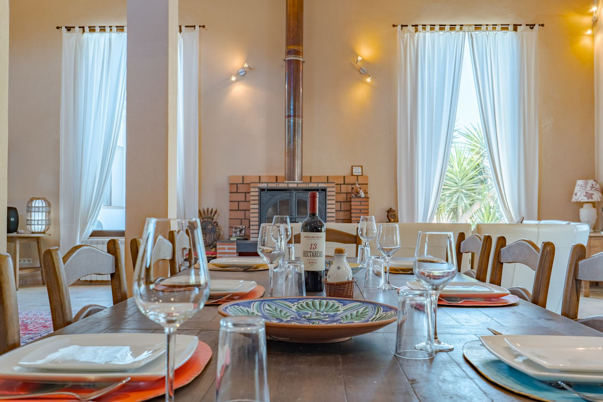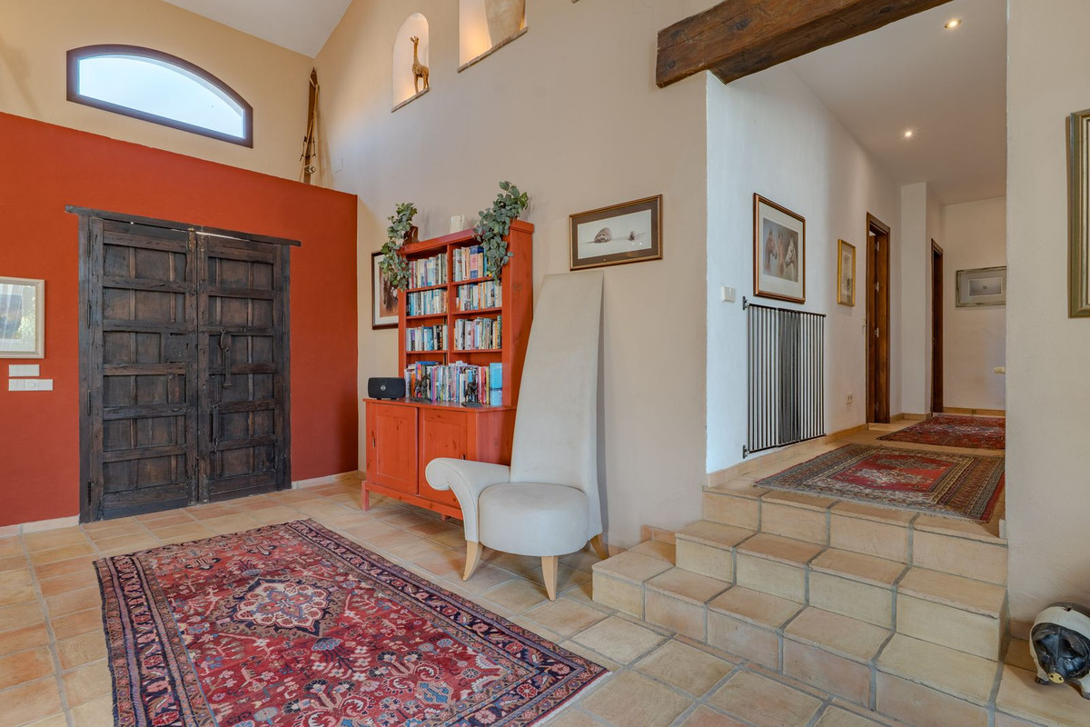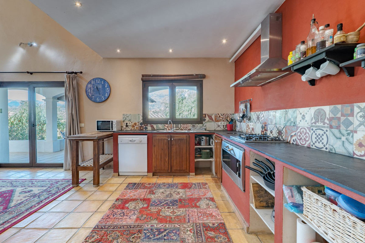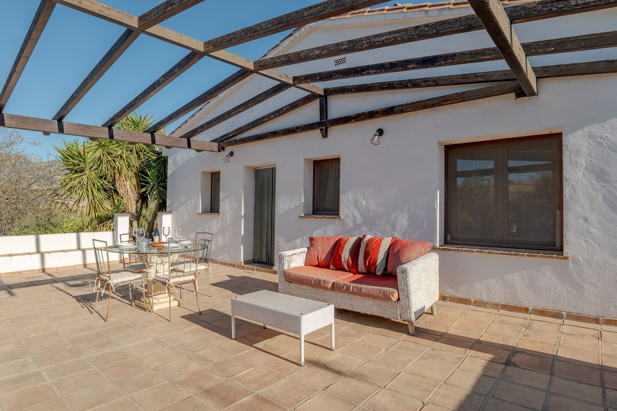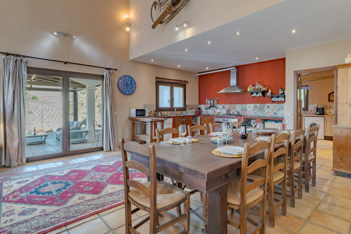 Exclusieve aanbieding! Dit ruime en comfortabele landhuis (Cortijo) is perfect voor een groot gezin, als luxe vakantiehuis of als investering met aanzienlijke verhuurmogelijkheden dankzij het onafhankelijke gastenverblijf. De woning verkeert in uitstekende staat en combineert authentieke charme met modern comfort. De adembenemende open indeling van de woonkamer, eetkamer en keuken vormt het hart van het huis. Hoge plafonds en grote ramen: deze architectonische kenmerken zorgen de hele dag voor maximale lichtinval en accentueren het ruimtelijke gevoel. Geniet op koelere avonden van de warmte van de open haard, omringd door charmante terracotta vloeren en de prachtige Spaanse houten voordeur die de landelijke sfeer benadrukt. De keuken is van alle gemakken voorzien en loopt naadloos over in de woonkamer, perfect voor gezelligheid en entertainment. Achter de keuken bevindt zich een ruime keuken/bijkeuken en een gastentoilet. Vanuit de woonkamer opent u de deuren naar het overdekte hoofdterras. Dit wordt uw favoriete plek om te dineren en te genieten van het spectaculaire uitzicht op de glooiende bergen. Een kleine trap leidt naar een gang die naar het hoofdslaapkamergedeelte leidt. Deze kamers zijn ruim en voorzien van praktische inbouwkasten, die optimale opbergruimte bieden. Uniek aan deze finca is het volledig afsluitbare en onafhankelijke gastenverblijf. Het is toegankelijk via het hoofdgebouw, maar heeft ook een eigen ingang, waardoor het ideaal is voor verhuur of als privédomein voor gasten. Dit appartement beschikt over: * 2 ruime slaapkamers, elk met een eigen badkamer. * keuken/woonkamer * Een groot privéterras met fantastisch uitzicht. Deze gastenaccommodatie biedt een uitstekende mogelijkheid om extra inkomsten te genereren door middel van vakantieverhuur (B&B/Vakantiehuis). Licencia de Primera Ocupación (LPO) aanwezig. De woning is voorzien van alle moderne gemakken: Airconditioning en centrale verwarming. Aangesloten op het elektriciteitsnet en voorzien van zonnepanelen. Aangesloten op het openbare drinkwaternet. Er is een goede internetverbinding beschikbaar. Privézwembad en terras: de perfecte plek om af te koelen tijdens de warme zomermaanden, met een adembenemend uitzicht over de vallei. Buitenbar en barbecueplek: Gelegen bij het zwembad, ideaal voor het organiseren van feesten, barbecues en lange zomeravonden. De tuin is beplant met volwassen olijfbomen en verschillende fruitbomen. Er is privéparkeergelegenheid op het terrein. De toegangsweg is grotendeels geasfalteerd. Alleen de laatste 600 meter zijn goed onderhouden onverharde wegen. Slechts 15 minuten rijden naar de charmante dorpjes Alozaina en Casarabonela. De internationale luchthaven van Malaga ligt op 45 minuten rijden, zodat u snel en eenvoudig van en naar uw thuisbasis kunt reizen. Finca - Cortijo, Casarabonela, Costa del Sol. 7 slaapkamers, 4,5 badkamers, bebouwd 362 m², terras 150 m². Ligging: Landelijk, Dichtbij de stad. Oriëntatie: Oost, Zuidwest. Staat: Goed. Zwembad: Privé. Klimaatregeling: Airconditioning, Centrale verwarming, Open haard. Uitzicht: Bergen, Platteland, Panoramisch, Tuin. Kenmerken: Inbouwkasten, Privéterras, Gastenappartement, Berging, Ensuite badkamer, Dubbel glas. Meubilair: Optioneel. Keuken: volledig ingericht. Tuin: Privé. Parkeren: Privé. Nutsvoorzieningen: elektriciteit, drinkwater, gas, fotovoltaïsche zonnepanelen. Categorie: Wederverkoop.