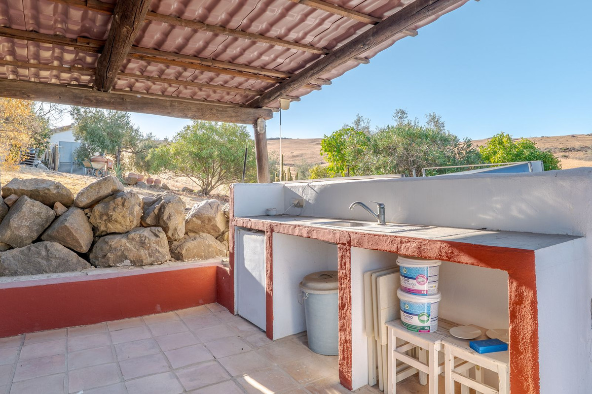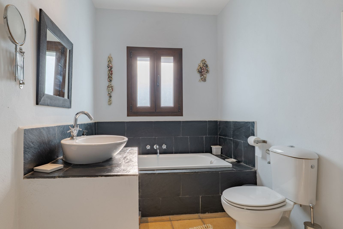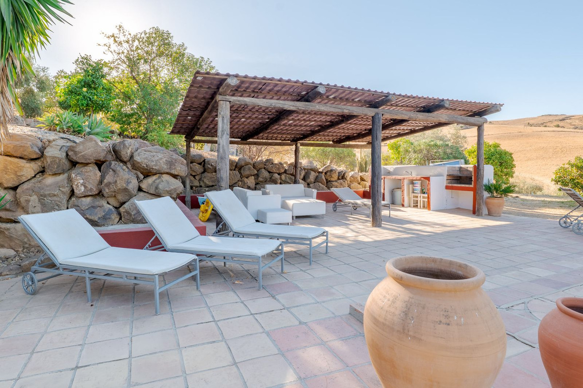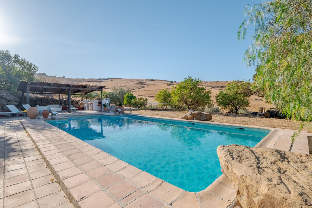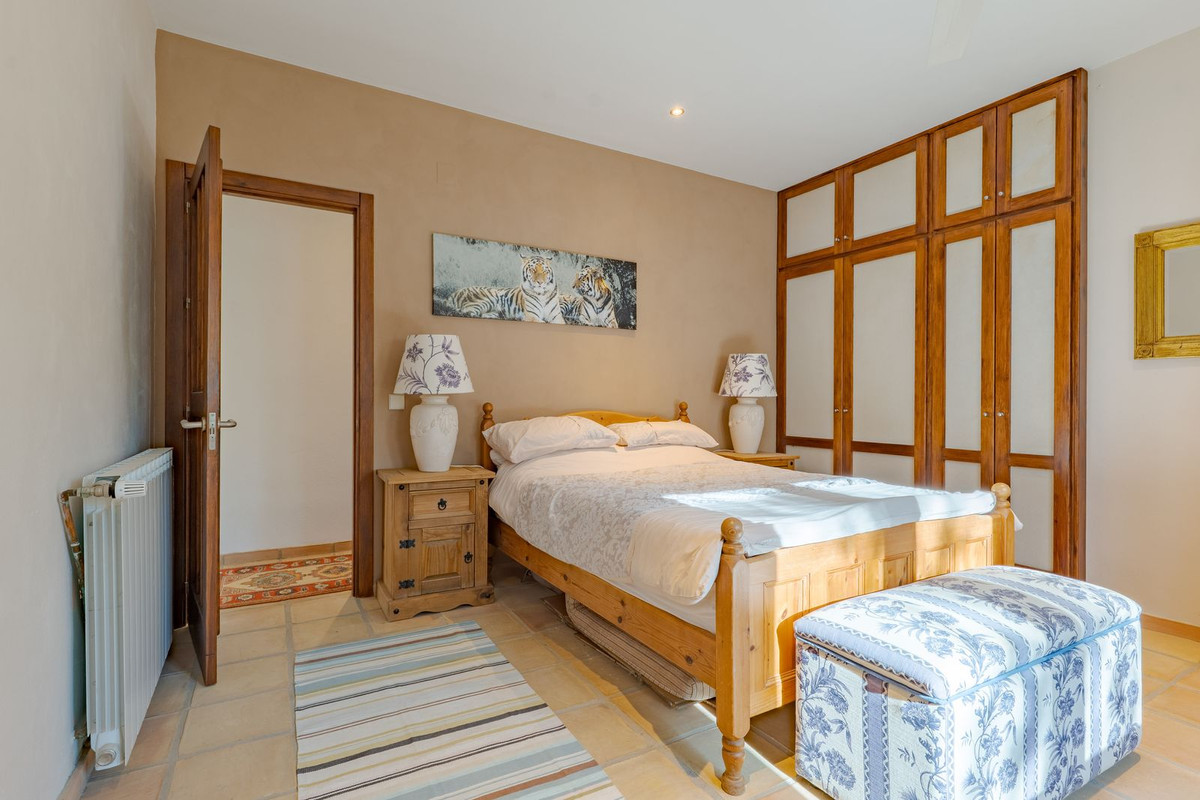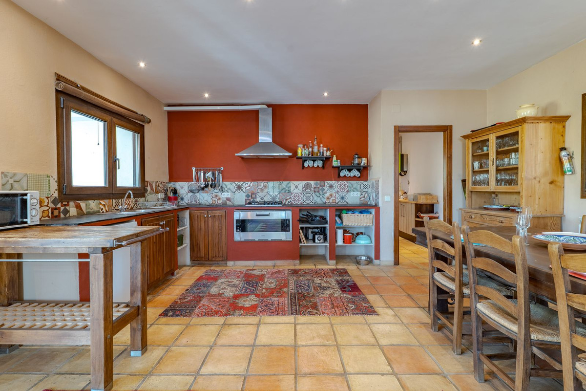 Exclusieve aanbieding! Dit ruime en comfortabele landhuis (Cortijo) is perfect voor een groot gezin, als luxe vakantiehuis of als investering met aanzienlijke verhuurmogelijkheden dankzij het onafhankelijke gastenverblijf. De woning verkeert in uitstekende staat en combineert authentieke charme met modern comfort. De adembenemende open indeling van de woonkamer, eetkamer en keuken vormt het hart van het huis. Hoge plafonds en grote ramen: deze architectonische kenmerken zorgen de hele dag voor maximale lichtinval en accentueren het ruimtelijke gevoel. Geniet op koelere avonden van de warmte van de open haard, omringd door charmante terracotta vloeren en de prachtige Spaanse houten voordeur die de landelijke sfeer benadrukt. De keuken is van alle gemakken voorzien en loopt naadloos over in de woonkamer, perfect voor gezelligheid en entertainment. Achter de keuken bevindt zich een ruime keuken/bijkeuken en een gastentoilet. Vanuit de woonkamer opent u de deuren naar het overdekte hoofdterras. Dit wordt uw favoriete plek om te dineren en te genieten van het spectaculaire uitzicht op de glooiende bergen. Een kleine trap leidt naar een gang die naar het hoofdslaapkamergedeelte leidt. Deze kamers zijn ruim en voorzien van praktische inbouwkasten, die optimale opbergruimte bieden. Uniek aan deze finca is het volledig afsluitbare en onafhankelijke gastenverblijf. Het is toegankelijk via het hoofdgebouw, maar heeft ook een eigen ingang, waardoor het ideaal is voor verhuur of als privédomein voor gasten. Dit appartement beschikt over: * 2 ruime slaapkamers, elk met een eigen badkamer. * keuken/woonkamer * Een groot privéterras met fantastisch uitzicht. Deze gastenaccommodatie biedt een uitstekende mogelijkheid om extra inkomsten te genereren door middel van vakantieverhuur (B&B/Vakantiehuis). Licencia de Primera Ocupación (LPO) aanwezig. De woning is voorzien van alle moderne gemakken: Airconditioning en centrale verwarming. Aangesloten op het elektriciteitsnet en voorzien van zonnepanelen. Aangesloten op het openbare drinkwaternet. Er is een goede internetverbinding beschikbaar. Privézwembad en terras: de perfecte plek om af te koelen tijdens de warme zomermaanden, met een adembenemend uitzicht over de vallei. Buitenbar en barbecueplek: Gelegen bij het zwembad, ideaal voor het organiseren van feesten, barbecues en lange zomeravonden. De tuin is beplant met volwassen olijfbomen en verschillende fruitbomen. Er is privéparkeergelegenheid op het terrein. De toegangsweg is grotendeels geasfalteerd. Alleen de laatste 600 meter zijn goed onderhouden onverharde wegen. Slechts 15 minuten rijden naar de charmante dorpjes Alozaina en Casarabonela. De internationale luchthaven van Malaga ligt op 45 minuten rijden, zodat u snel en eenvoudig van en naar uw thuisbasis kunt reizen. Finca - Cortijo, Casarabonela, Costa del Sol. 7 slaapkamers, 4,5 badkamers, bebouwd 362 m², terras 150 m². Ligging: Landelijk, Dichtbij de stad. Oriëntatie: Oost, Zuidwest. Staat: Goed. Zwembad: Privé. Klimaatregeling: Airconditioning, Centrale verwarming, Open haard. Uitzicht: Bergen, Platteland, Panoramisch, Tuin. Kenmerken: Inbouwkasten, Privéterras, Gastenappartement, Berging, Ensuite badkamer, Dubbel glas. Meubilair: Optioneel. Keuken: volledig ingericht. Tuin: Privé. Parkeren: Privé. Nutsvoorzieningen: elektriciteit, drinkwater, gas, fotovoltaïsche zonnepanelen. Categorie: Wederverkoop.