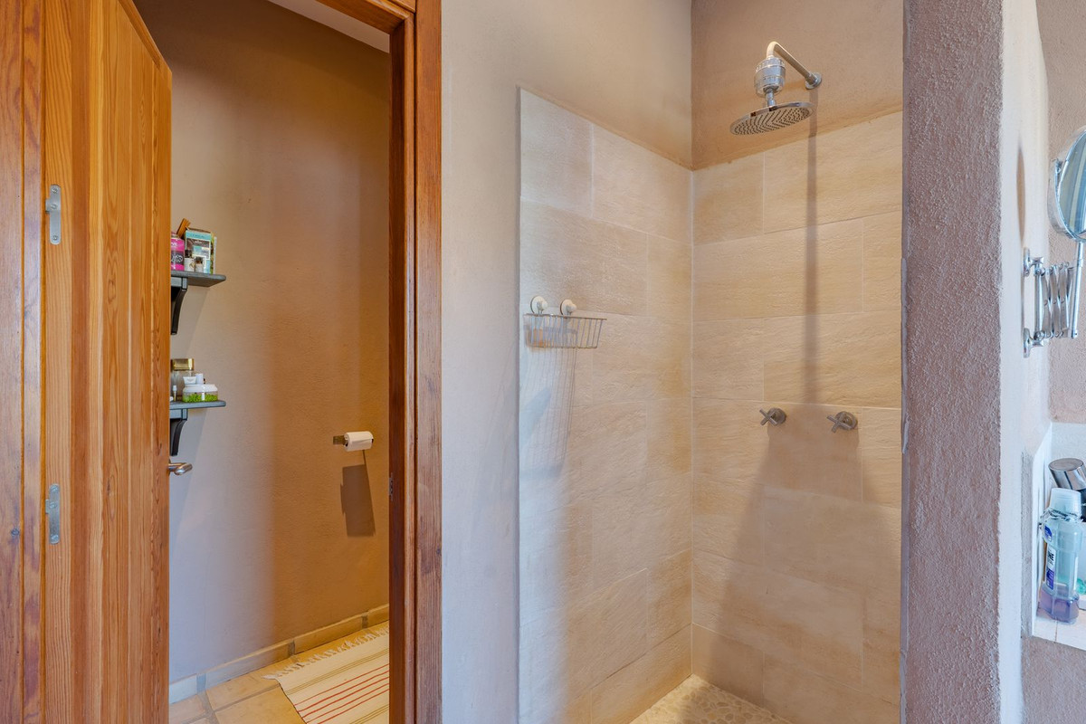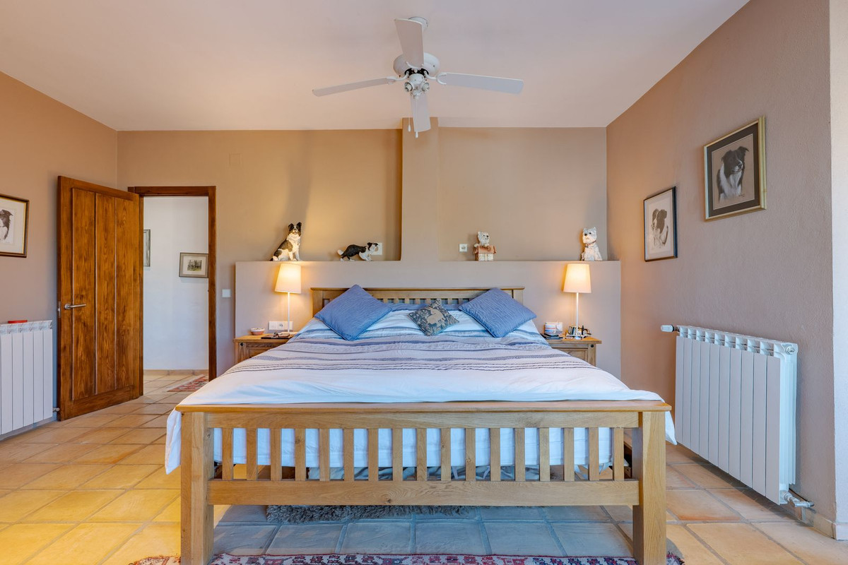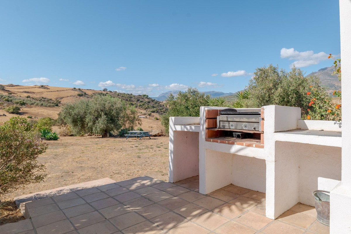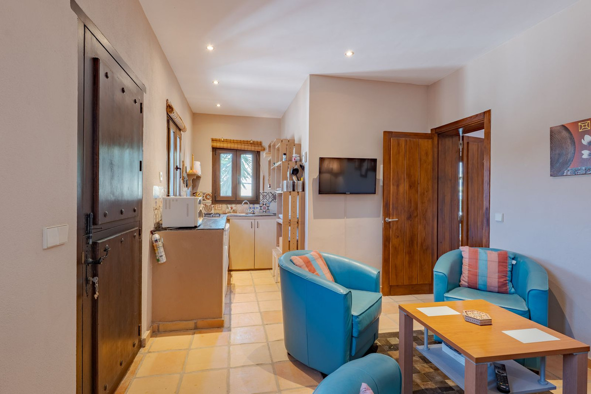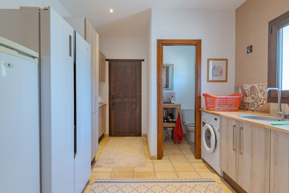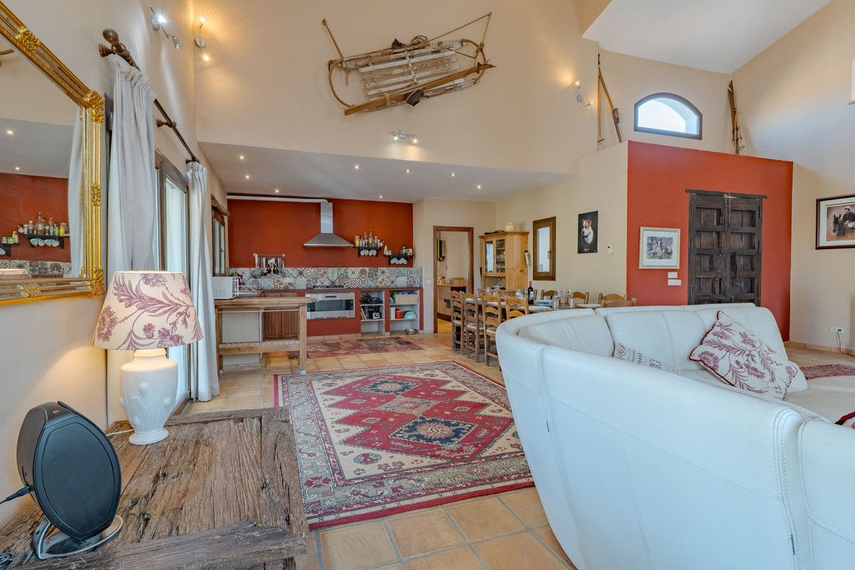 Exclusieve aanbieding! Dit ruime en comfortabele landhuis (Cortijo) is perfect voor een groot gezin, als luxe vakantiehuis of als investering met aanzienlijke verhuurmogelijkheden dankzij het onafhankelijke gastenverblijf. De woning verkeert in uitstekende staat en combineert authentieke charme met modern comfort. De adembenemende open indeling van de woonkamer, eetkamer en keuken vormt het hart van het huis. Hoge plafonds en grote ramen: deze architectonische kenmerken zorgen de hele dag voor maximale lichtinval en accentueren het ruimtelijke gevoel. Geniet op koelere avonden van de warmte van de open haard, omringd door charmante terracotta vloeren en de prachtige Spaanse houten voordeur die de landelijke sfeer benadrukt. De keuken is van alle gemakken voorzien en loopt naadloos over in de woonkamer, perfect voor gezelligheid en entertainment. Achter de keuken bevindt zich een ruime keuken/bijkeuken en een gastentoilet. Vanuit de woonkamer opent u de deuren naar het overdekte hoofdterras. Dit wordt uw favoriete plek om te dineren en te genieten van het spectaculaire uitzicht op de glooiende bergen. Een kleine trap leidt naar een gang die naar het hoofdslaapkamergedeelte leidt. Deze kamers zijn ruim en voorzien van praktische inbouwkasten, die optimale opbergruimte bieden. Uniek aan deze finca is het volledig afsluitbare en onafhankelijke gastenverblijf. Het is toegankelijk via het hoofdgebouw, maar heeft ook een eigen ingang, waardoor het ideaal is voor verhuur of als privédomein voor gasten. Dit appartement beschikt over: * 2 ruime slaapkamers, elk met een eigen badkamer. * keuken/woonkamer * Een groot privéterras met fantastisch uitzicht. Deze gastenaccommodatie biedt een uitstekende mogelijkheid om extra inkomsten te genereren door middel van vakantieverhuur (B&B/Vakantiehuis). Licencia de Primera Ocupación (LPO) aanwezig. De woning is voorzien van alle moderne gemakken: Airconditioning en centrale verwarming. Aangesloten op het elektriciteitsnet en voorzien van zonnepanelen. Aangesloten op het openbare drinkwaternet. Er is een goede internetverbinding beschikbaar. Privézwembad en terras: de perfecte plek om af te koelen tijdens de warme zomermaanden, met een adembenemend uitzicht over de vallei. Buitenbar en barbecueplek: Gelegen bij het zwembad, ideaal voor het organiseren van feesten, barbecues en lange zomeravonden. De tuin is beplant met volwassen olijfbomen en verschillende fruitbomen. Er is privéparkeergelegenheid op het terrein. De toegangsweg is grotendeels geasfalteerd. Alleen de laatste 600 meter zijn goed onderhouden onverharde wegen. Slechts 15 minuten rijden naar de charmante dorpjes Alozaina en Casarabonela. De internationale luchthaven van Malaga ligt op 45 minuten rijden, zodat u snel en eenvoudig van en naar uw thuisbasis kunt reizen. Finca - Cortijo, Casarabonela, Costa del Sol. 7 slaapkamers, 4,5 badkamers, bebouwd 362 m², terras 150 m². Ligging: Landelijk, Dichtbij de stad. Oriëntatie: Oost, Zuidwest. Staat: Goed. Zwembad: Privé. Klimaatregeling: Airconditioning, Centrale verwarming, Open haard. Uitzicht: Bergen, Platteland, Panoramisch, Tuin. Kenmerken: Inbouwkasten, Privéterras, Gastenappartement, Berging, Ensuite badkamer, Dubbel glas. Meubilair: Optioneel. Keuken: volledig ingericht. Tuin: Privé. Parkeren: Privé. Nutsvoorzieningen: elektriciteit, drinkwater, gas, fotovoltaïsche zonnepanelen. Categorie: Wederverkoop.