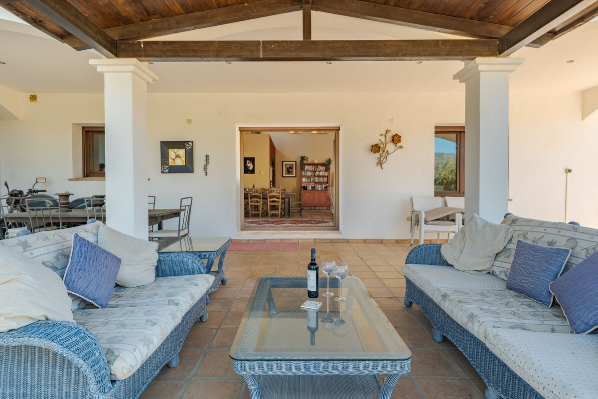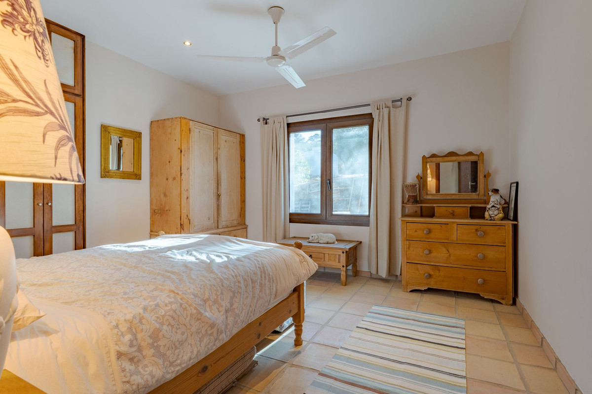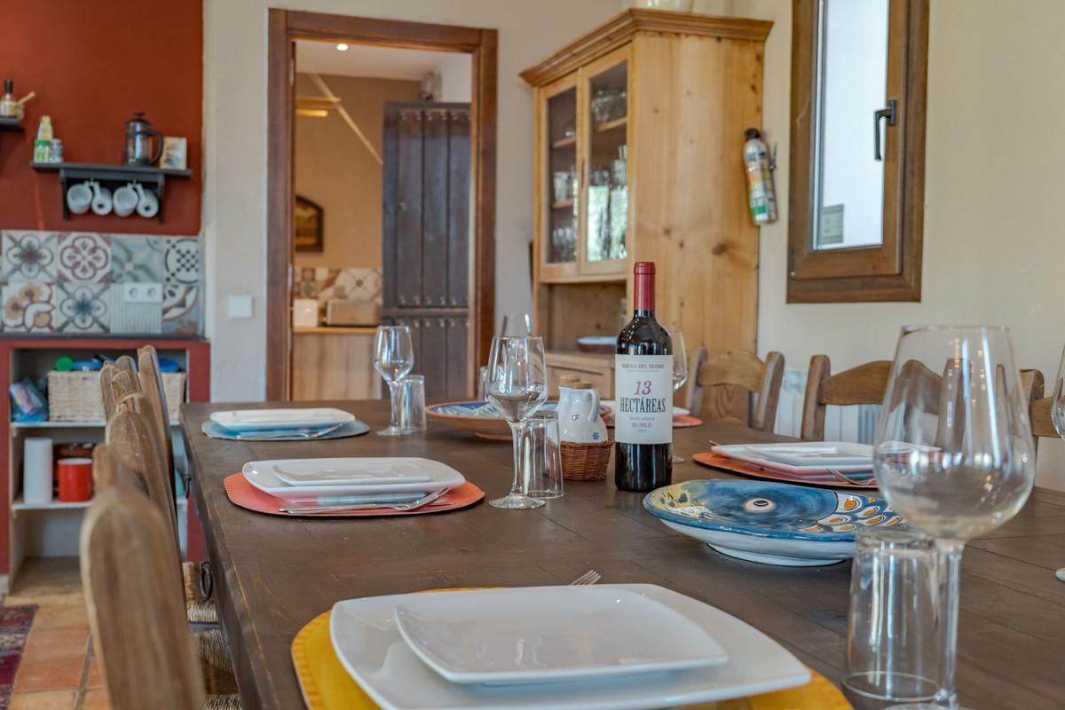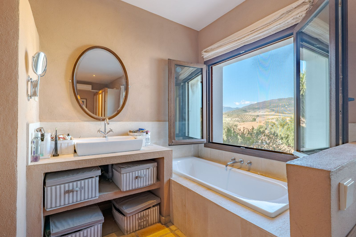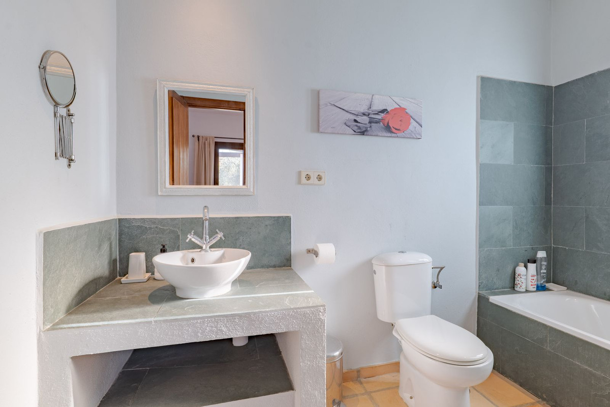 Exclusieve aanbieding! Dit ruime en comfortabele landhuis (Cortijo) is perfect voor een groot gezin, als luxe vakantiehuis of als investering met aanzienlijke verhuurmogelijkheden dankzij het onafhankelijke gastenverblijf. De woning verkeert in uitstekende staat en combineert authentieke charme met modern comfort. De adembenemende open indeling van de woonkamer, eetkamer en keuken vormt het hart van het huis. Hoge plafonds en grote ramen: deze architectonische kenmerken zorgen de hele dag voor maximale lichtinval en accentueren het ruimtelijke gevoel. Geniet op koelere avonden van de warmte van de open haard, omringd door charmante terracotta vloeren en de prachtige Spaanse houten voordeur die de landelijke sfeer benadrukt. De keuken is van alle gemakken voorzien en loopt naadloos over in de woonkamer, perfect voor gezelligheid en entertainment. Achter de keuken bevindt zich een ruime keuken/bijkeuken en een gastentoilet. Vanuit de woonkamer opent u de deuren naar het overdekte hoofdterras. Dit wordt uw favoriete plek om te dineren en te genieten van het spectaculaire uitzicht op de glooiende bergen. Een kleine trap leidt naar een gang die naar het hoofdslaapkamergedeelte leidt. Deze kamers zijn ruim en voorzien van praktische inbouwkasten, die optimale opbergruimte bieden. Uniek aan deze finca is het volledig afsluitbare en onafhankelijke gastenverblijf. Het is toegankelijk via het hoofdgebouw, maar heeft ook een eigen ingang, waardoor het ideaal is voor verhuur of als privédomein voor gasten. Dit appartement beschikt over: * 2 ruime slaapkamers, elk met een eigen badkamer. * keuken/woonkamer * Een groot privéterras met fantastisch uitzicht. Deze gastenaccommodatie biedt een uitstekende mogelijkheid om extra inkomsten te genereren door middel van vakantieverhuur (B&B/Vakantiehuis). Licencia de Primera Ocupación (LPO) aanwezig. De woning is voorzien van alle moderne gemakken: Airconditioning en centrale verwarming. Aangesloten op het elektriciteitsnet en voorzien van zonnepanelen. Aangesloten op het openbare drinkwaternet. Er is een goede internetverbinding beschikbaar. Privézwembad en terras: de perfecte plek om af te koelen tijdens de warme zomermaanden, met een adembenemend uitzicht over de vallei. Buitenbar en barbecueplek: Gelegen bij het zwembad, ideaal voor het organiseren van feesten, barbecues en lange zomeravonden. De tuin is beplant met volwassen olijfbomen en verschillende fruitbomen. Er is privéparkeergelegenheid op het terrein. De toegangsweg is grotendeels geasfalteerd. Alleen de laatste 600 meter zijn goed onderhouden onverharde wegen. Slechts 15 minuten rijden naar de charmante dorpjes Alozaina en Casarabonela. De internationale luchthaven van Malaga ligt op 45 minuten rijden, zodat u snel en eenvoudig van en naar uw thuisbasis kunt reizen. Finca - Cortijo, Casarabonela, Costa del Sol. 7 slaapkamers, 4,5 badkamers, bebouwd 362 m², terras 150 m². Ligging: Landelijk, Dichtbij de stad. Oriëntatie: Oost, Zuidwest. Staat: Goed. Zwembad: Privé. Klimaatregeling: Airconditioning, Centrale verwarming, Open haard. Uitzicht: Bergen, Platteland, Panoramisch, Tuin. Kenmerken: Inbouwkasten, Privéterras, Gastenappartement, Berging, Ensuite badkamer, Dubbel glas. Meubilair: Optioneel. Keuken: volledig ingericht. Tuin: Privé. Parkeren: Privé. Nutsvoorzieningen: elektriciteit, drinkwater, gas, fotovoltaïsche zonnepanelen. Categorie: Wederverkoop.